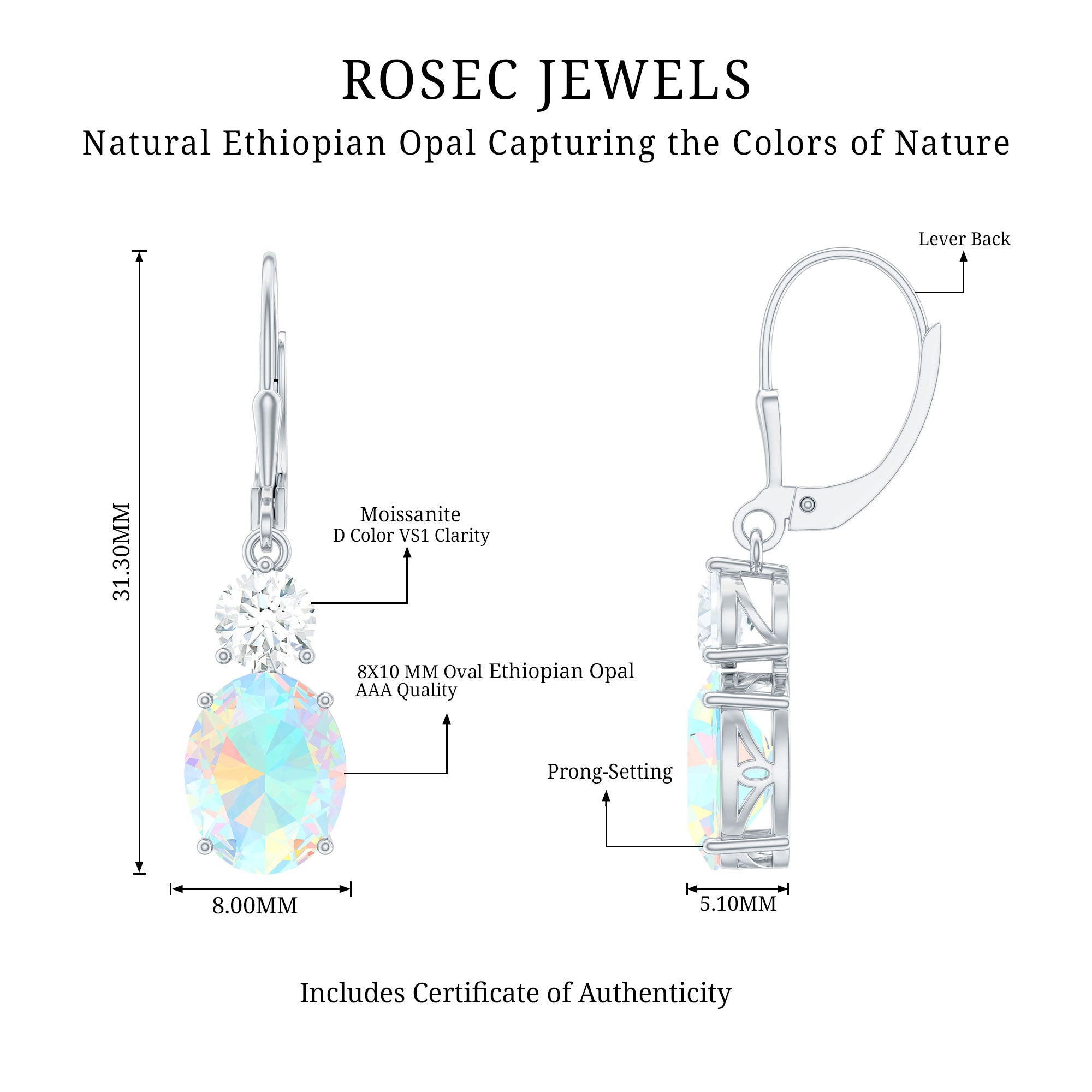 Oval Shape Ethiopian Opal Leverback Drop Earrings With Moissanite