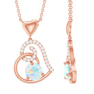 Be Dazzle with these beautiful Heart Pendant Necklace is embellished with Round Shape Ethiopian Opal as Solitaire in 3 Prong Setting and Round Shape Diamond in Prong Setting, Crafted in Solid Gold.