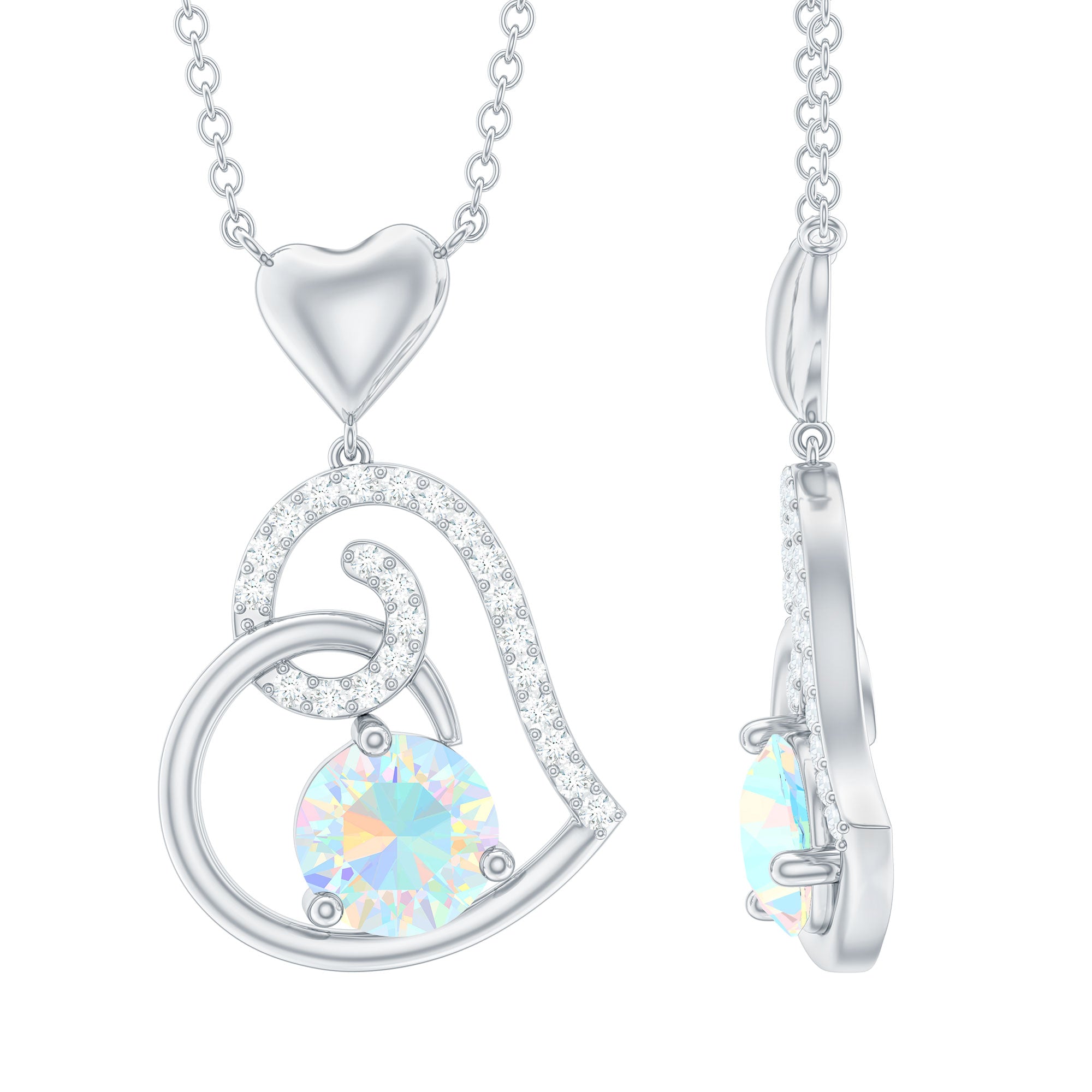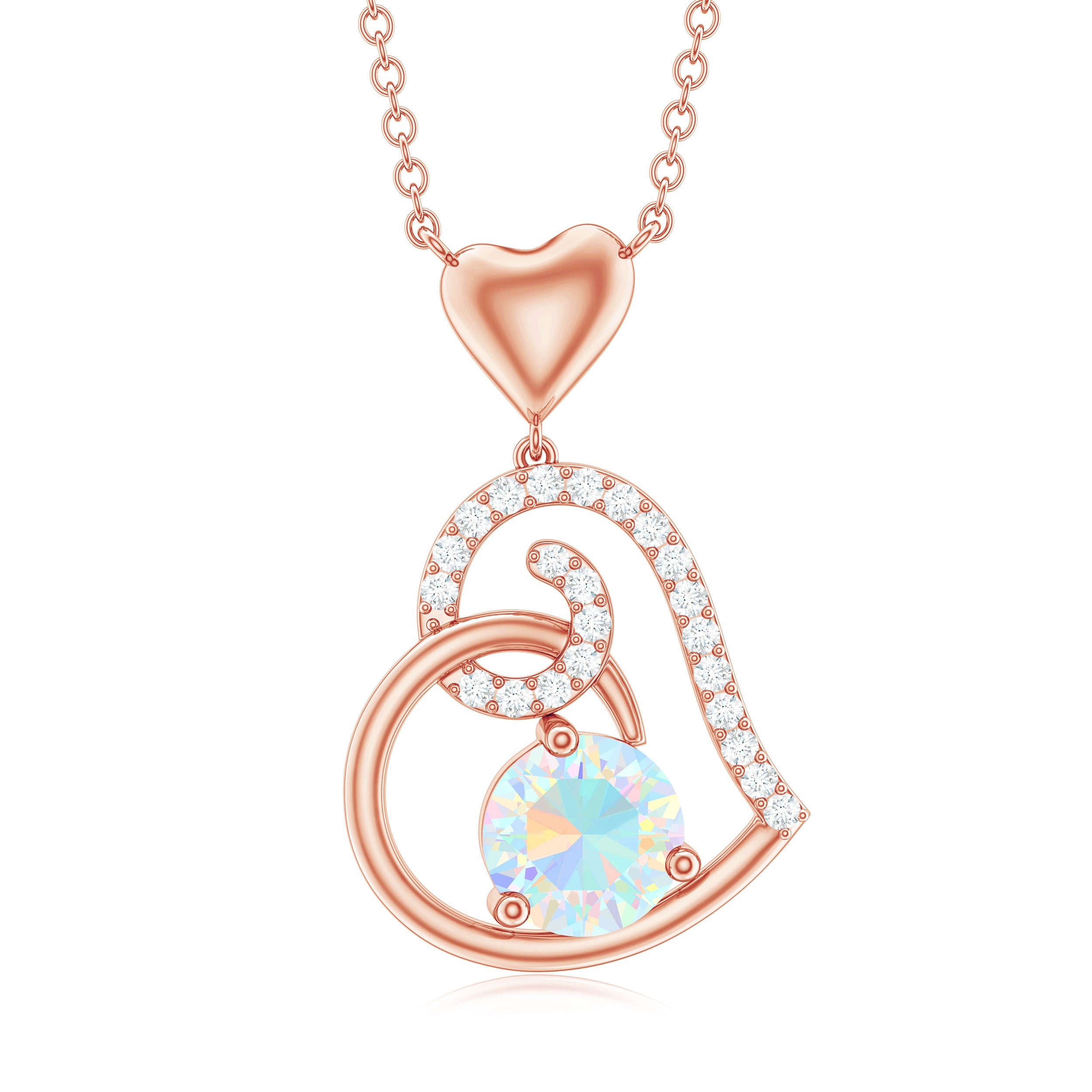 Ethiopian Opal Heart Pendant Necklace with Diamond