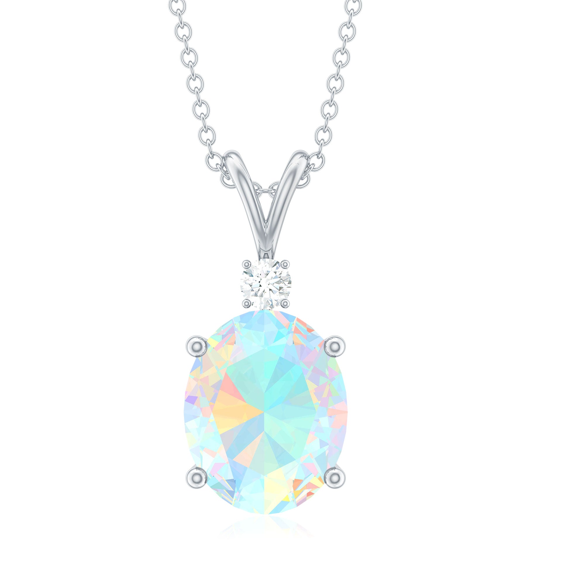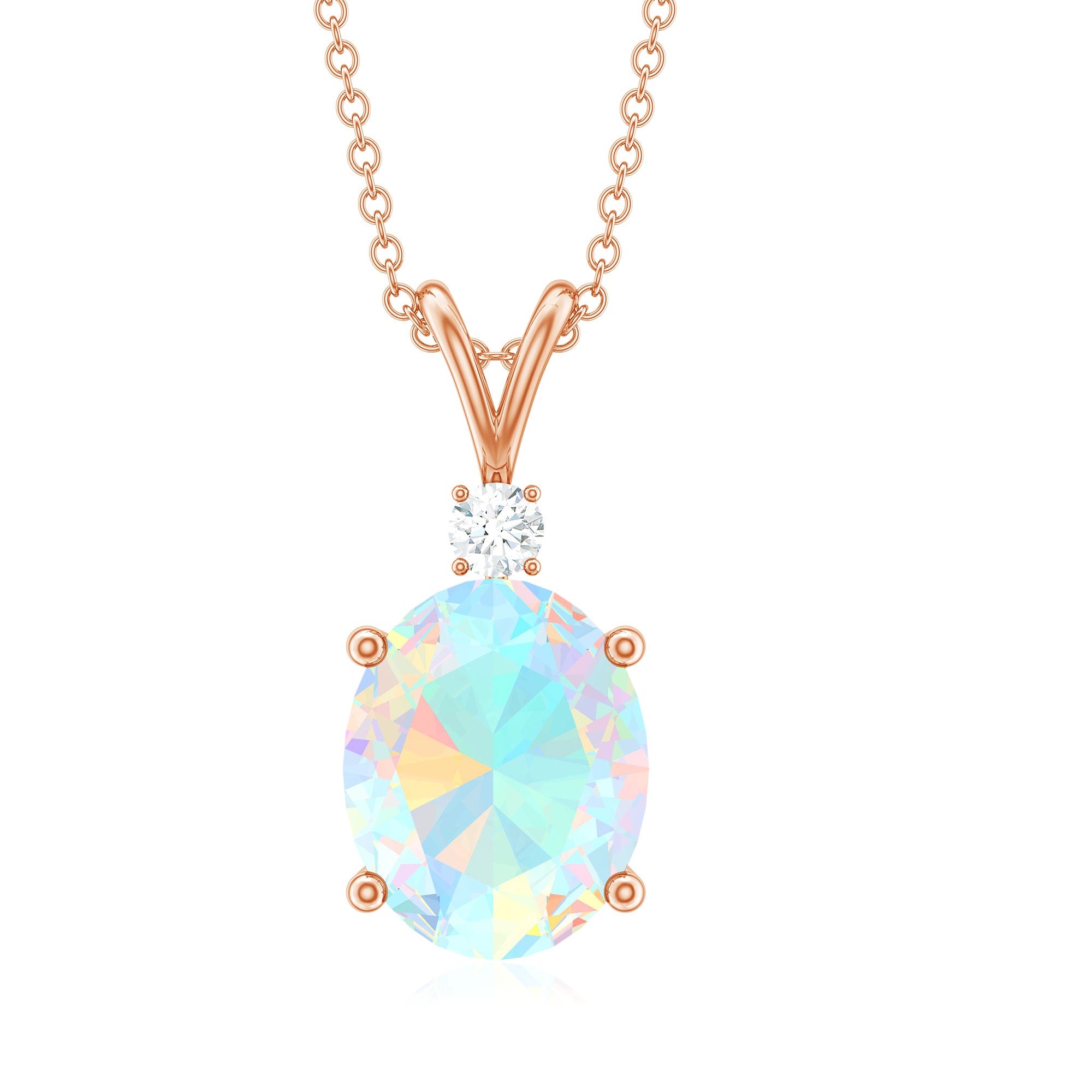 Ethiopian Opal Solitaire Minimal Pendant Necklace with Diamond