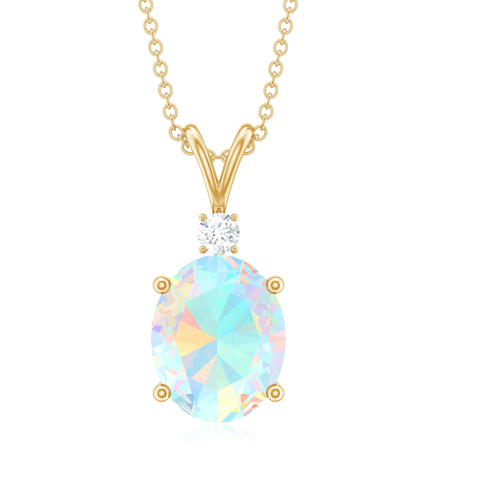 Top off your look with this stunning Ethiopian Opal Pendant Necklace. Having a AAA Quality of the Opal gemstone with HI-SI Quality of the Diamond this Pendant Necklace lets you leave to shop with confidence. The Oval Shape Ethiopian Opal in Prong Setting with the Diamond shining from the above of this Pendant Necklace is sure to make the statements