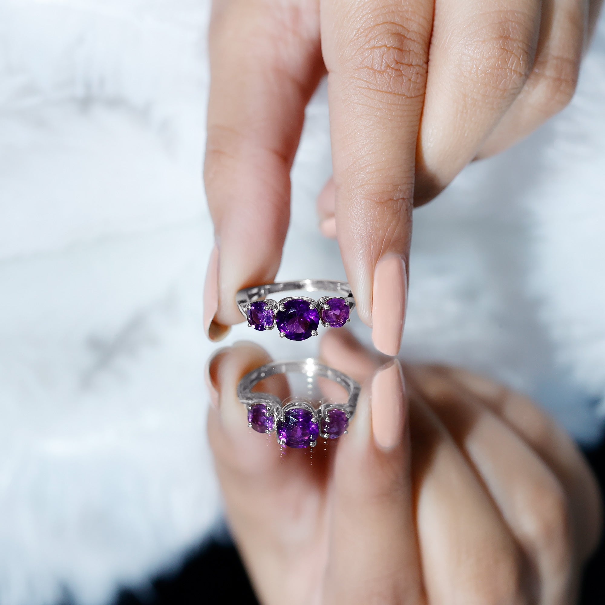 Round Amethyst Three Stone Crossover Ring