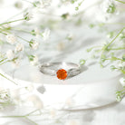 Make a brilliant statement of love with our dazzling Solitaire Engagement Ring-a perfect choice for the one you cherish. This captivating piece showcases a stunning Round Shape Fire Opal, elegantly cradled in a diagonal prong setting, accentuated by Round Diamond gems gracing the infinity shank. This Infinity Engagement Ring embodies both beauty and enduring commitment.