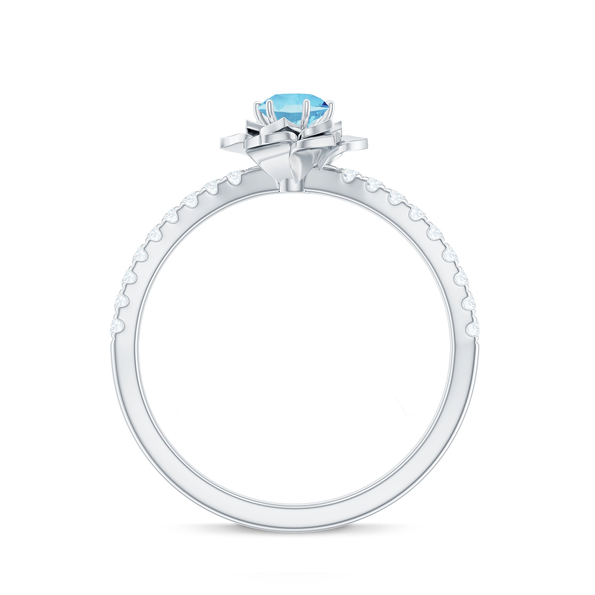 Floral Inspired Aquamarine Rose Engagement Ring with Diamond