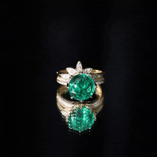 Floral Inspired Lab Grown Emerald Bridal Engagement Ring With Moissanite Enhancer