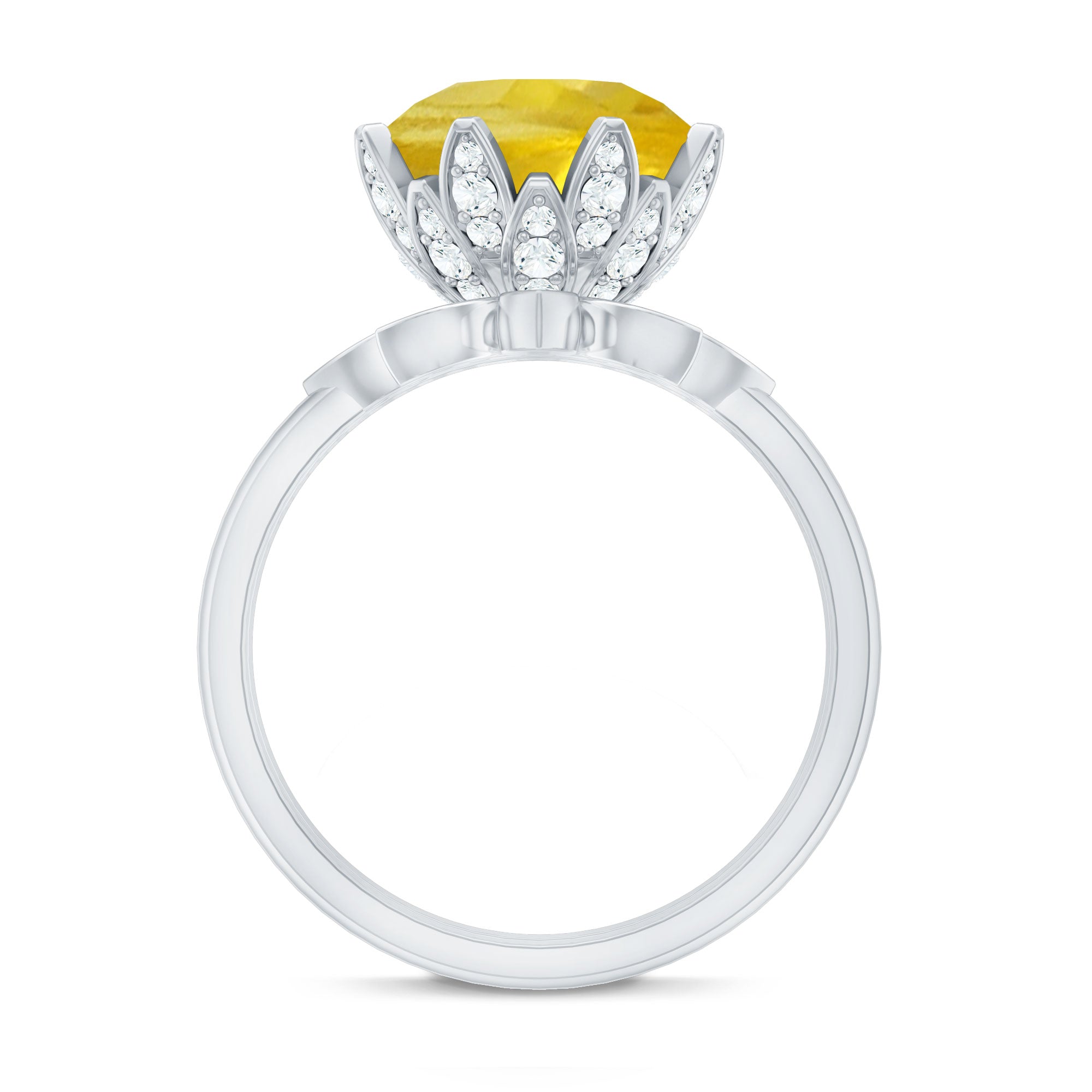 Lab Grown Yellow Sapphire Wedding Engagement Ring with Enhancer