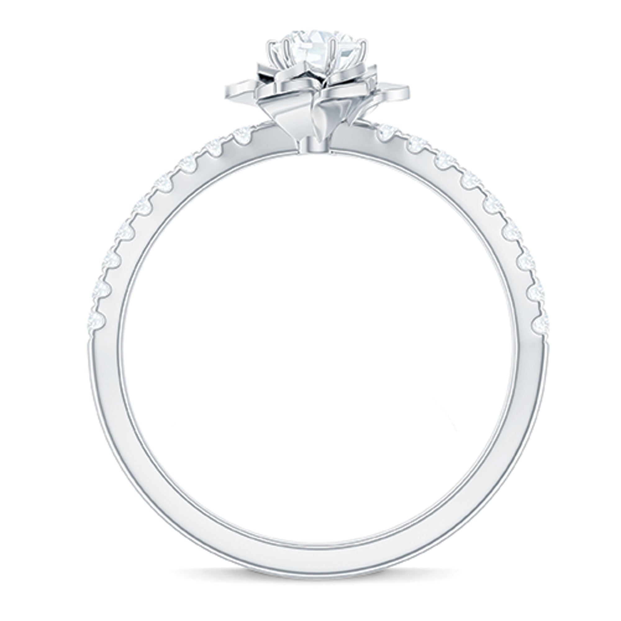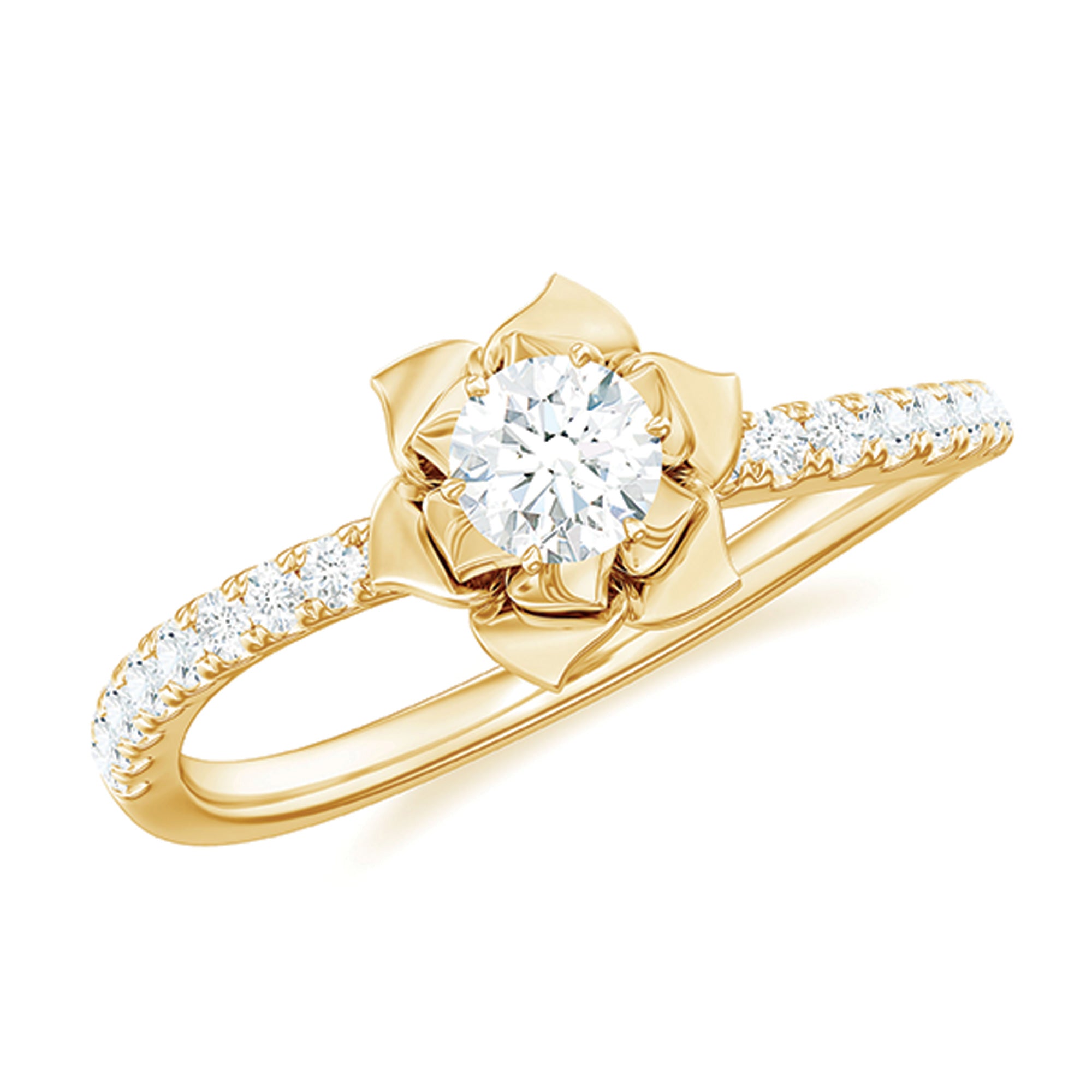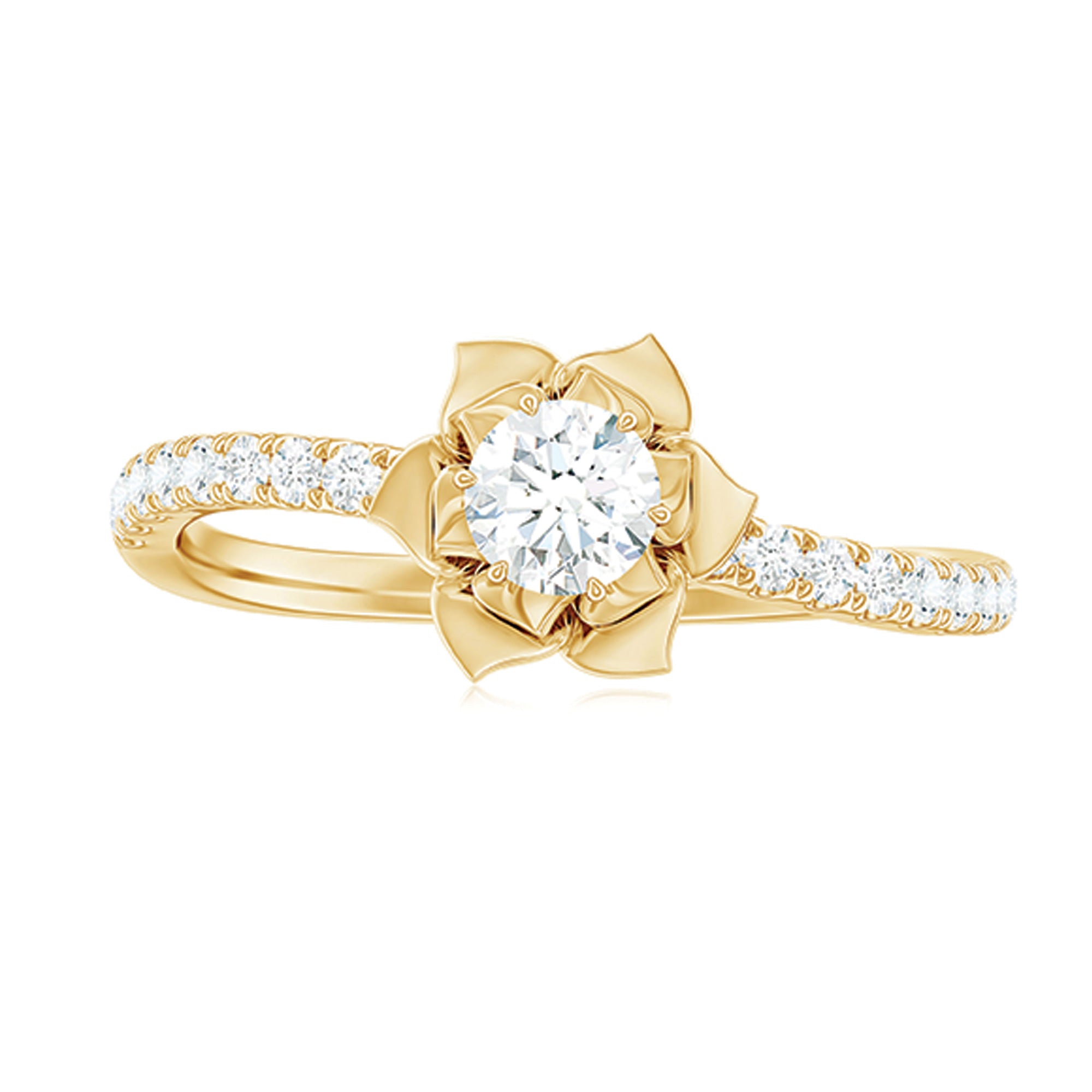 Bring joy to your beloved with this stunning Floral Engagement Ring, made of Solid Gold. The ring features a gorgeous design of a rose flower, adorned with a sparkling Round Cut Moissanite, creating a charming and elegant choice for your special occasion. This Gold Flower Engagement Ring is sure to elate and delight your beloved.