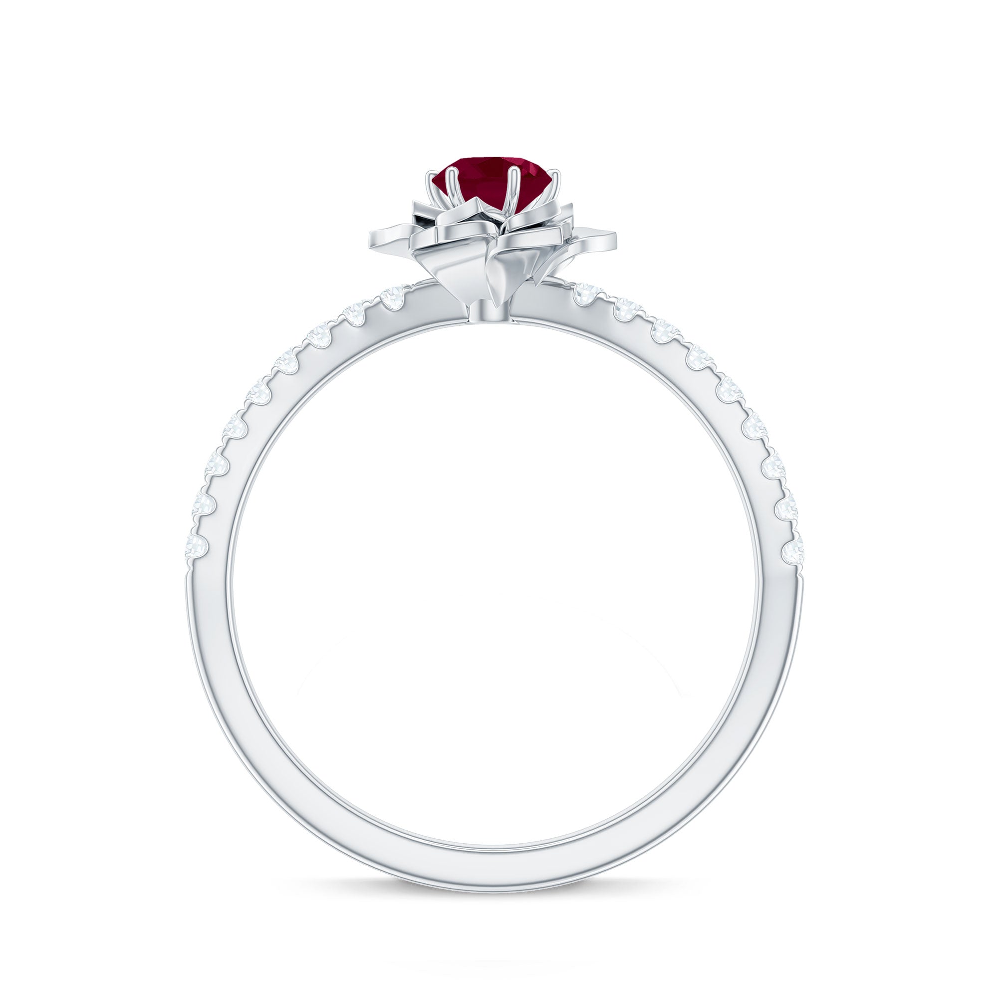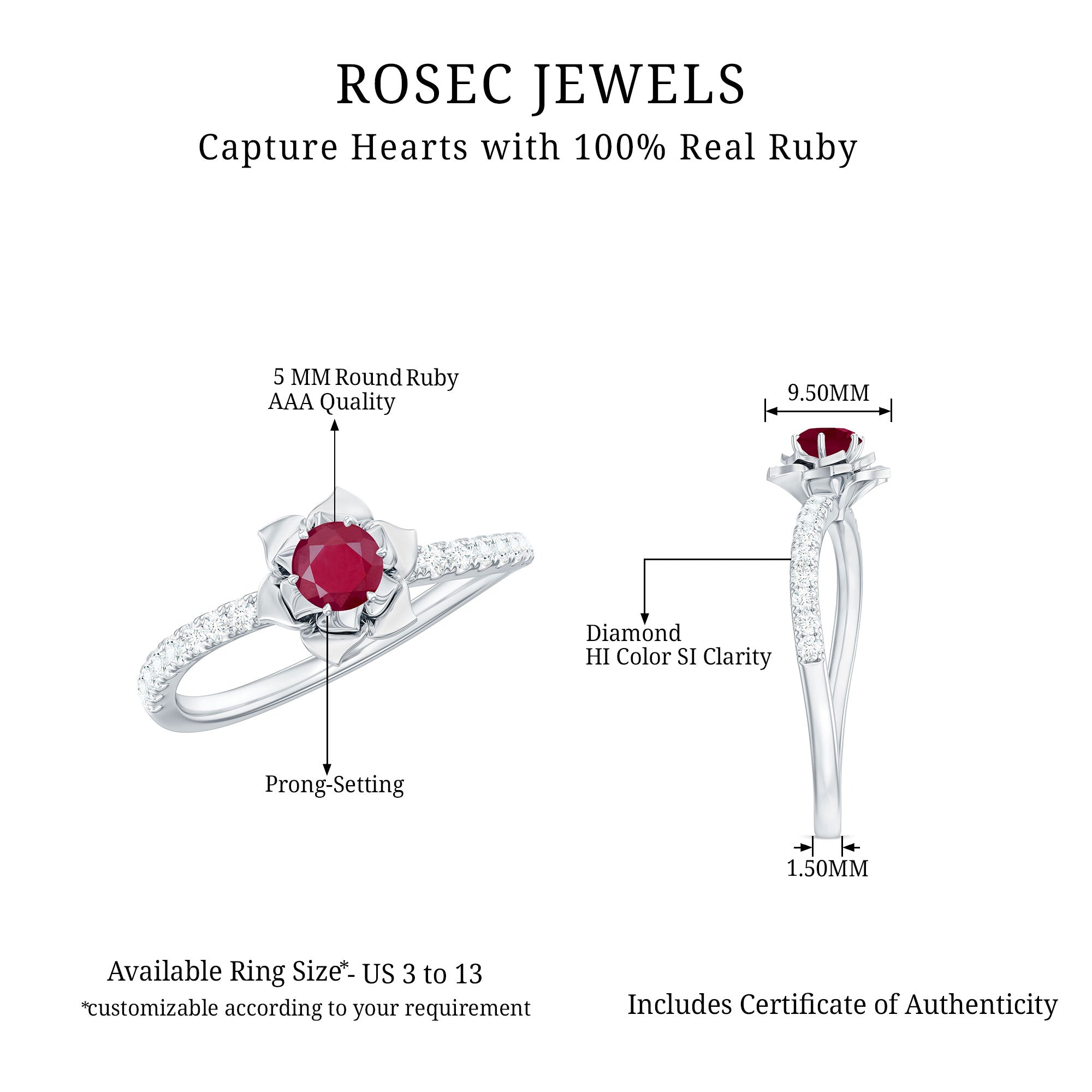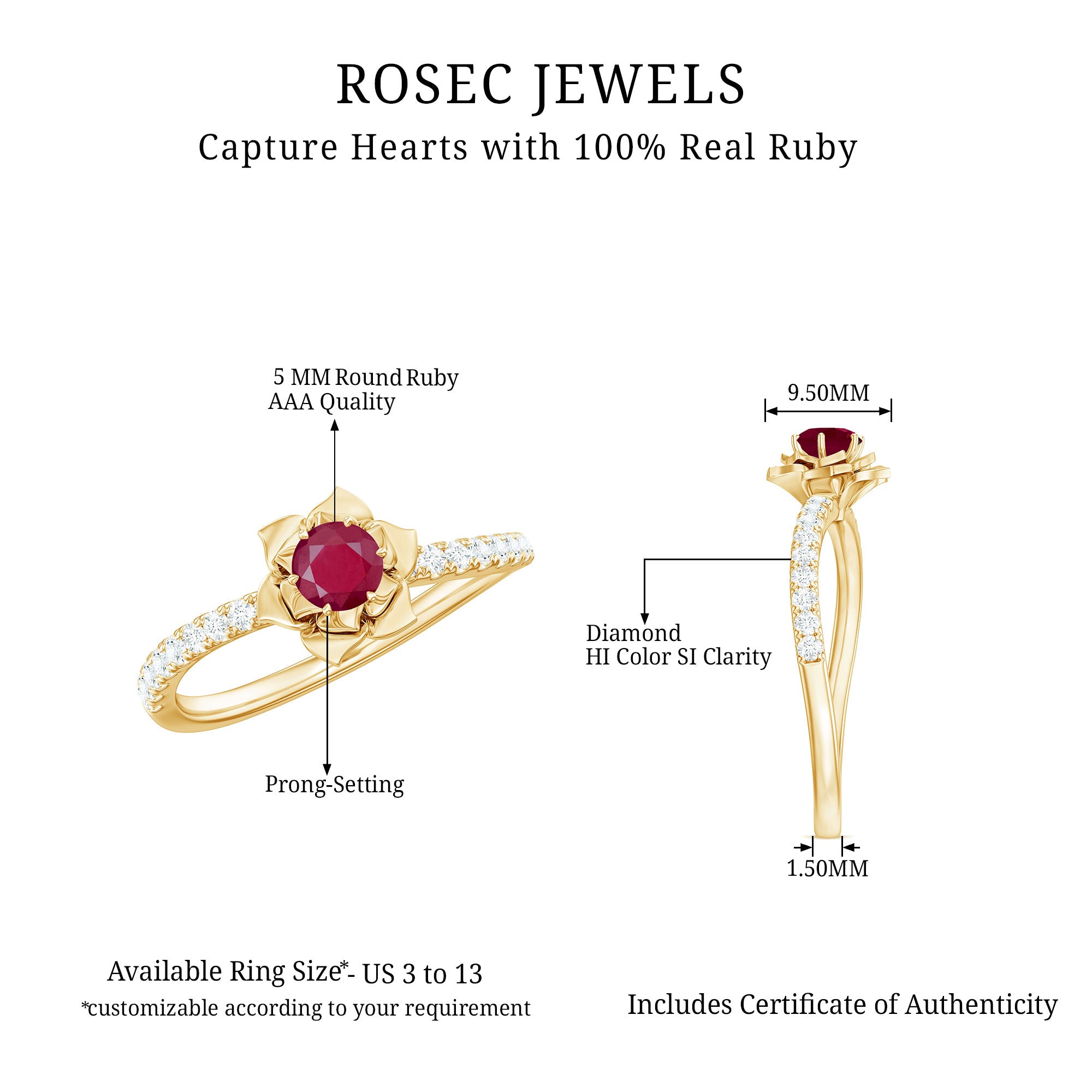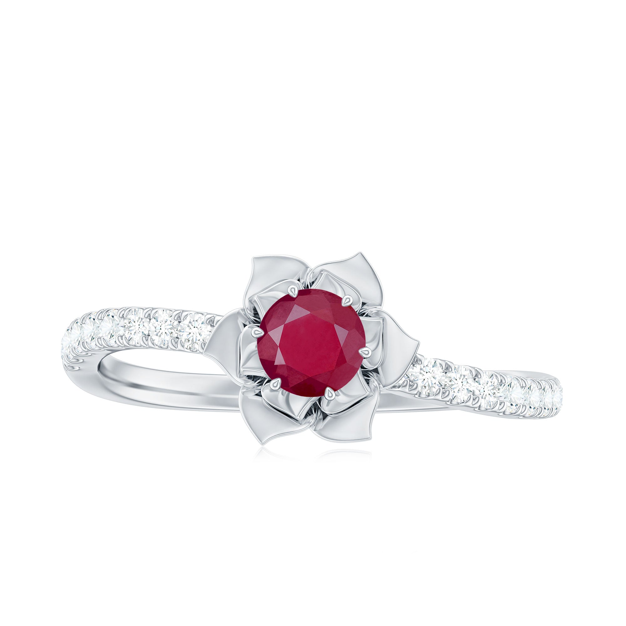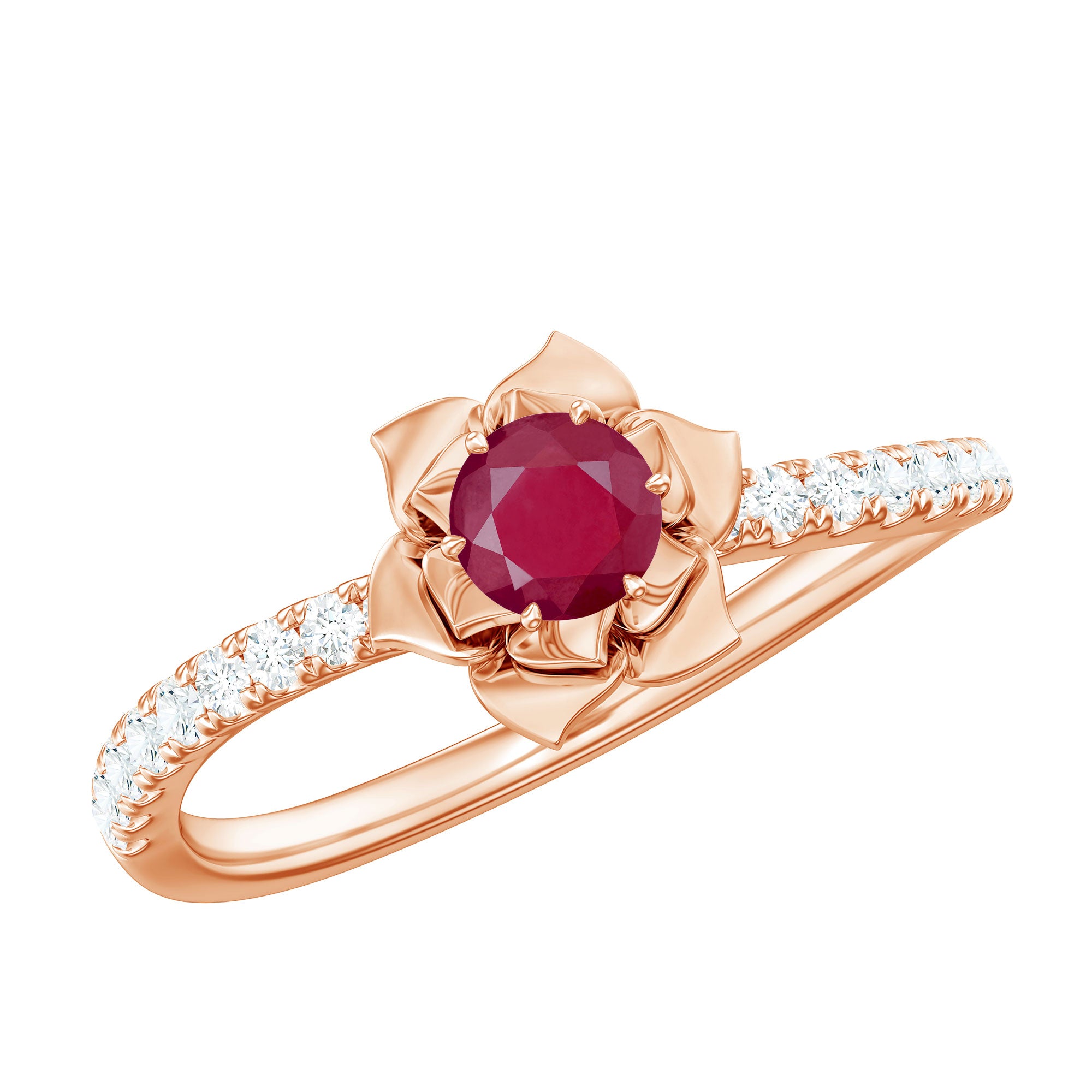 Floral Inspired Ruby Rose Engagement Ring with Diamond