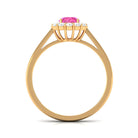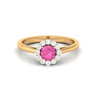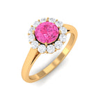 Elevate the brilliance of your special occasion with the enchanting Pink Sapphire Engagement Ring. The round pink sapphire takes center stage, securely held in place by a delicate prong setting, while the captivating Diamond Halo adds a touch of subtle elegance to the design. This Floral Engagement Ring is a captivating piece of fine jewelry, meticulously crafted to showcase your unique style. Let its allure and beauty be a testament to your individuality and create an everlasting impression on your special day.