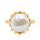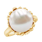 Exquisitely crafted, this Solitaire Engagement Ring showcases a Round Shape Freshwater Pearl set in a Gold Floral Setting and adorned with Round Shape Diamonds. The Pearl Flower Ring is meticulously crafted from Gold Metal, resulting in a lustrous finish that adds to its allure. Express your love and devotion with this stunning Solitaire Ring, which is sure to make her heart skip a beat. It is captivating design and sophisticated style make it a perfect symbol of your commitment to her.