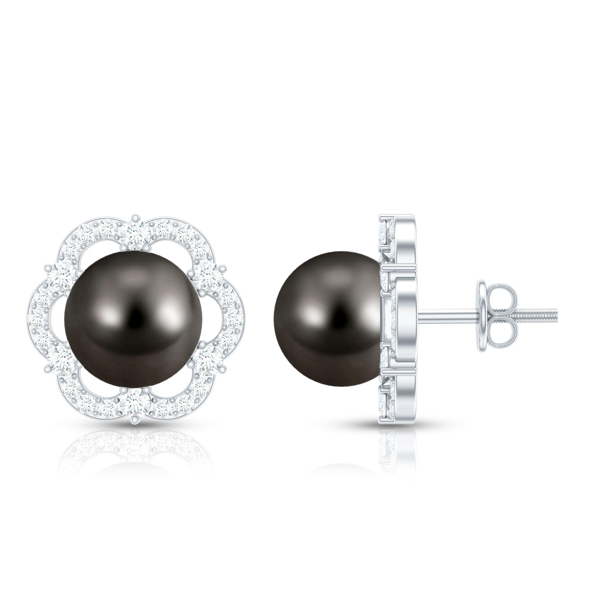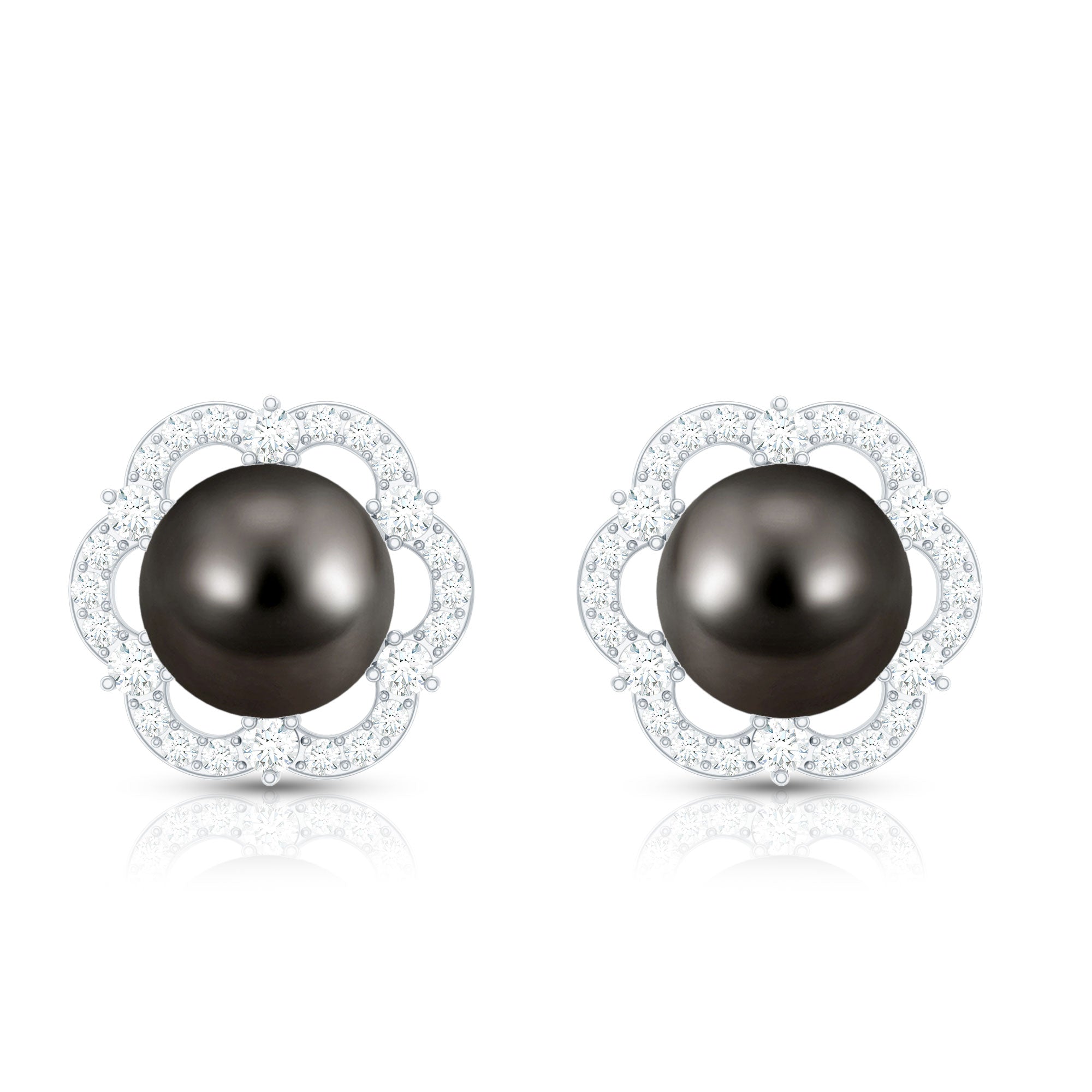 Floral Tahitian Pearl Stud Earrings with Diamond