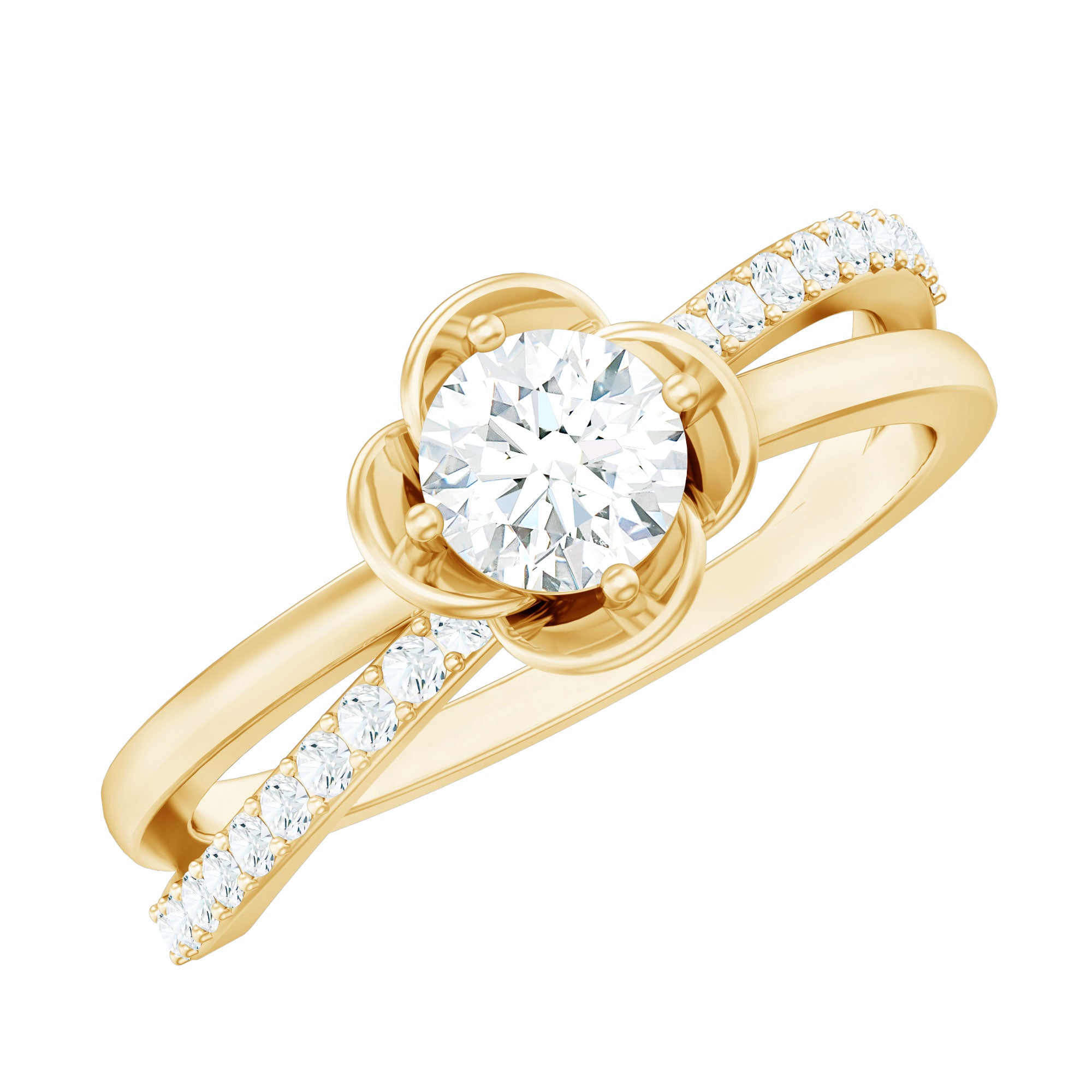 This Moissanite Promise Ring for Her brings together delicate design and meaningful symbolism. At the center, a sparkling 5 MM round moissanite shines with clarity and brilliance, cradled by prongs and surrounded by smooth flower petals. The flower motif adds a romantic, nature-inspired touch, making the Flower Ring feel tender and full of heart. The unique band wraps gently around the finger, creating a graceful flow that draws attention to the center stone, while a line of small round moissanites set in bypass style, that catch the light with every movement. Elegant yet easy to wear, this Moissanite Ring for Women carries a quiet charm that makes it perfect for everyday moments or personal milestones. It is a thoughtful choice for a promise ring, a gift to yourself, or a sweet surprise for someone you love. Designed to feel lightweight and comfortable, this Flower Promise Ring is available in a wide range of sizes. Its timeless floral design and brilliant sparkle make it a beautiful reminder of love that’s blooming, steady, pure, and full of promise.