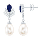 Freshwater Pearl and Blue Sapphire Teardrop Earrings with Moissanite