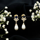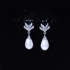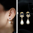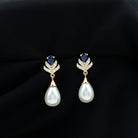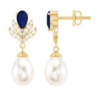 Freshwater Pearl and Blue Sapphire Teardrop Earrings with Moissanite