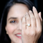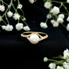 Seek the attention by accessorizing this Classic Engagement Ring. Adorned with Round Freshwater Pearl Solitaire with Round Shape Diamond accent on the split shank. Crafted in solid gold metal.