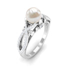 Freshwater Pearl and Diamond Crossover Engagement Ring