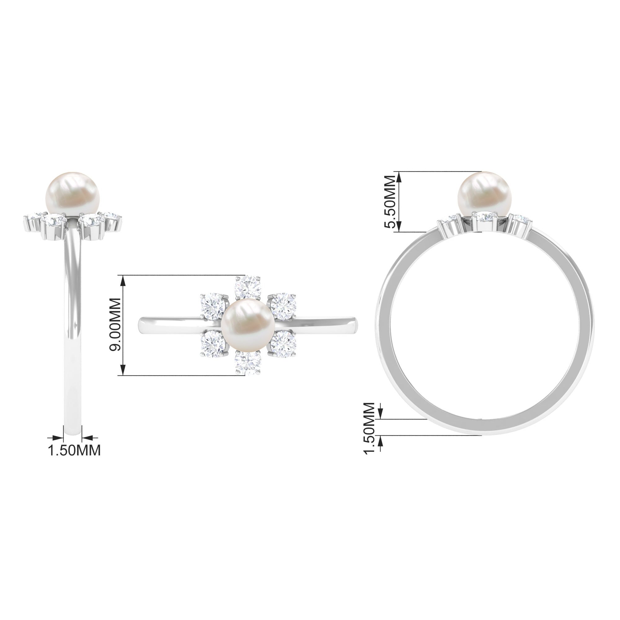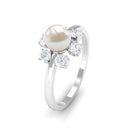 Freshwater Pearl and Diamond Flower Engagement Ring
