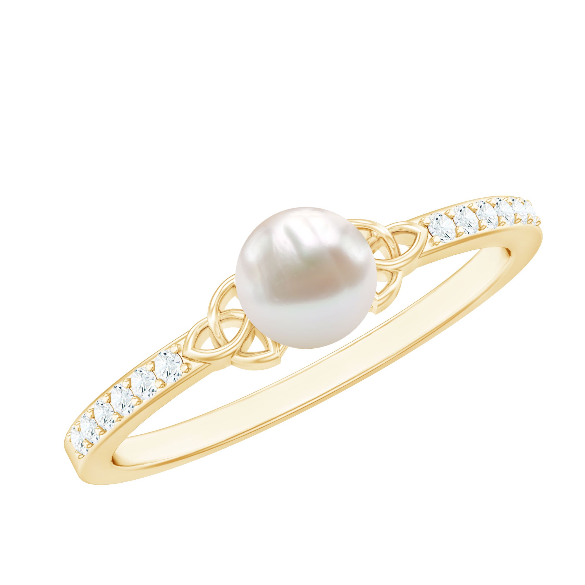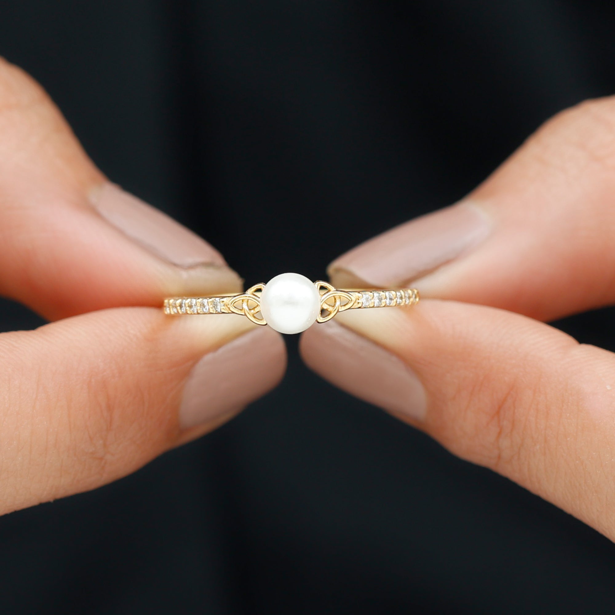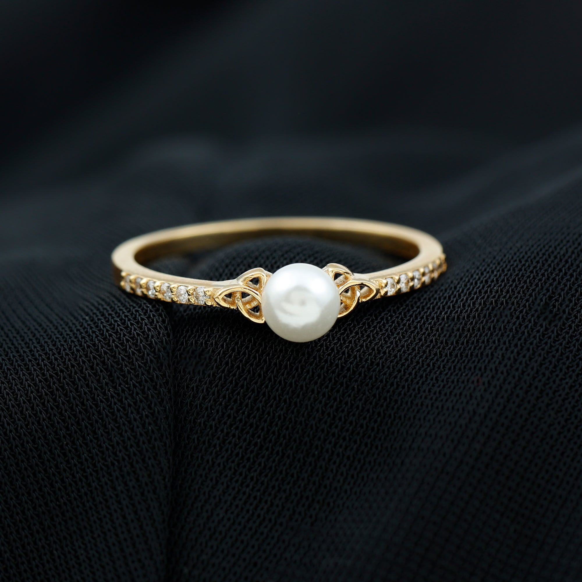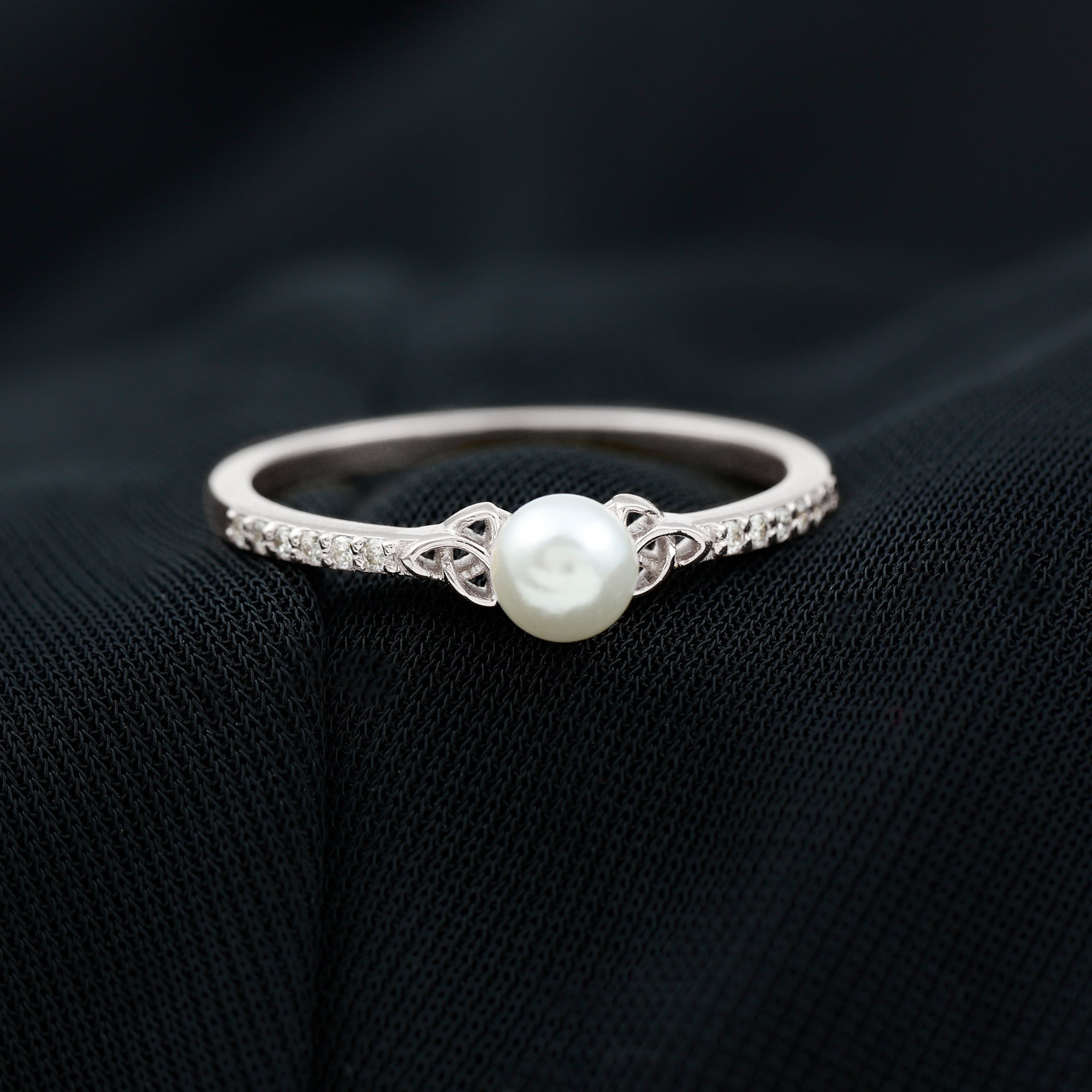 Freshwater Pearl and Diamond Side Stone Engagement Ring with Celtic Details