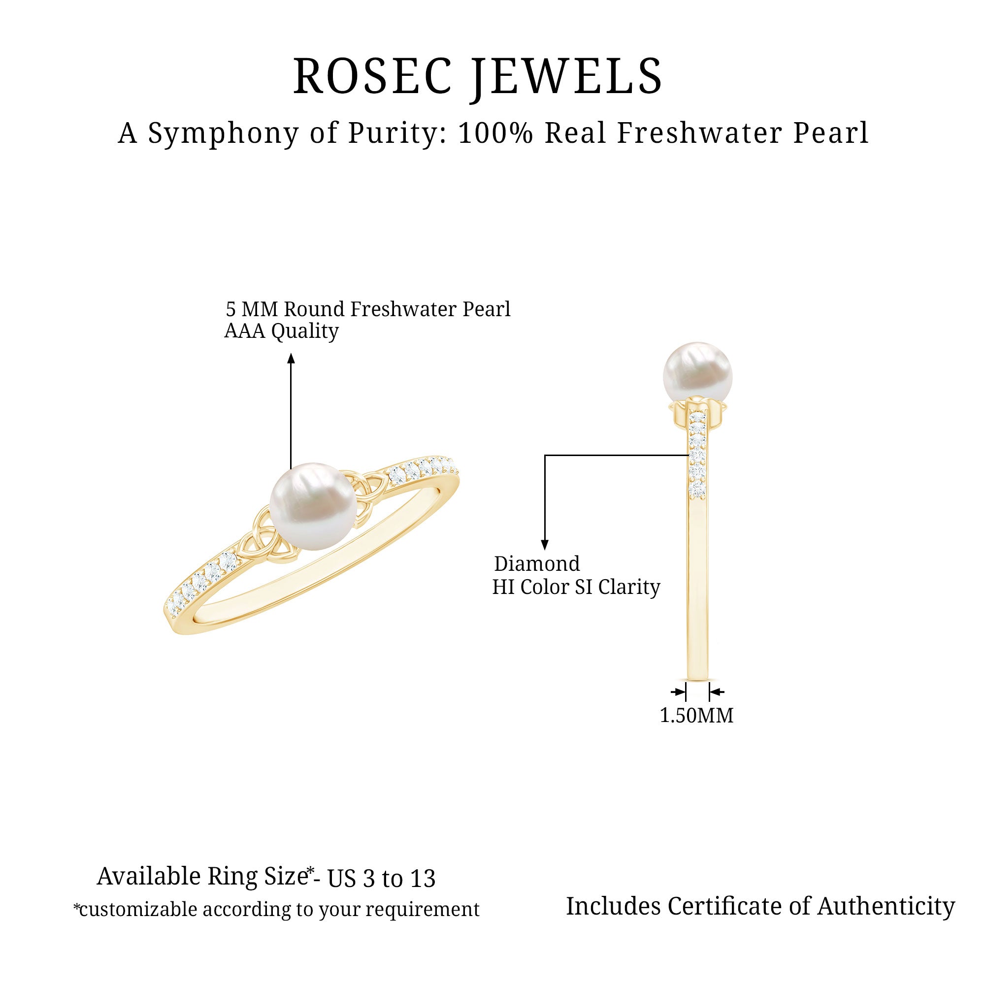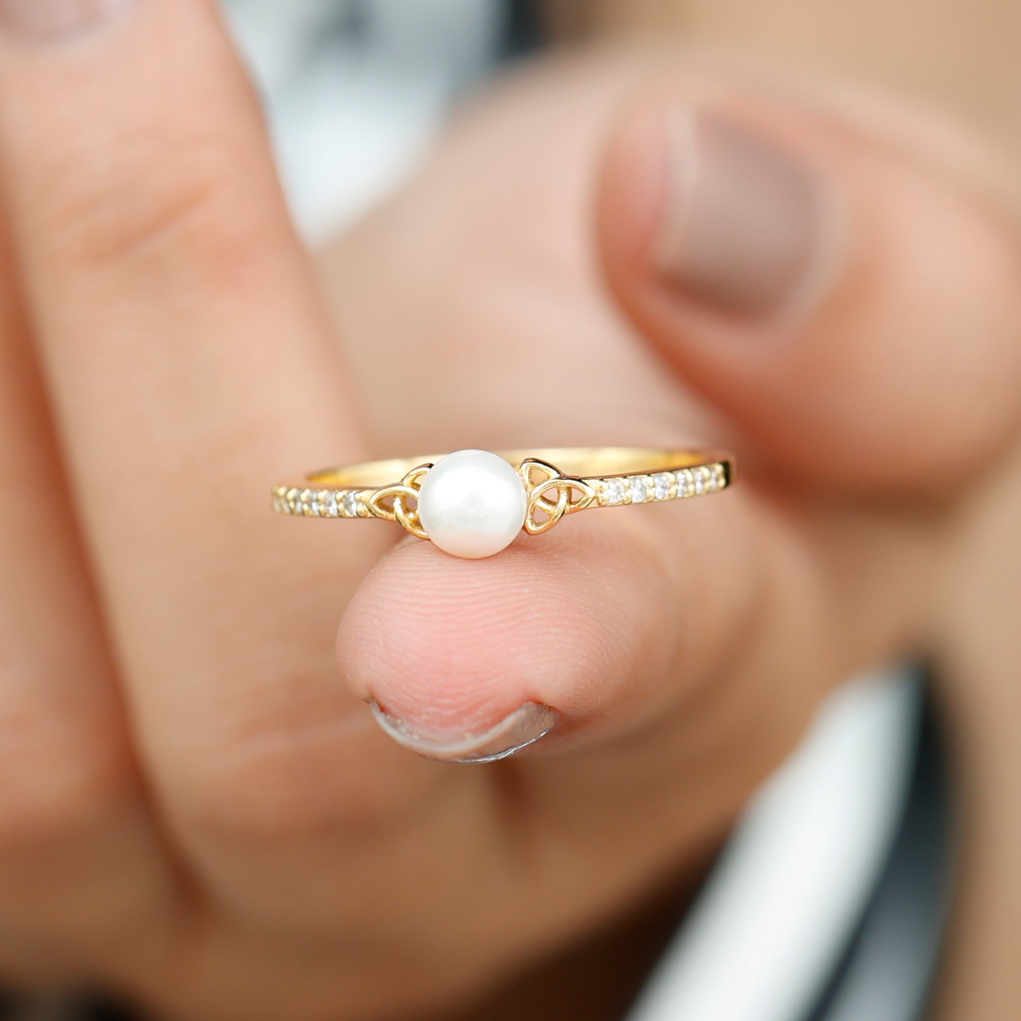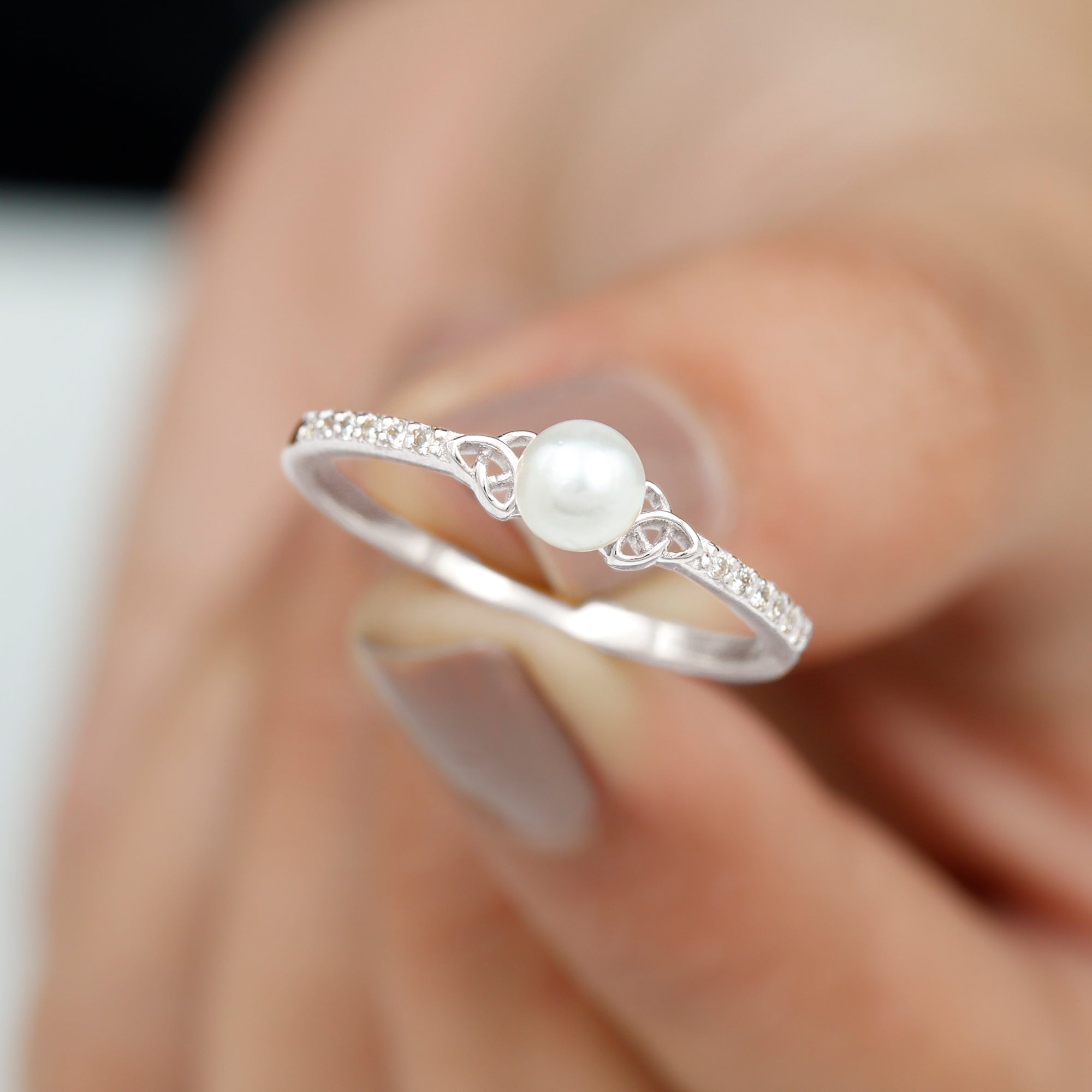 Add a touch of radiance to your everyday look with our Freshwater Pearl Engagement Ring. The rings delicate band features a lustrous freshwater pearl center stone, accented by a shimmering Diamond and intricate Celtic details for added elegance and charm. Perfect for showing your love and affection to someone special, this stunning Solitaire ring will make her feel truly cherished and adored, adding a touch of sophistication and beauty to even the dullest of days.