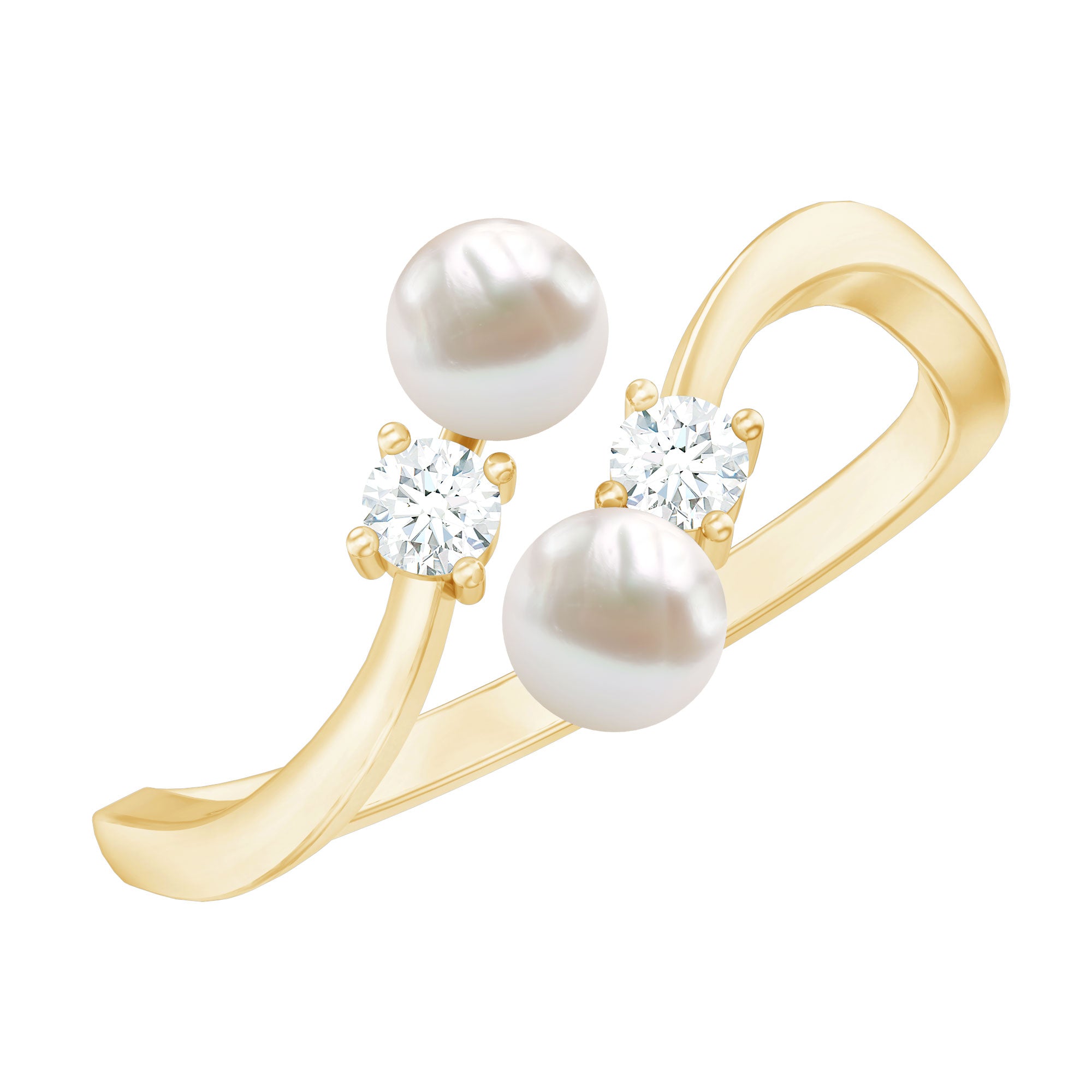 Celebrate the union of two souls with this exquisite Freshwater Pearl Wrap Ring, a perfect gift for your beloved woman. Crafted in a captivation wrap style featuring two Cultured Freshwater Pearl with round Diamond stones adds a touch of brilliance and sparkle. This ring beautifully represents the coming together of two individuals in love. Let this ring be a cherished reminder of your love and unity.