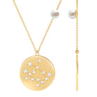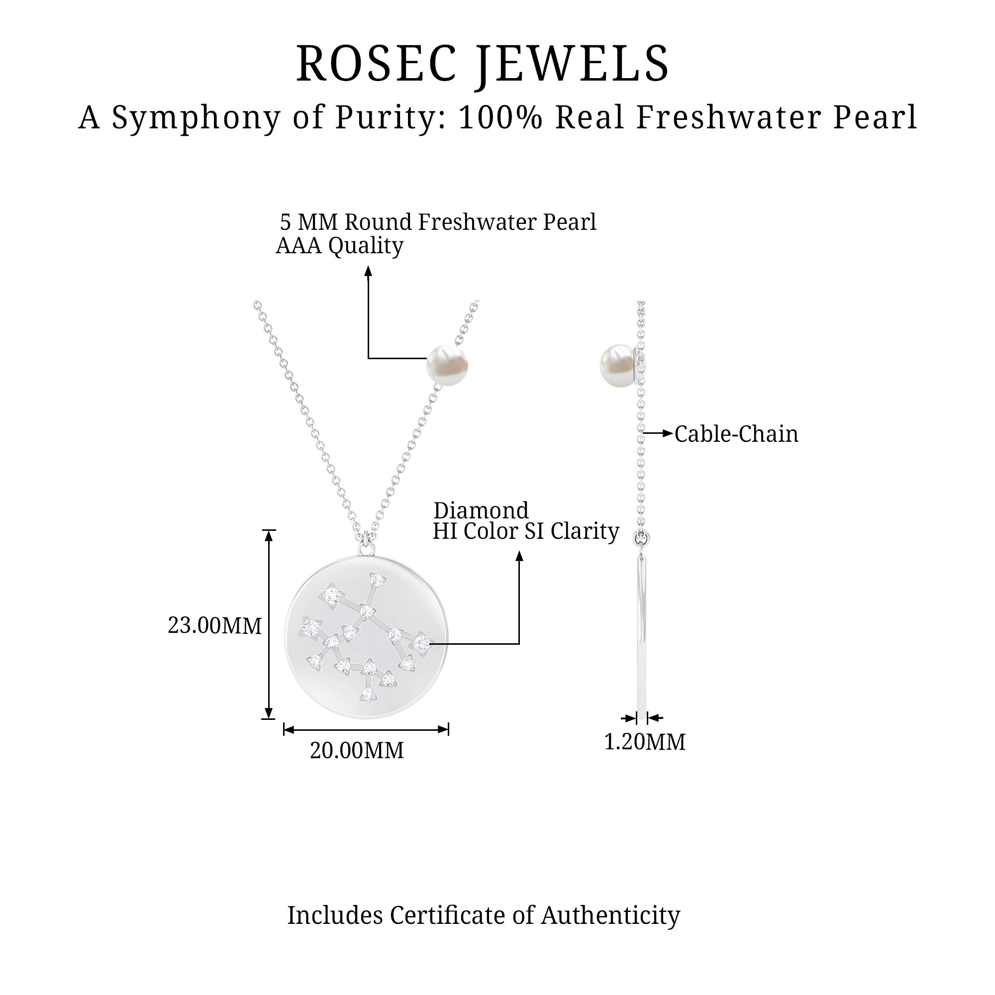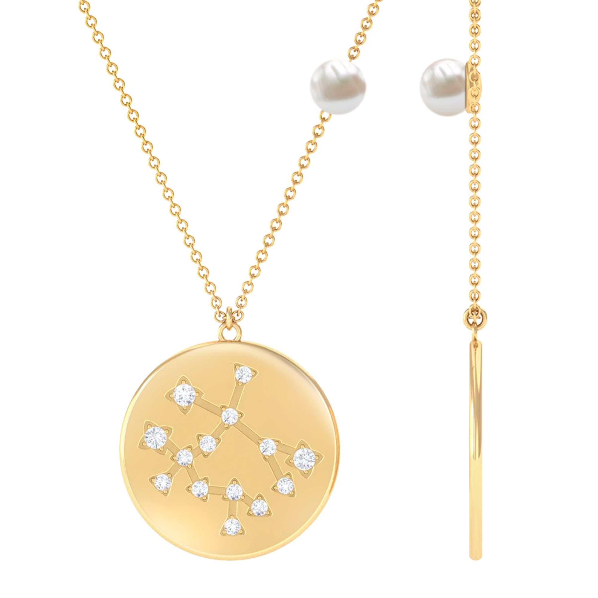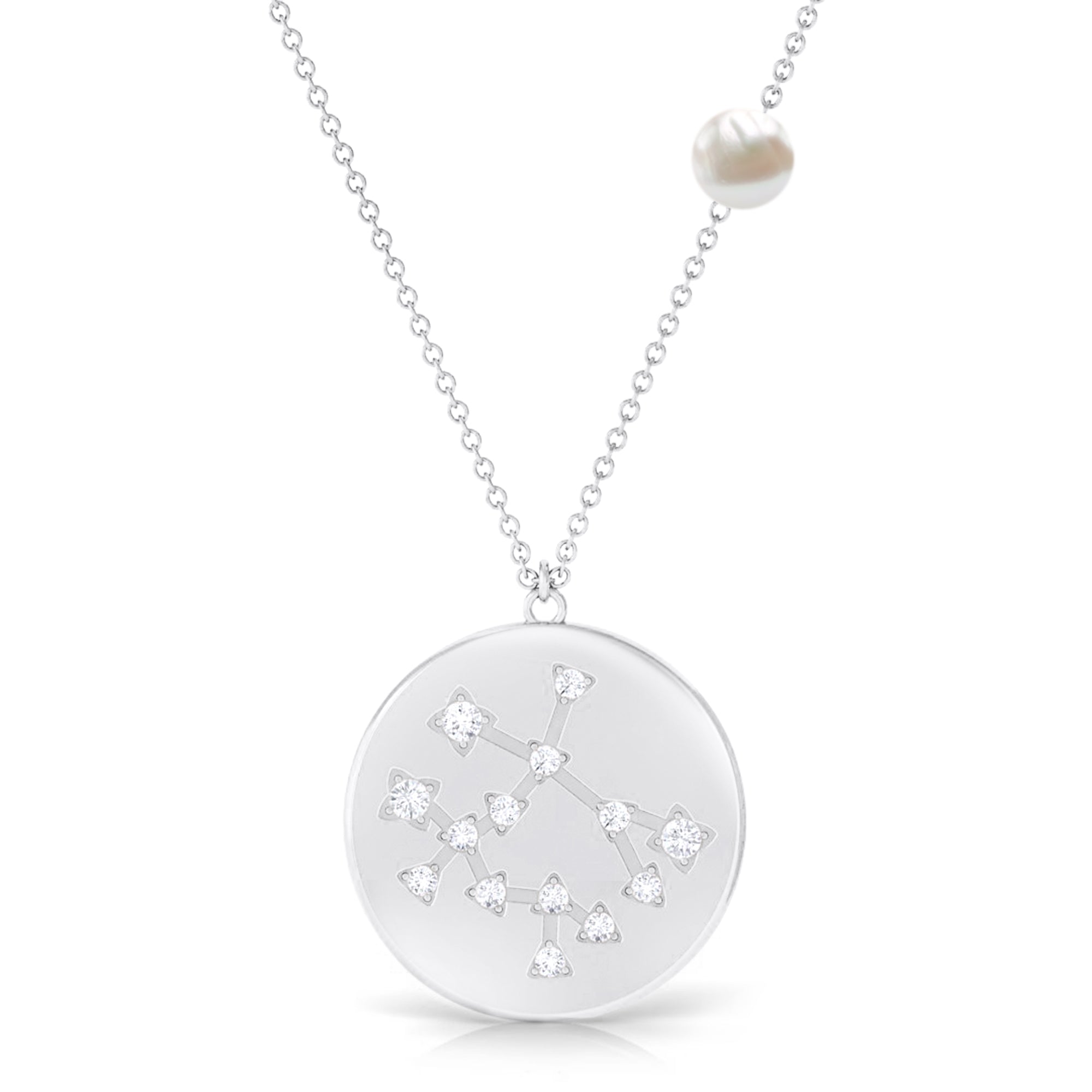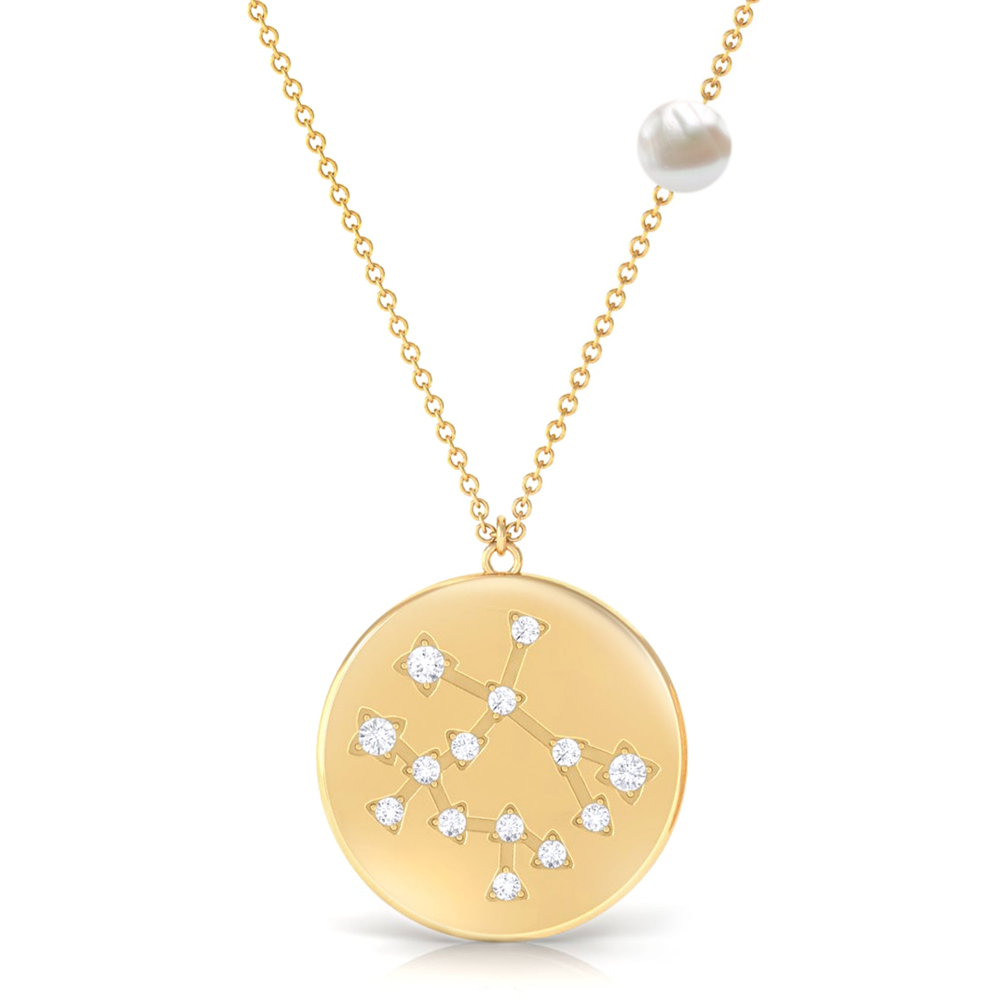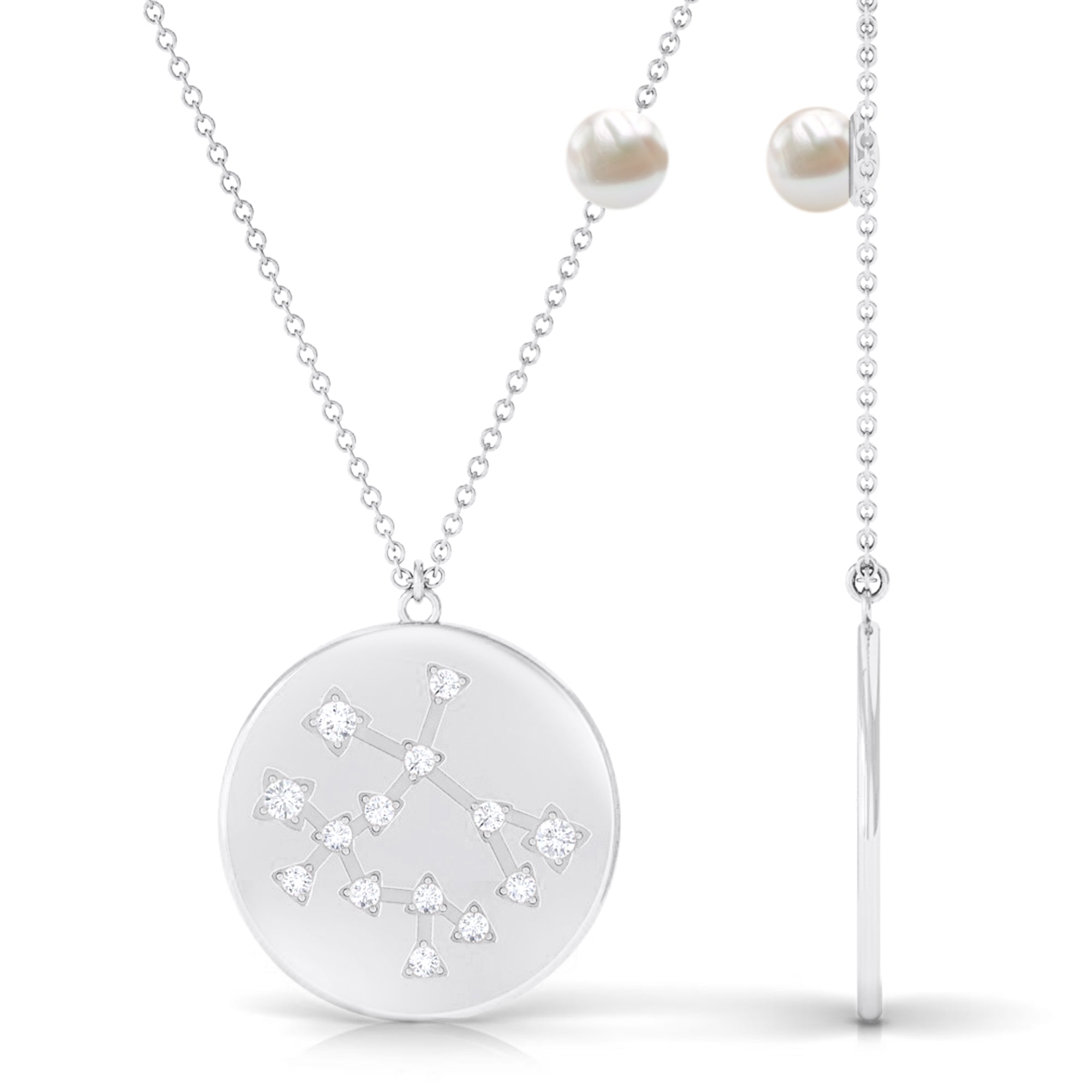 Express your personality with this meaningful Gemini Necklace studded with Round Shape Freshwater Pearl on the chain along with Round Shape Diamond in Pave Setting. This Zodiac Pendant Necklace works like a stylish lucky charm for June born ladies.