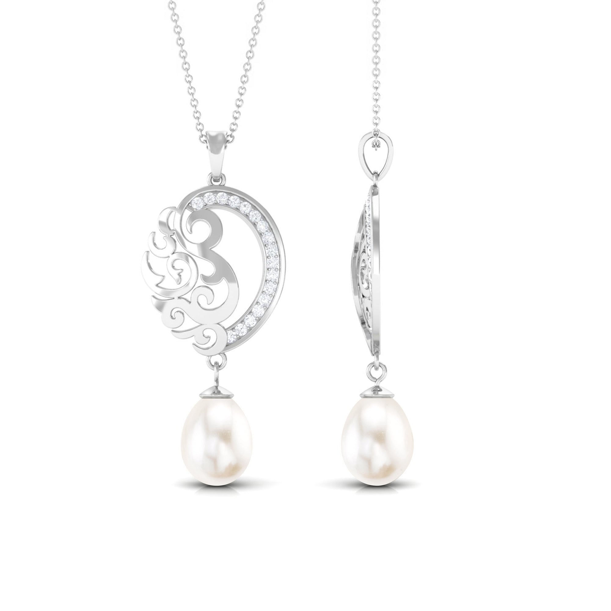 Freshwater Pearl Art Deco Drop Pendant with Diamond