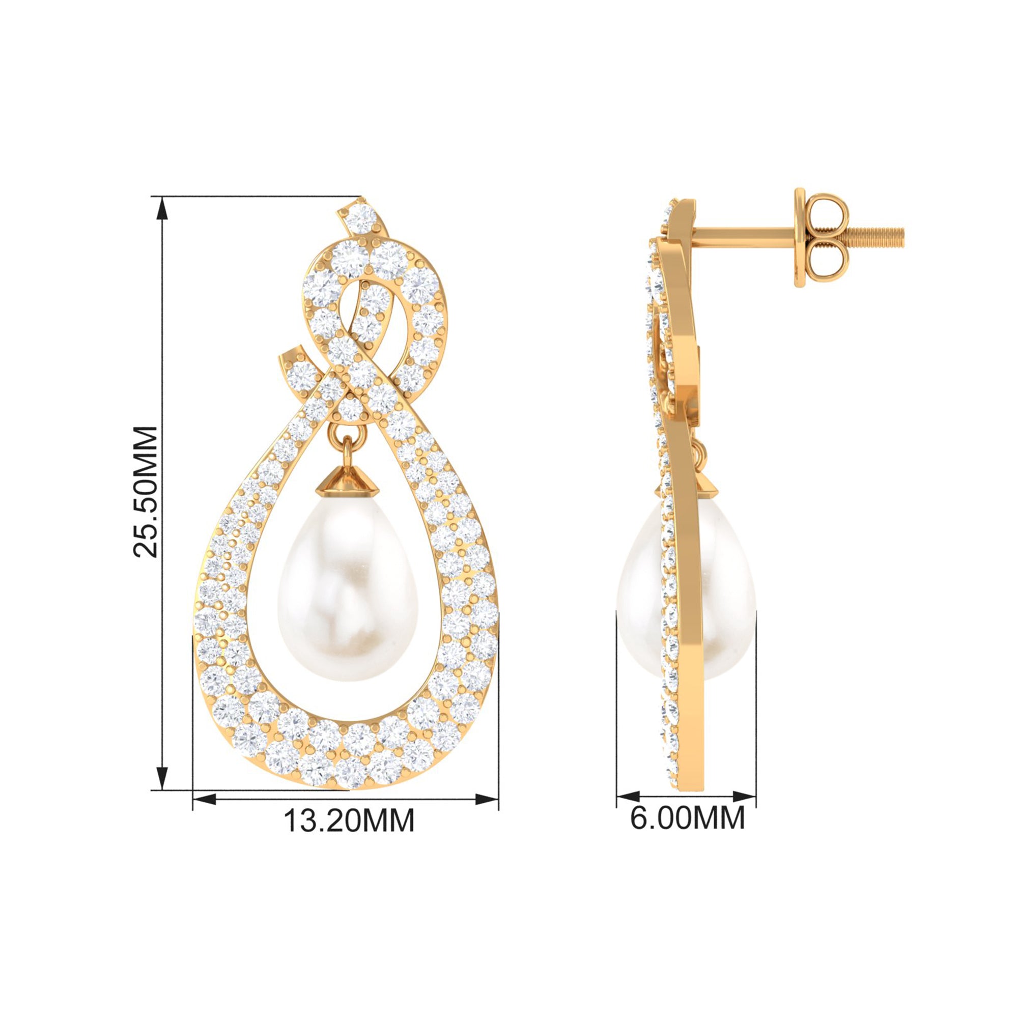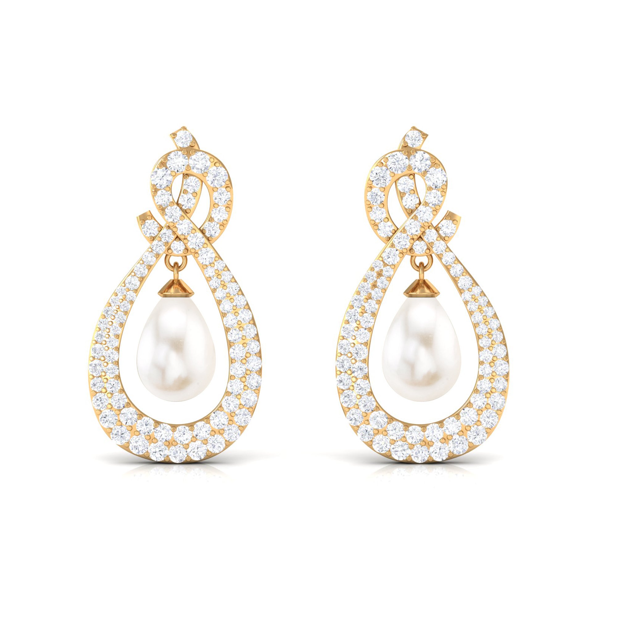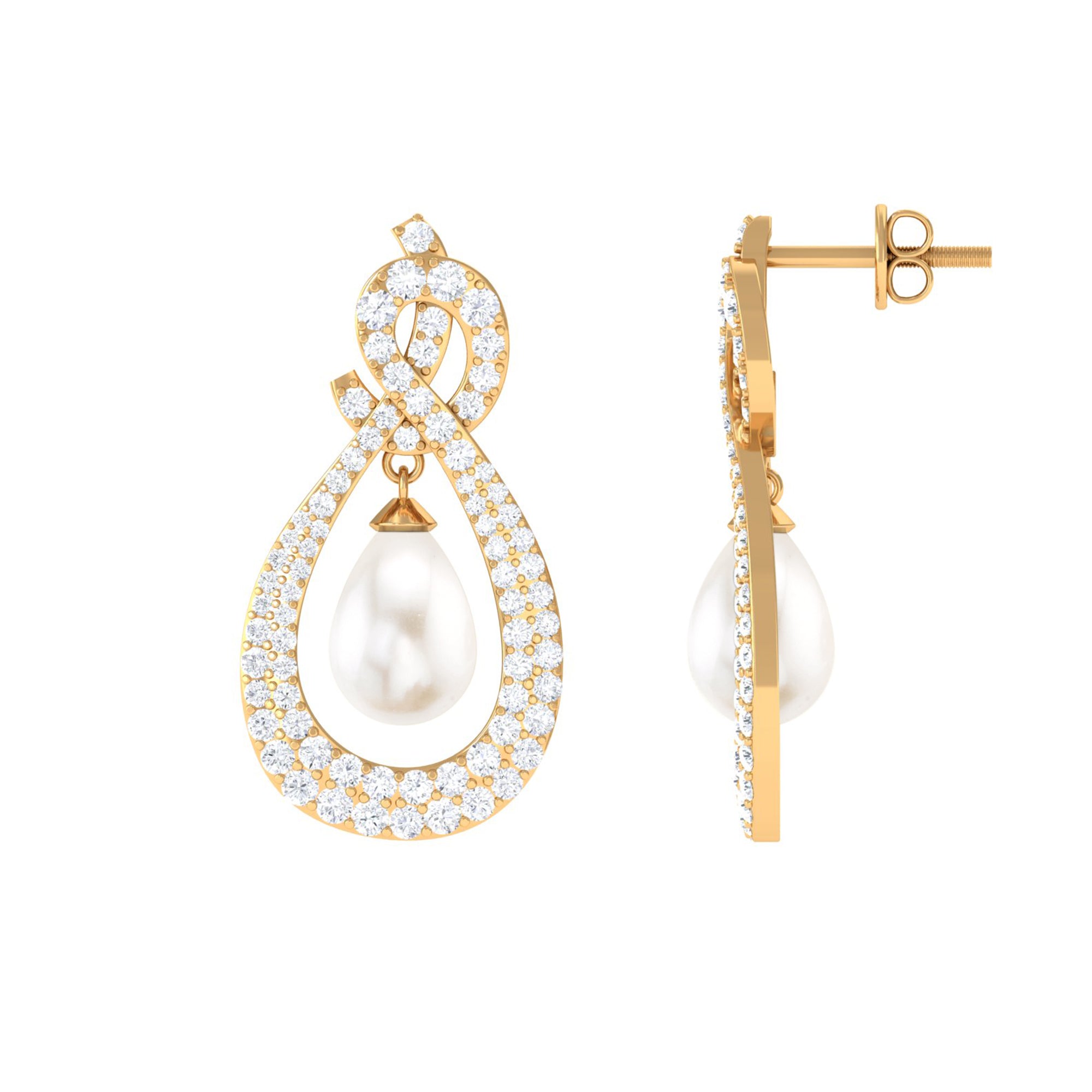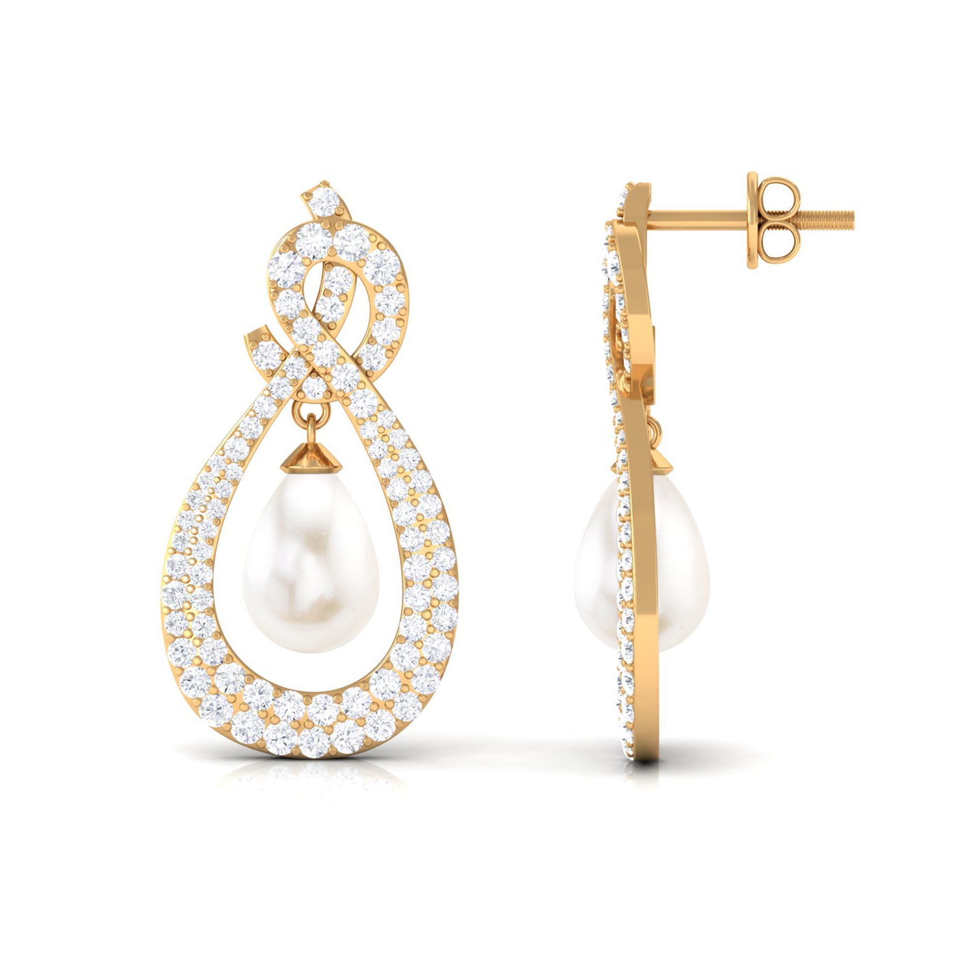 Elevate your elegance with Moissanite Freshwater Pearl Dangle Earrings, featuring sparkling gems in a micro pave setting and teardrop-shaped pearls.