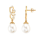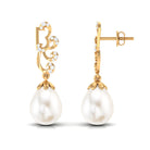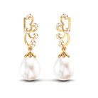 Freshwater Pearl Drop Earrings with Diamond Stones