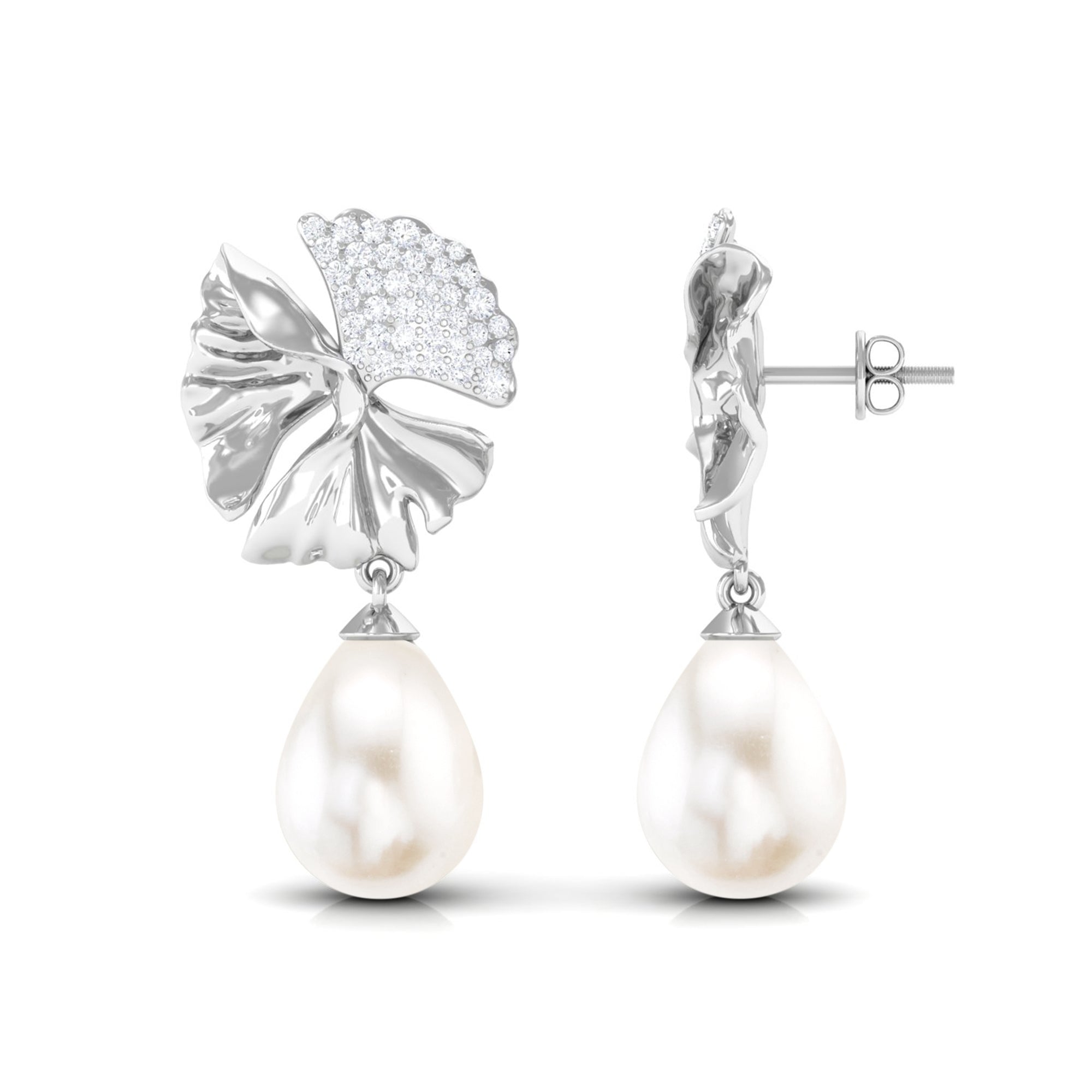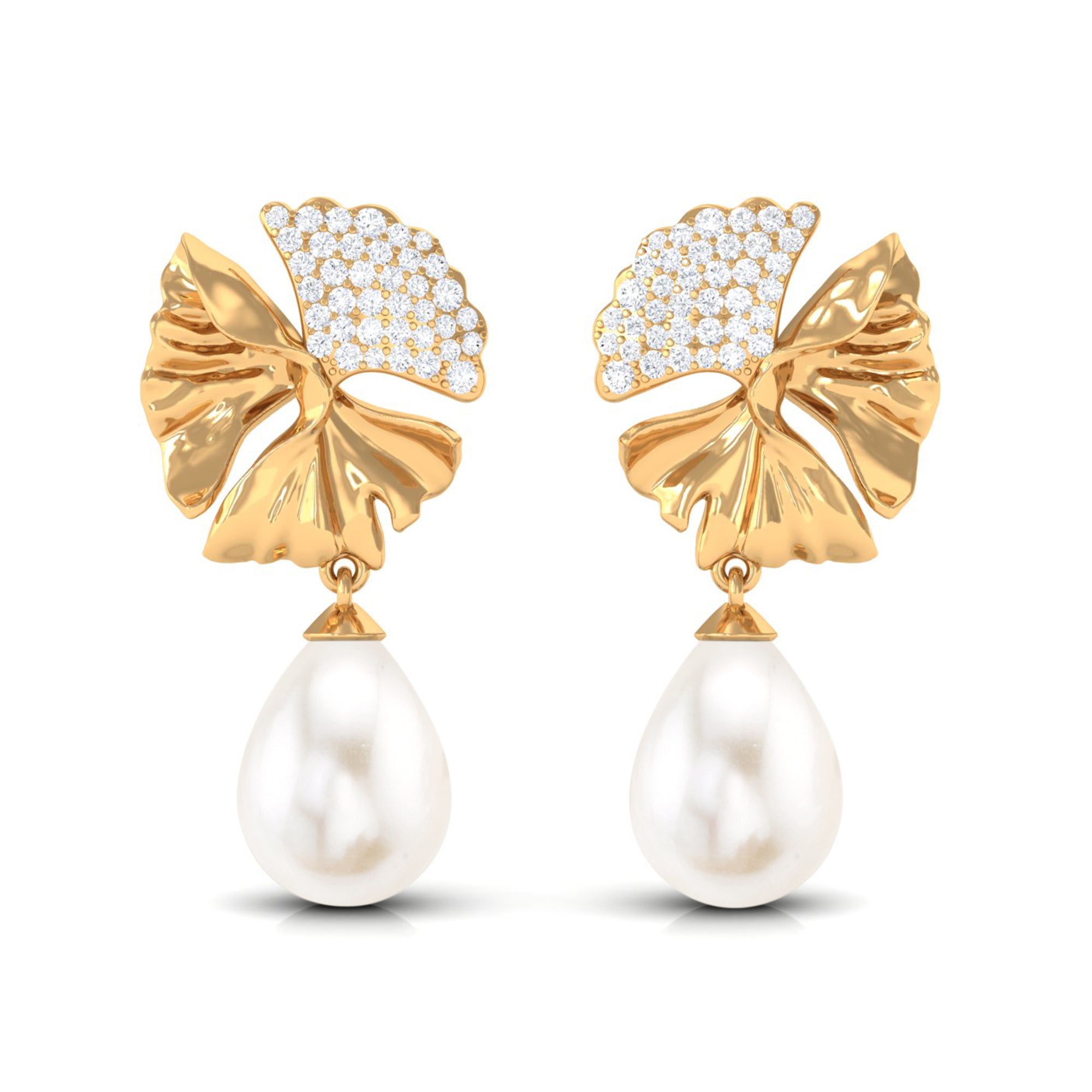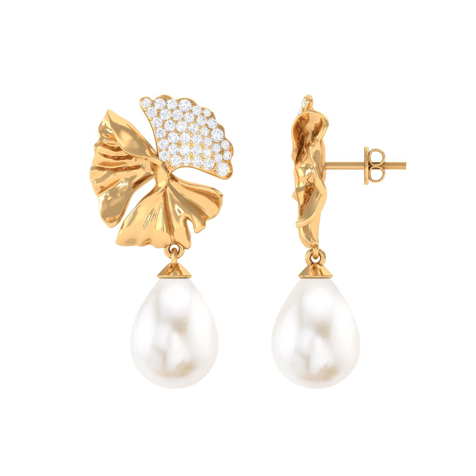 Indulge in a touch of natural elegance with these Pearl Drop Earrings, thoughtfully crafted to bring effortless beauty to any occasion. Each earring features a glowing 9X12 mm Freshwater Pearl Drop suspended from a uniquely shaped three petal flower, that feels both delicate and distinctive. One petal is gently adorned with petite Moissanite stones, adding a subtle sparkle that catches the light without overpowering the design. The combination of the floral motif and the radiant AAA Quality Pearl gives these Freshwater Cultured Pearl Earrings a graceful charm, perfect for brides-to-be, cocktail parties or anyone who loves jewelry with a fresh, nature-driven feel. The secure Screw Back Closure ensures all-day comfort and confidence, making them an easy choice for events, celebrations or elegant everyday wear. Presented in a beautifully designed jewelry box, they also make a thoughtful and memorable gift for someone special. With their blend of simplicity, shimmer and timeless appeal, these Flower Earrings are crafted to be adored and worn again and again.