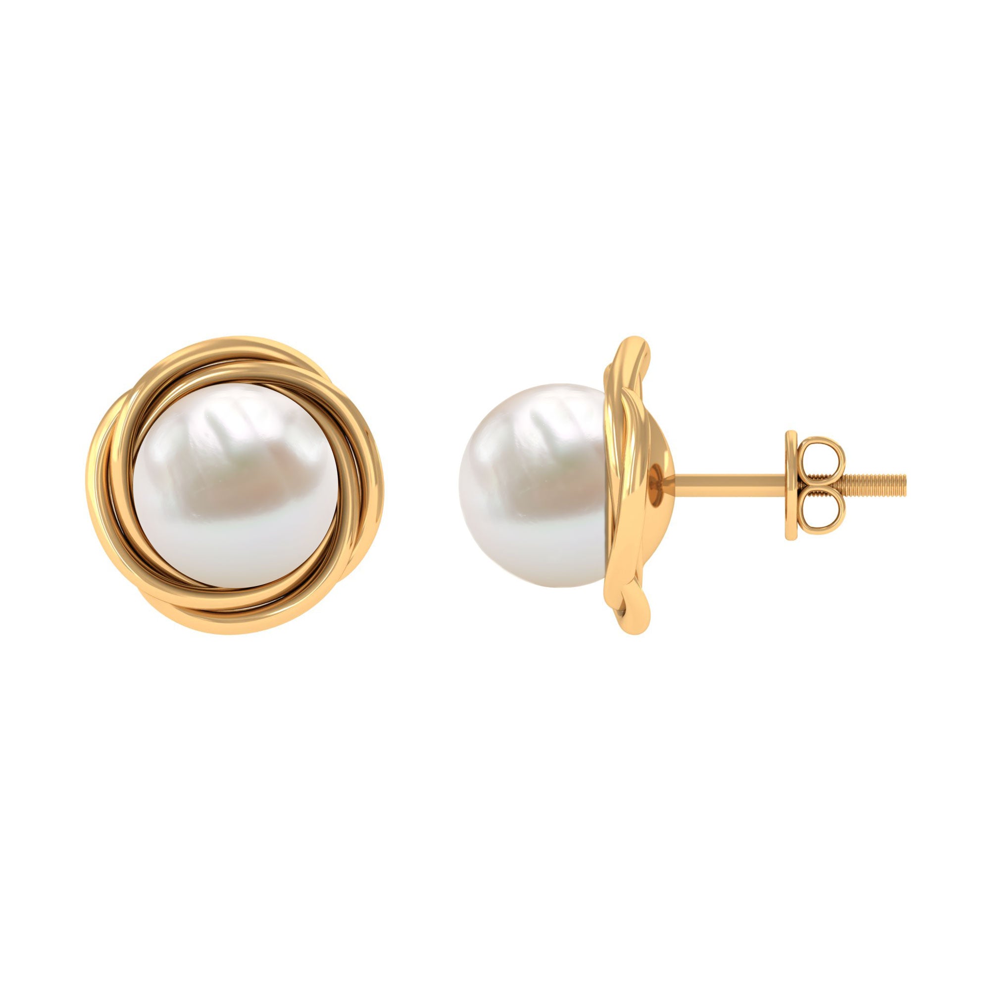 Freshwater Pearl Solitaire and Gold Swirl Stud Earrings