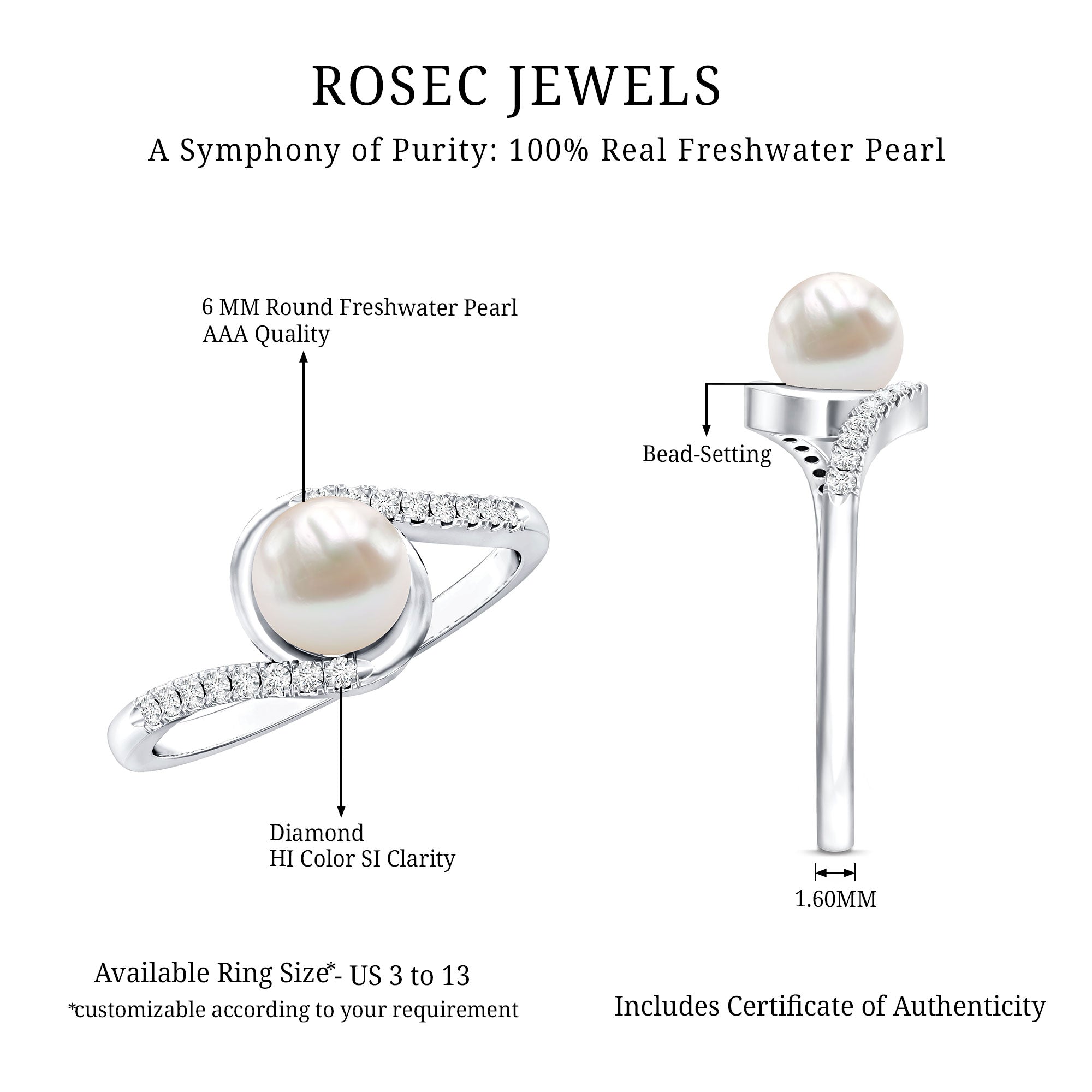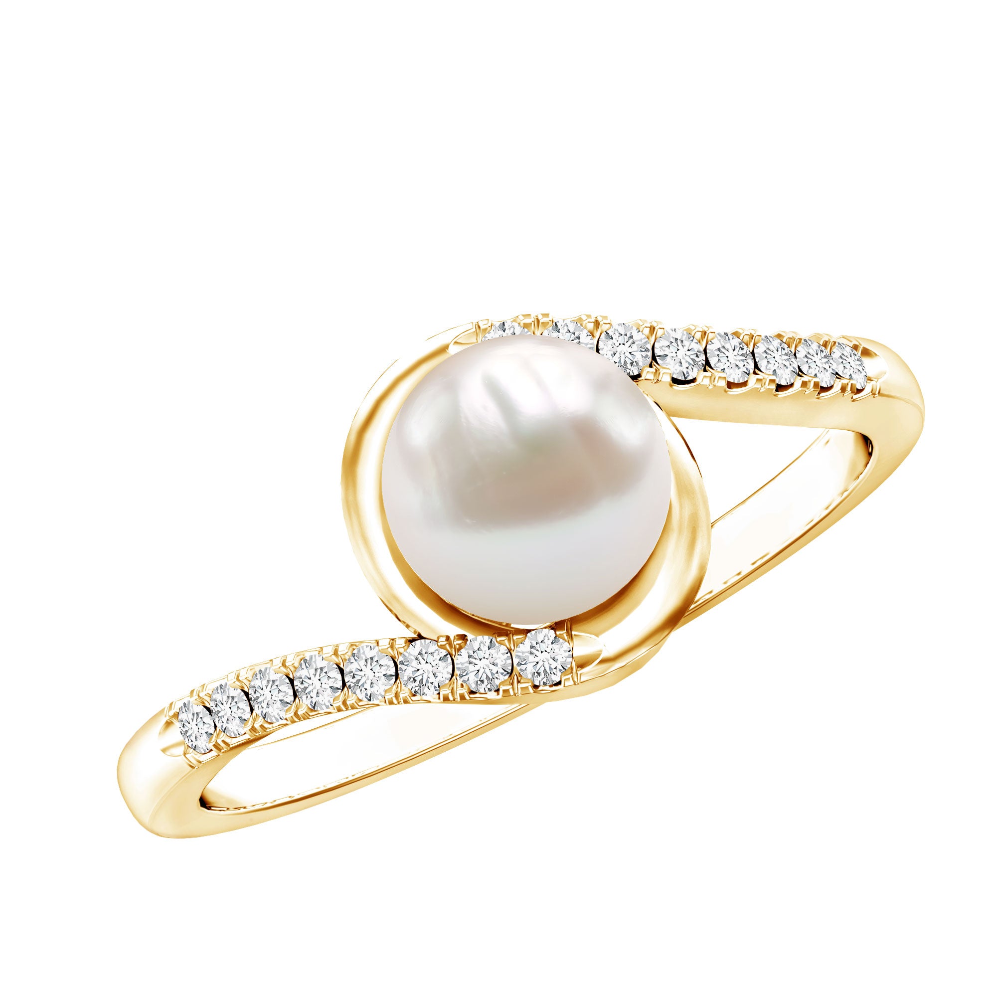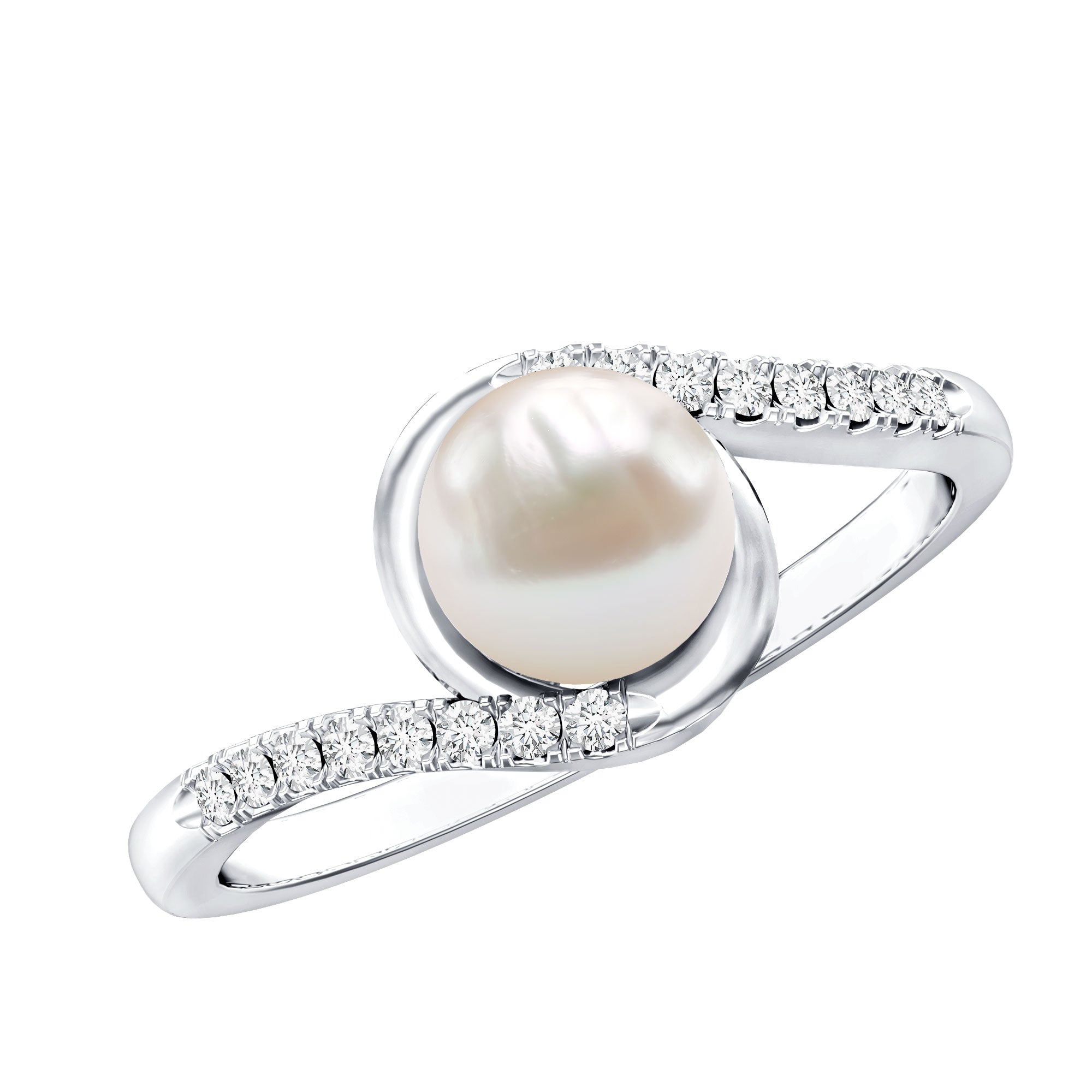Delight your pretty lady with this Freshwater Pearl Bypass Ring, it is crafted for sumptuous look. Round Petite Diamond are arranged on the twisted shank to add a touch of charm to this Pearl Engagement Ring. The Bypass Pearl Ring creates a contemporary look to the wearer. Get this Pearl Solitaire Engagement Ring for your lady and impress her with your choice.
