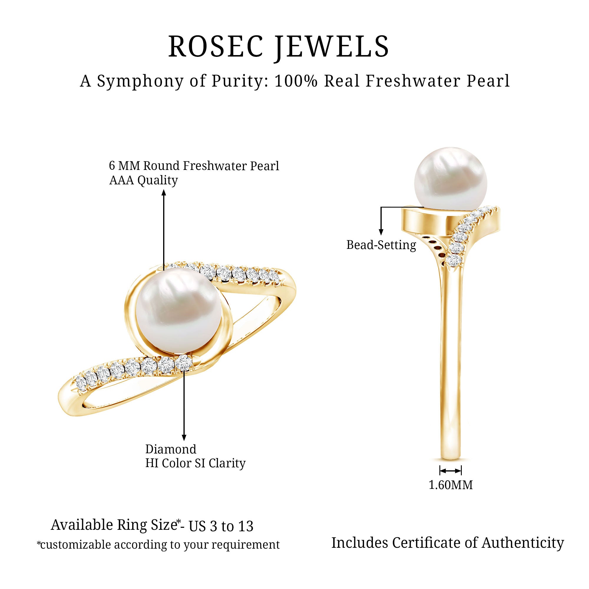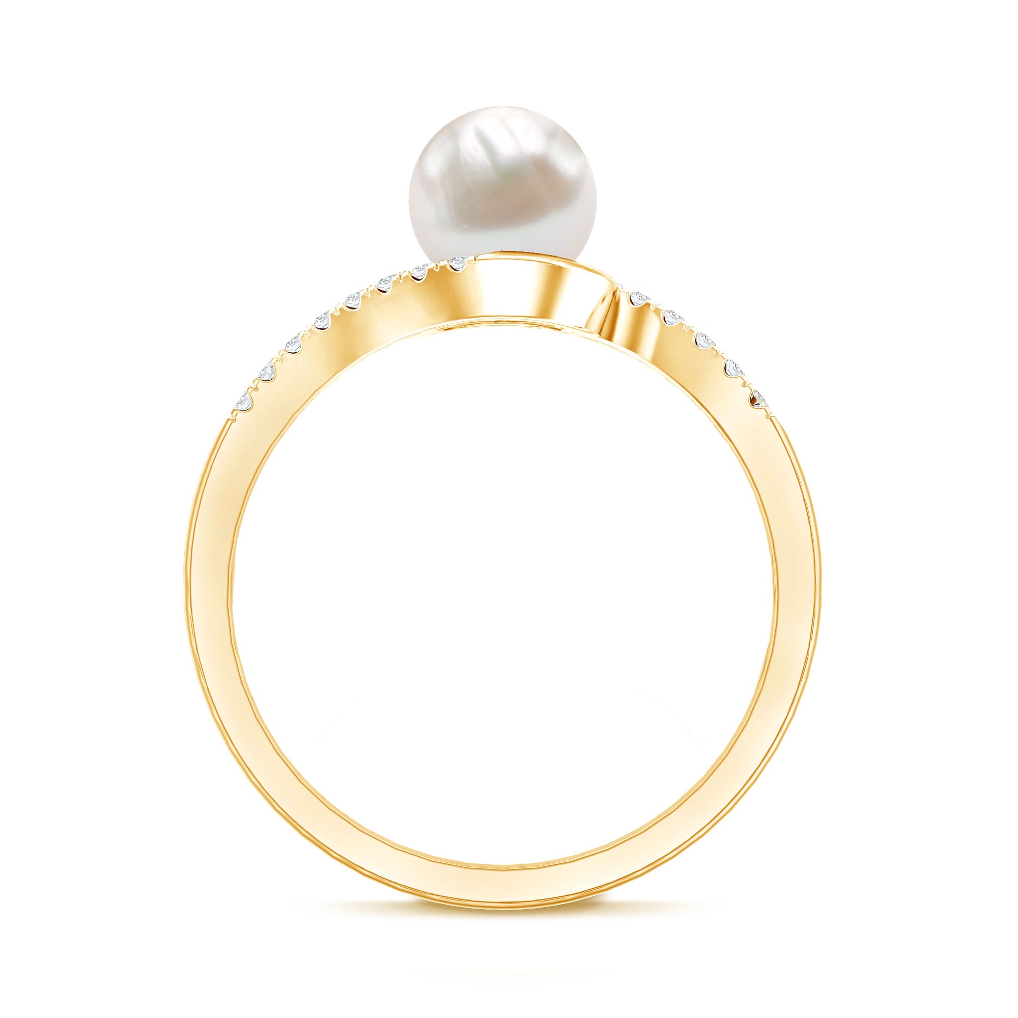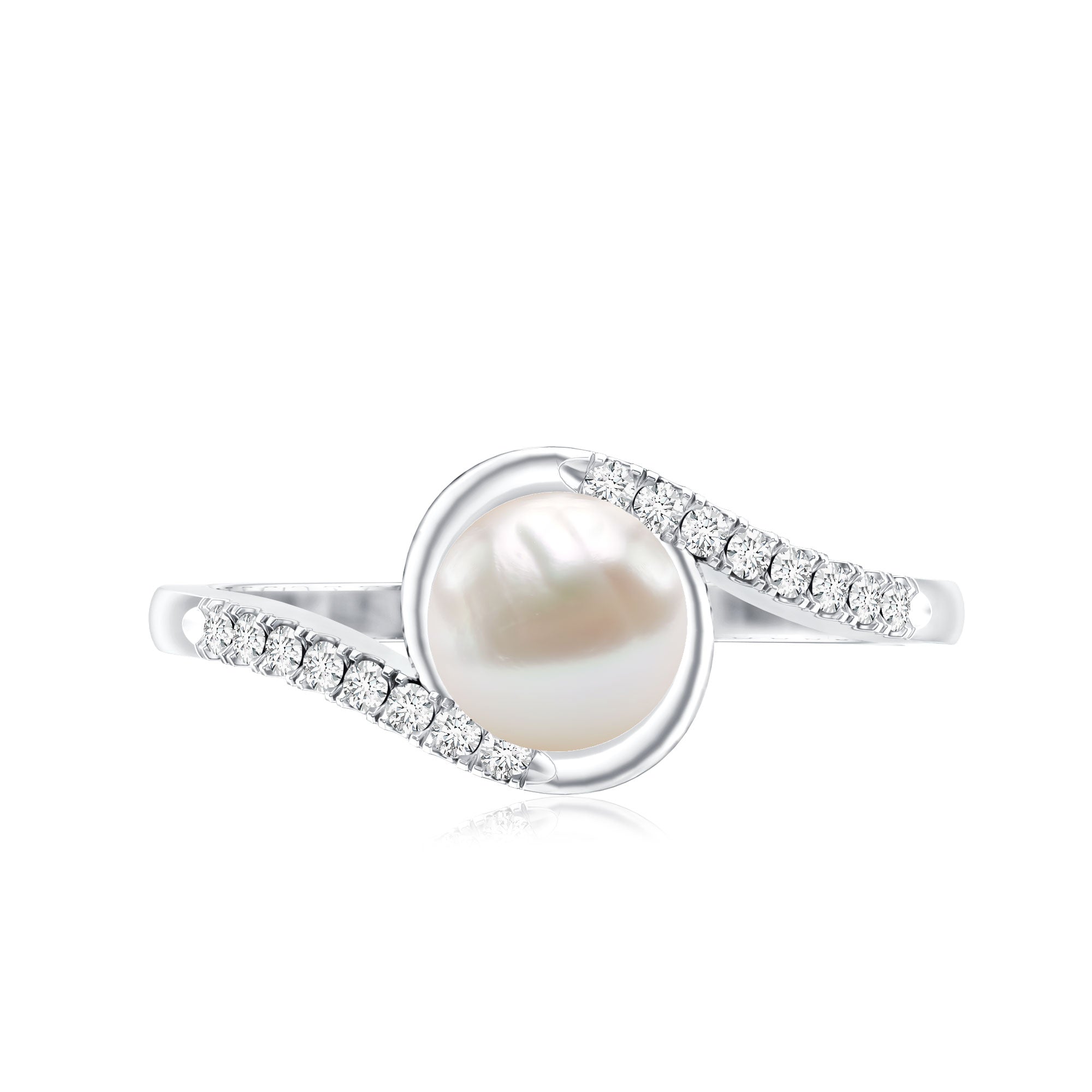 Freshwater Pearl Solitaire Bypass Engagement Ring with Diamond Accent
