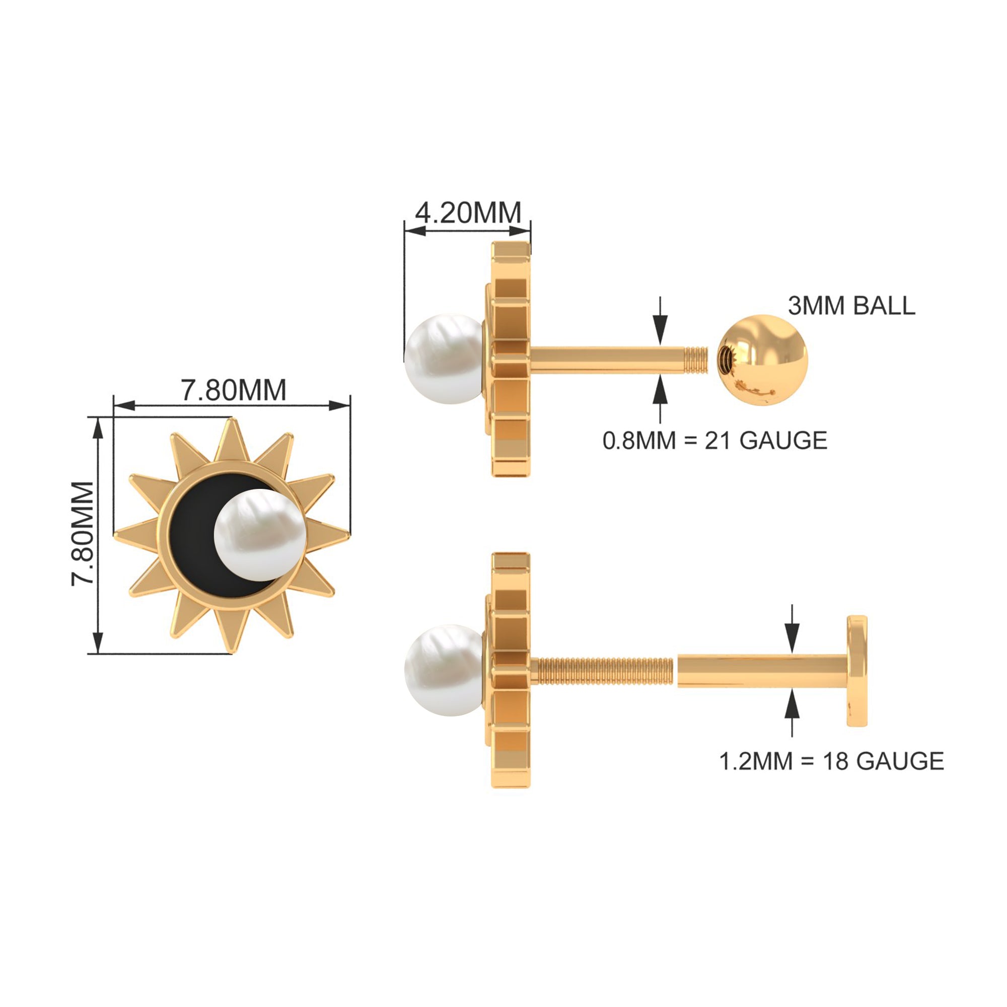 Our Freshwater Pearl Solitaire Celestial Earring is bursting with celestial beauty! Adorned with an exquisite Round Freshwater Pearl set in Bead Setting with Black enamel details. This Piercing Earring will be the shining star of your chic ear stack.You can style this Solitaire Earring on your Helix, Cartilage, or Upper Lobe Piercing. This stunner boasts a flat back-no more pokes or jabs during quick naps or beauty sleep extravaganzas.Elevate your style with a celestial beauty that twinkles with every move!
