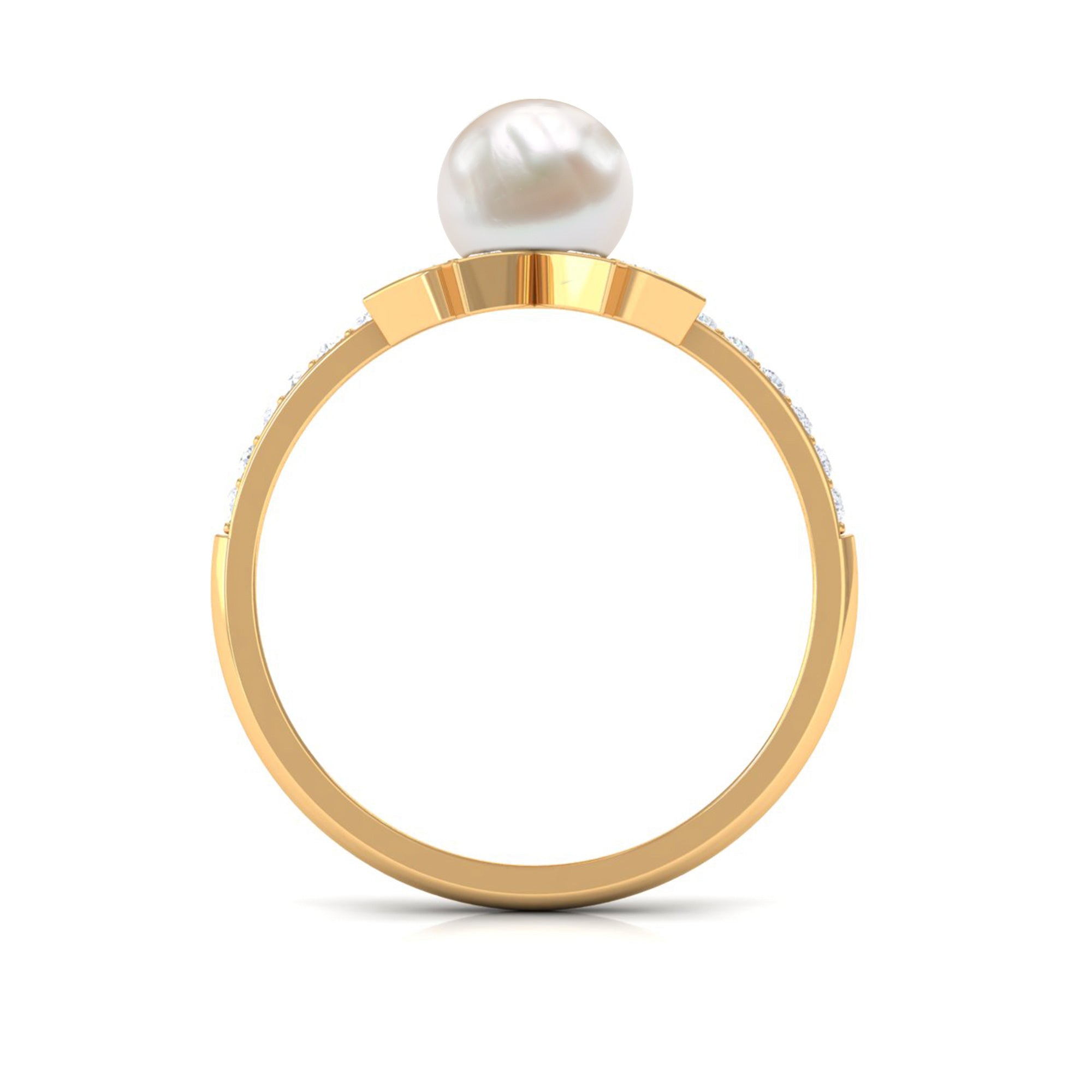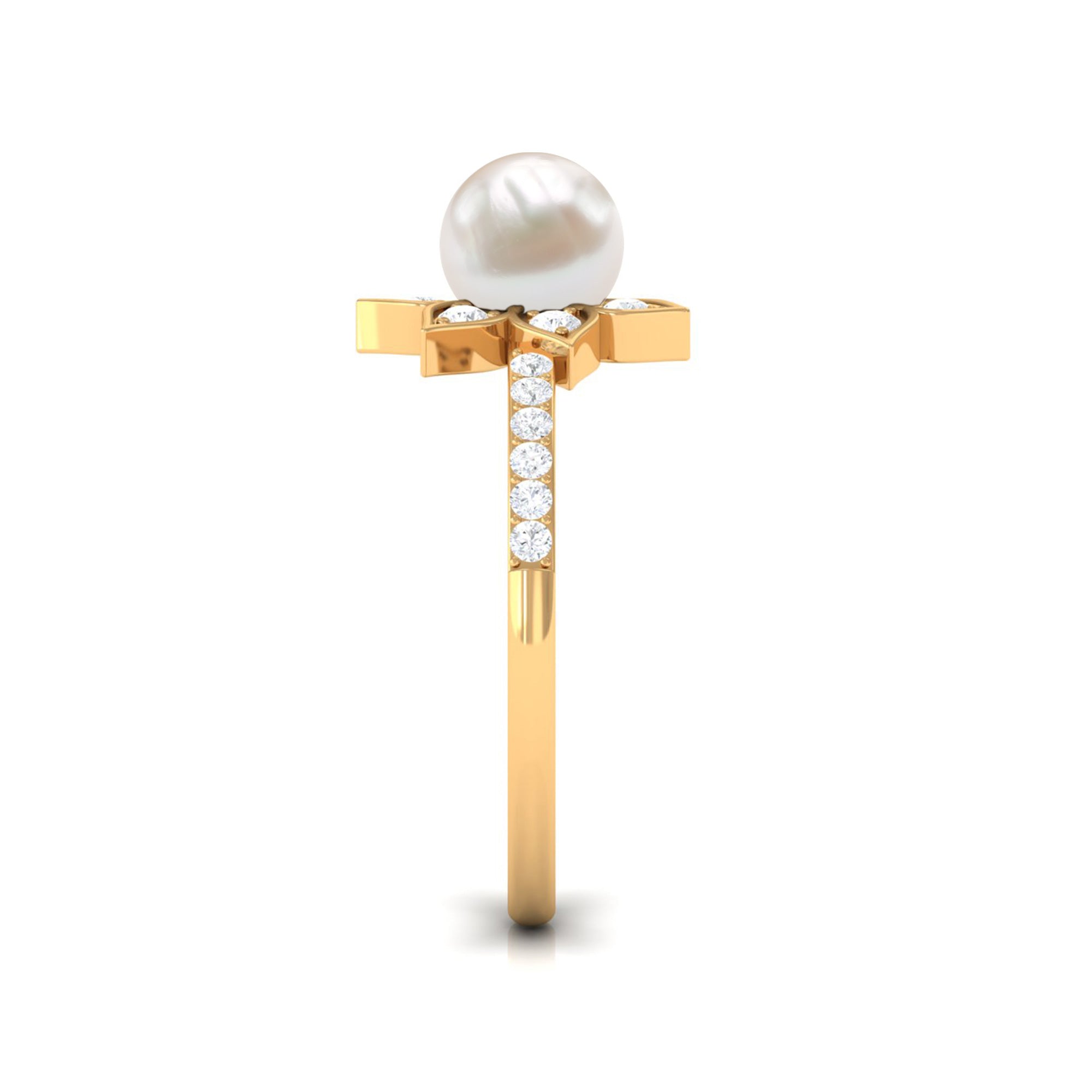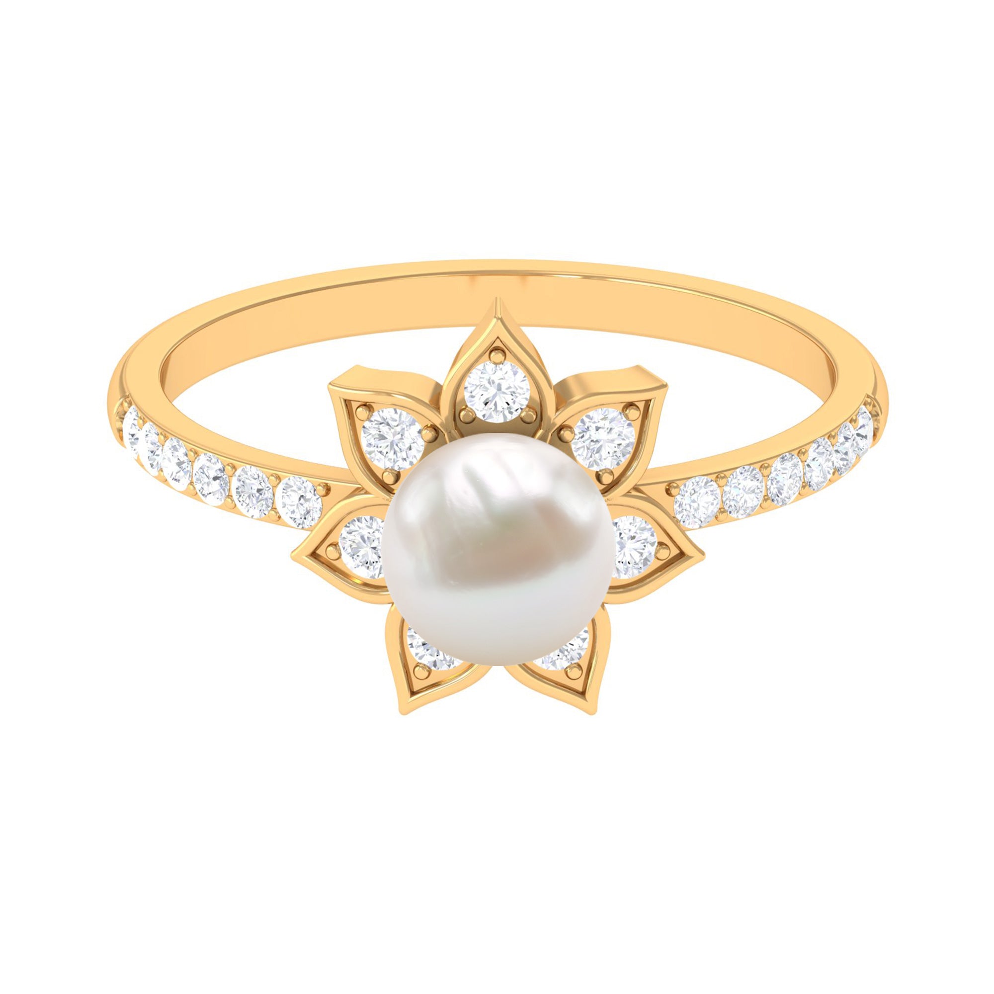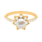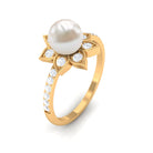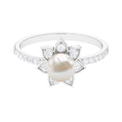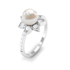 Freshwater Pearl Solitaire Floral Engagement Ring with Diamond