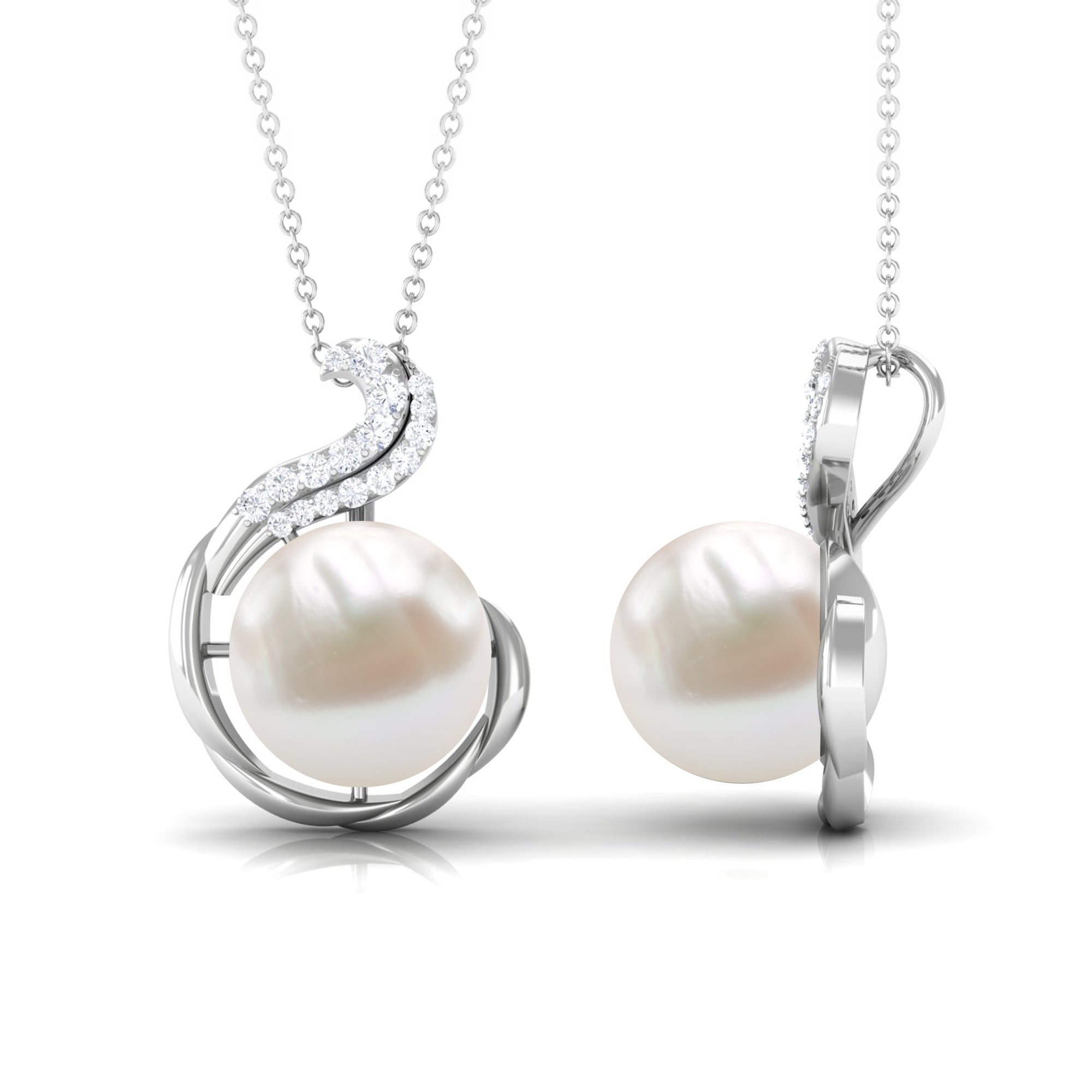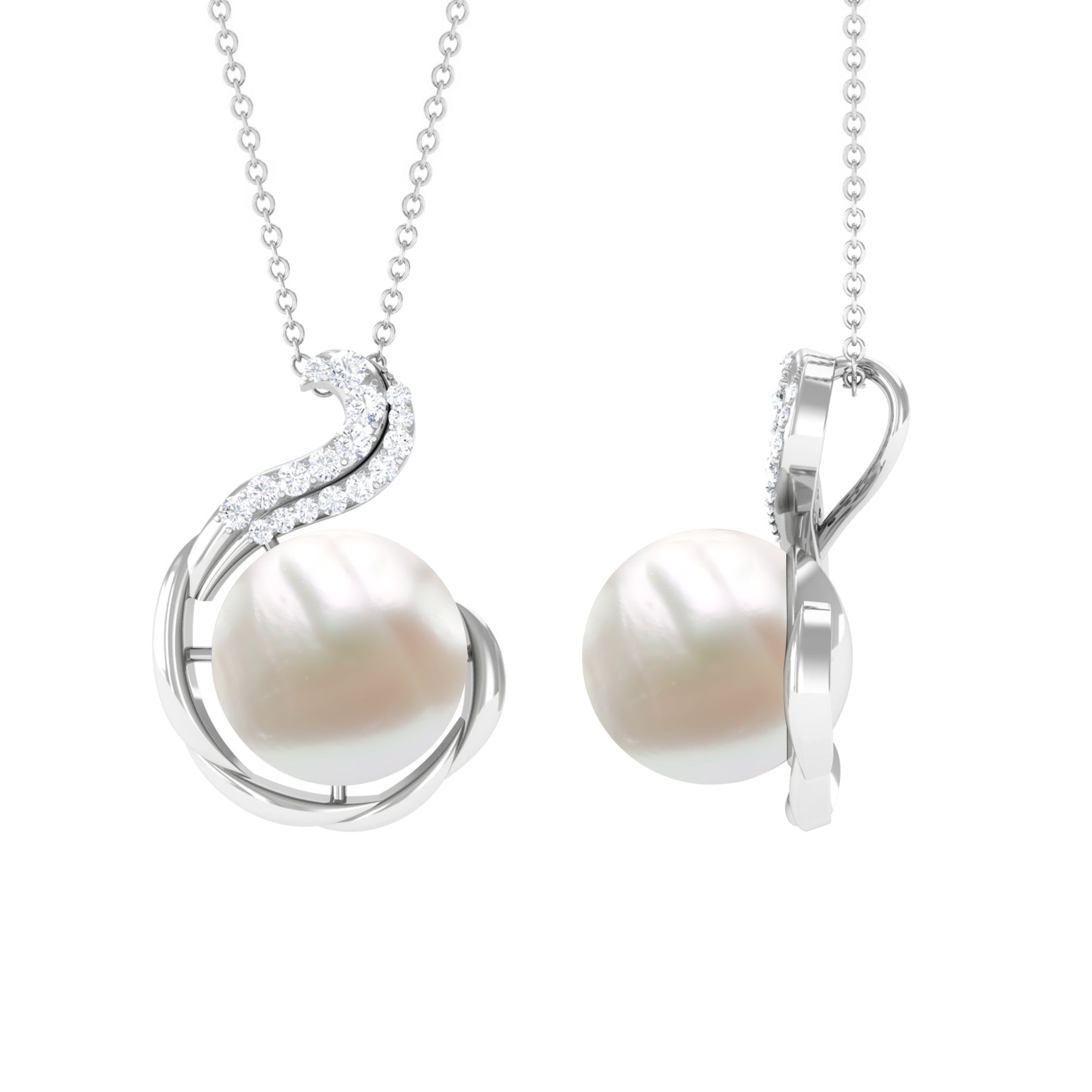 Freshwater Pearl Solitaire Pendant with Diamond