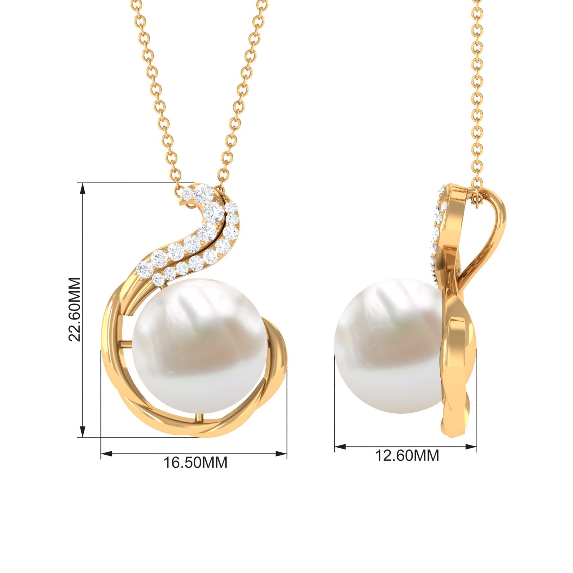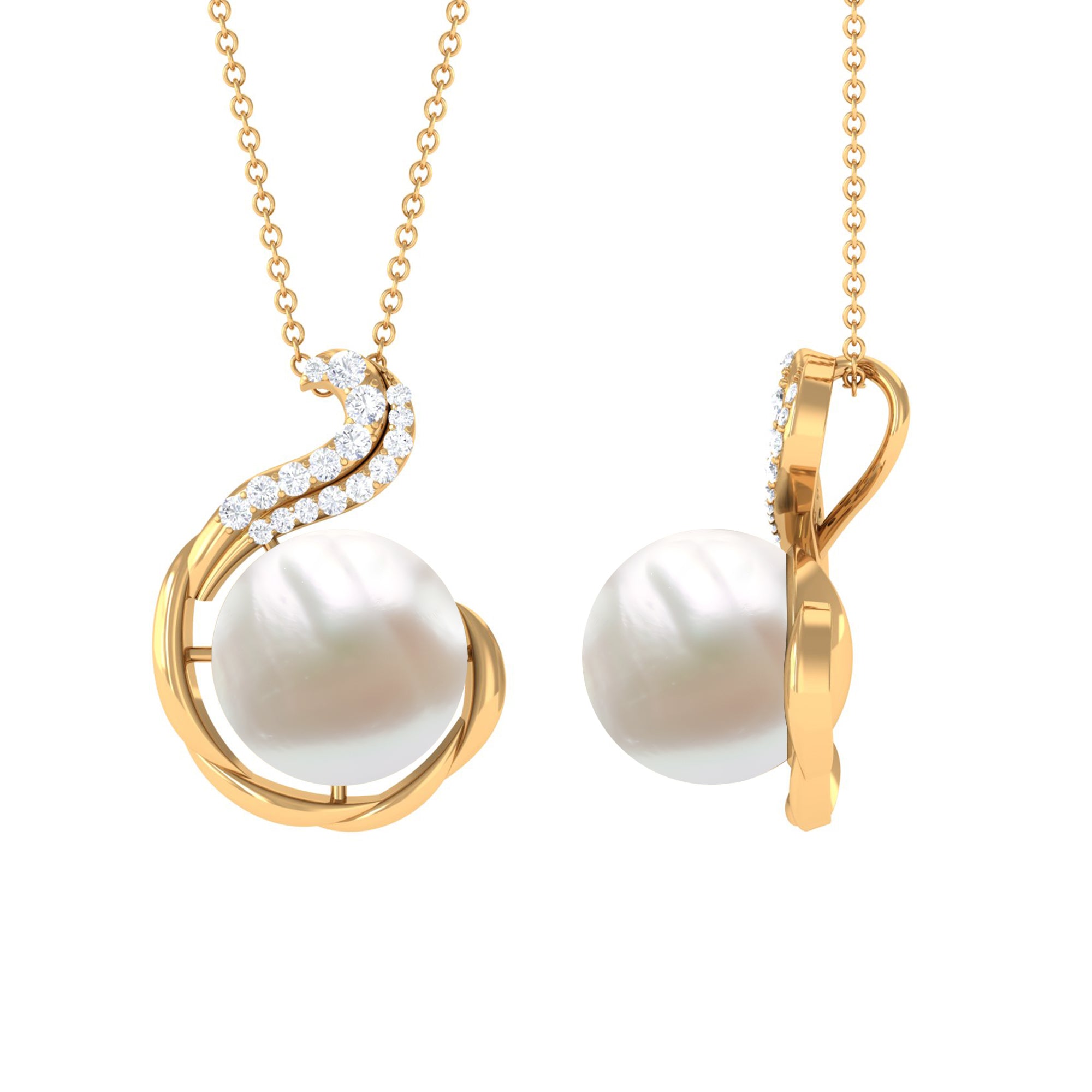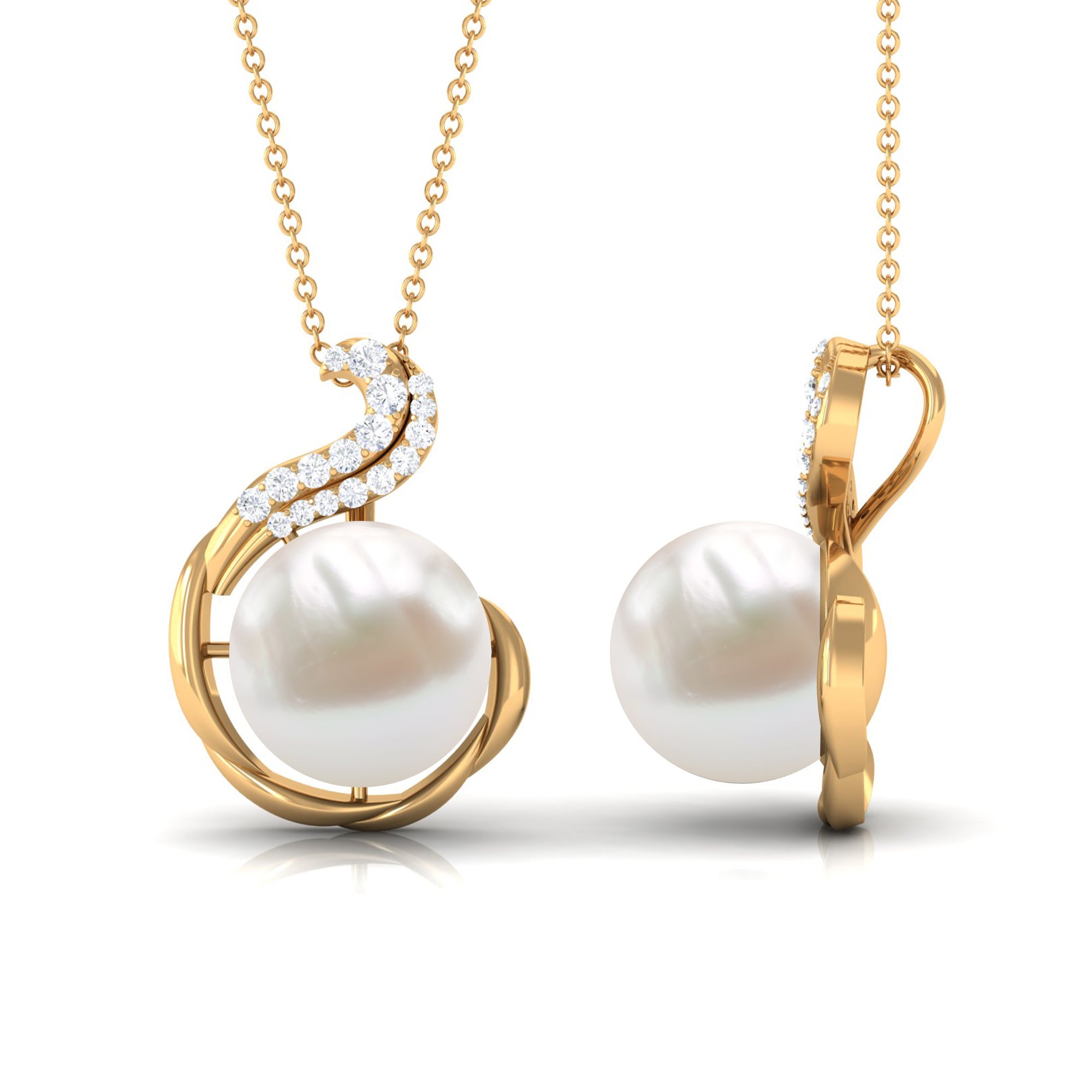 This simple yet exquisite Solitaire Pendant Necklace is embellished with Round Shape Freshwater Pearl set as a Solitaire additionally, Round Diamonds add a touch of sparkle. Get this Pearl Pendant Necklace to make your favorite person feel extra special by presenting it as an anniversary gift for her.