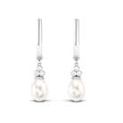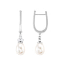 Freshwater Pearl Teardrop Latch Back Earrings with Diamond