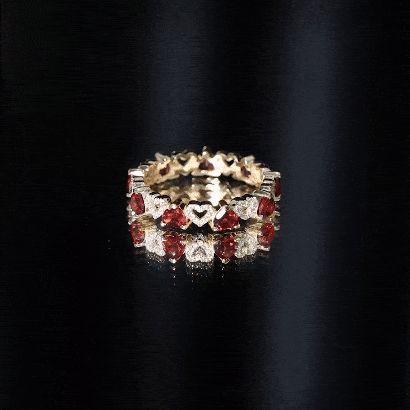 Handcrafted with love and devotion, this Heart Eternity Ring is a timeless symbol of affection that speaks from the heart. Each sparkling 4 mm Heart Shape Garnet is delicately paired with dainty Round Diamond stones, creating a stunning rhythm of deep red and shimmering brilliance that wraps gracefully around your finger. Designed to celebrate eternal love, this Full Eternity Ring captures moments of romance in every glimmer, making it a perfect choice for anniversaries or heartfelt milestones. The rich AAA Quality Garnet symbolizes passion and commitment, while the HI-SI Diamond stones reflect enduring strength and beauty, together, they tell a story of love that never fades. Presented in a signature jewelry box, this Garnet Eternity Ring arrives ready to delight and impress, making the unwrapping moment as memorable as the sentiment it carries. Whether it is a surprise for your partner or a personal treasure, this Garnet Heart Ring turns ordinary days into unforgettable memories, a sparkling reminder of love that lasts forever.