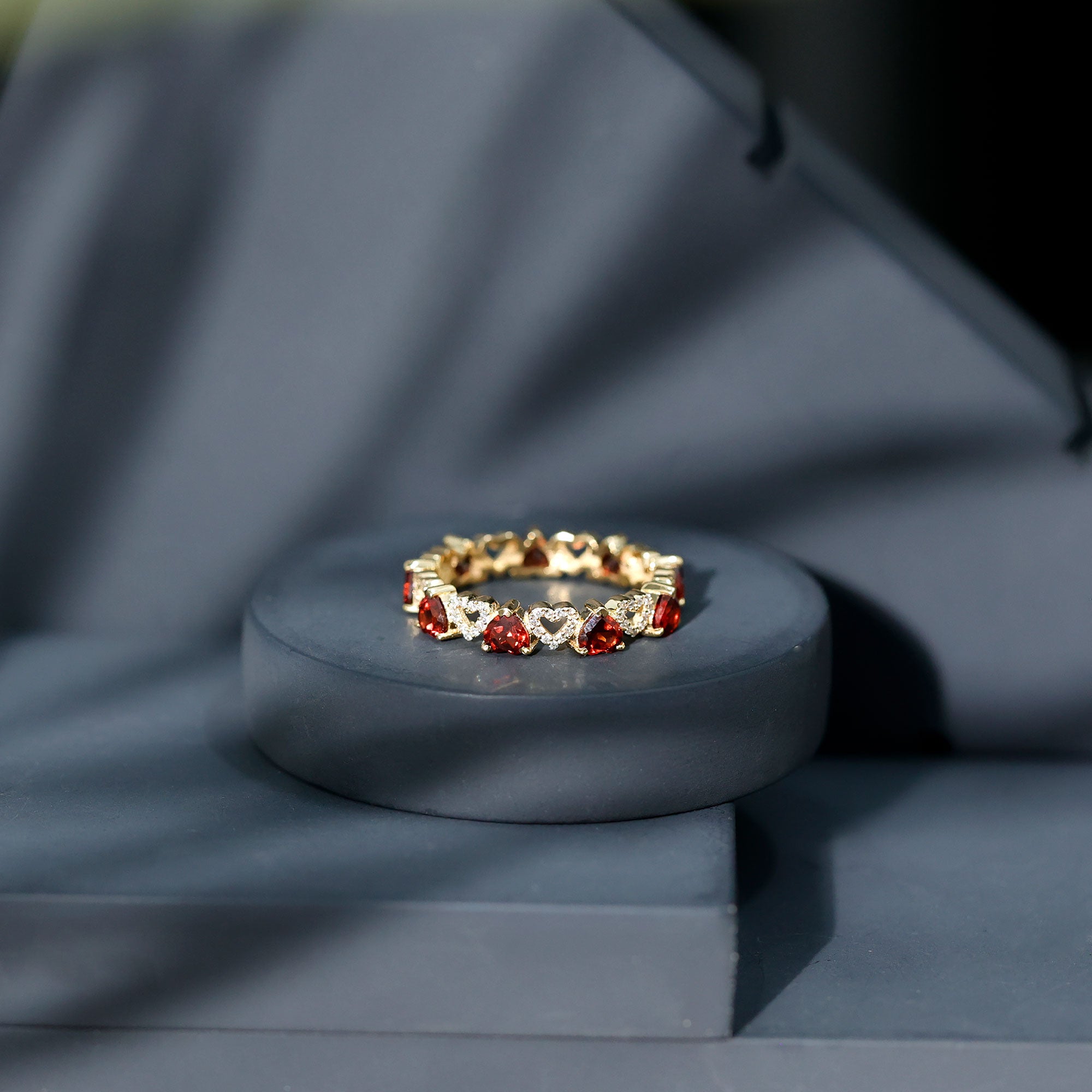 Natural Garnet Diamond Heart Eternity Ring for Anniversary