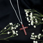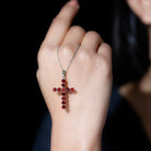 Garnet Christian Cross Necklace in 14K White Gold Plated Silver