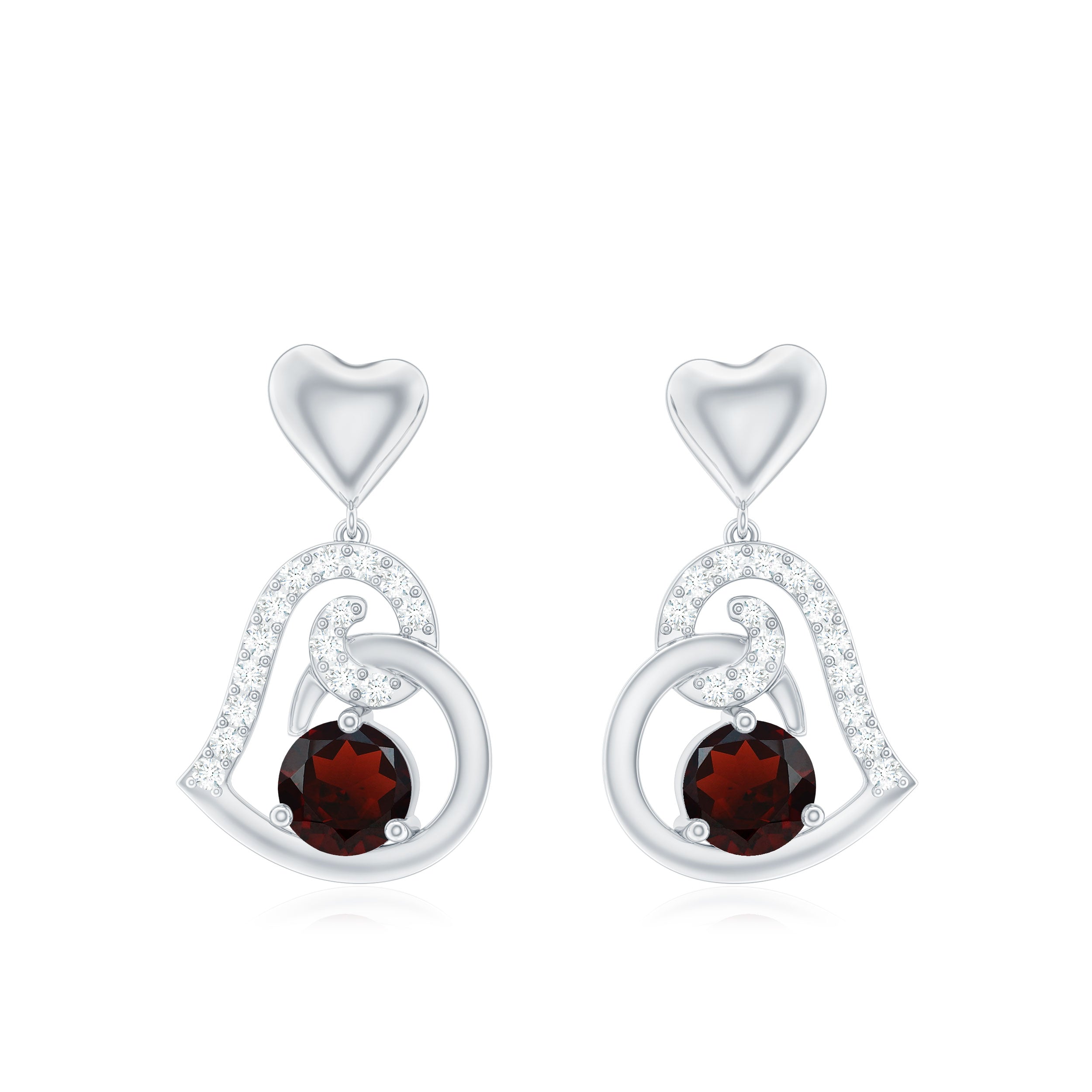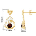 Be Dazzle with these beautiful Heart Drop Earrings embellished with Round Shape Garnet as Solitaire in 3 Prong Setting and Round Shape Diamond accent in Prong Setting.