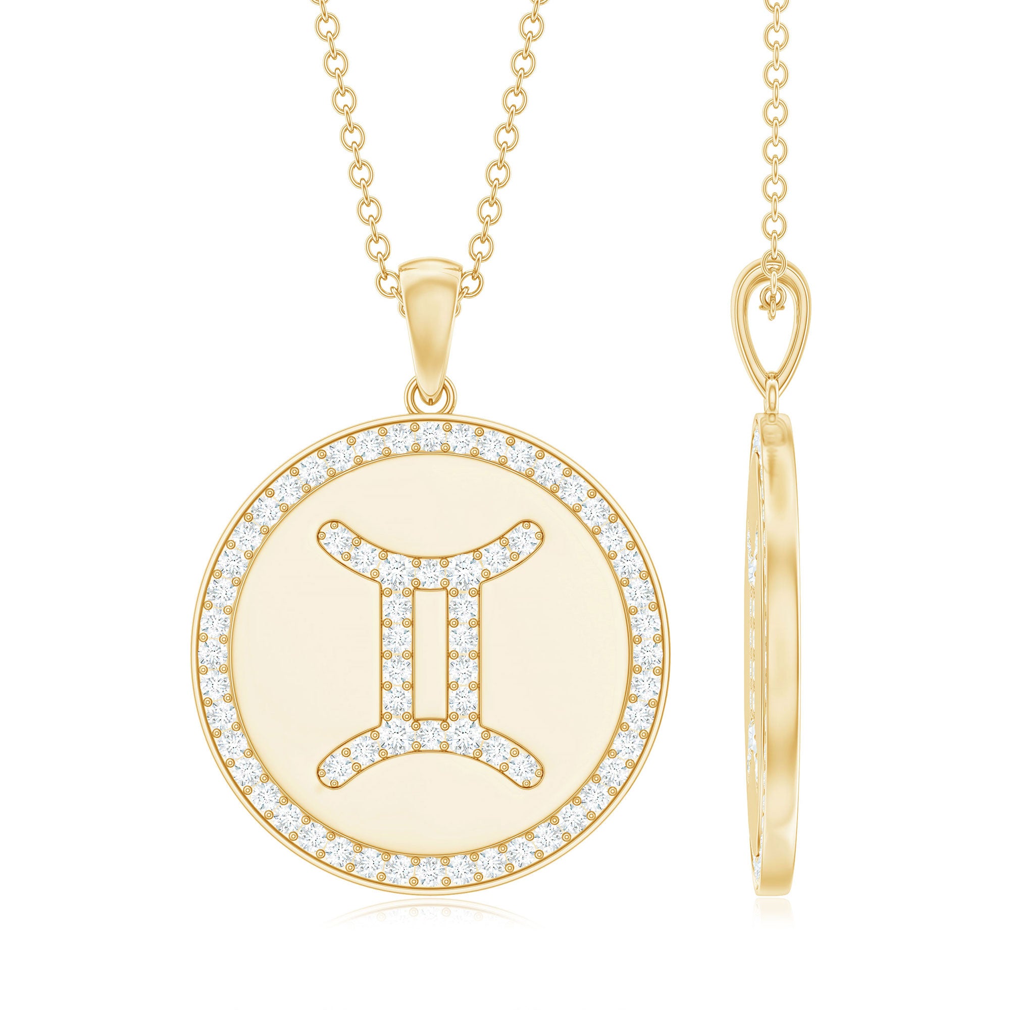 Gemini Zodiac Sign Disc Pendant with Pave Set Moissanite