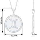 Gemini Zodiac Sign Disc Pendant with Pave Set Moissanite