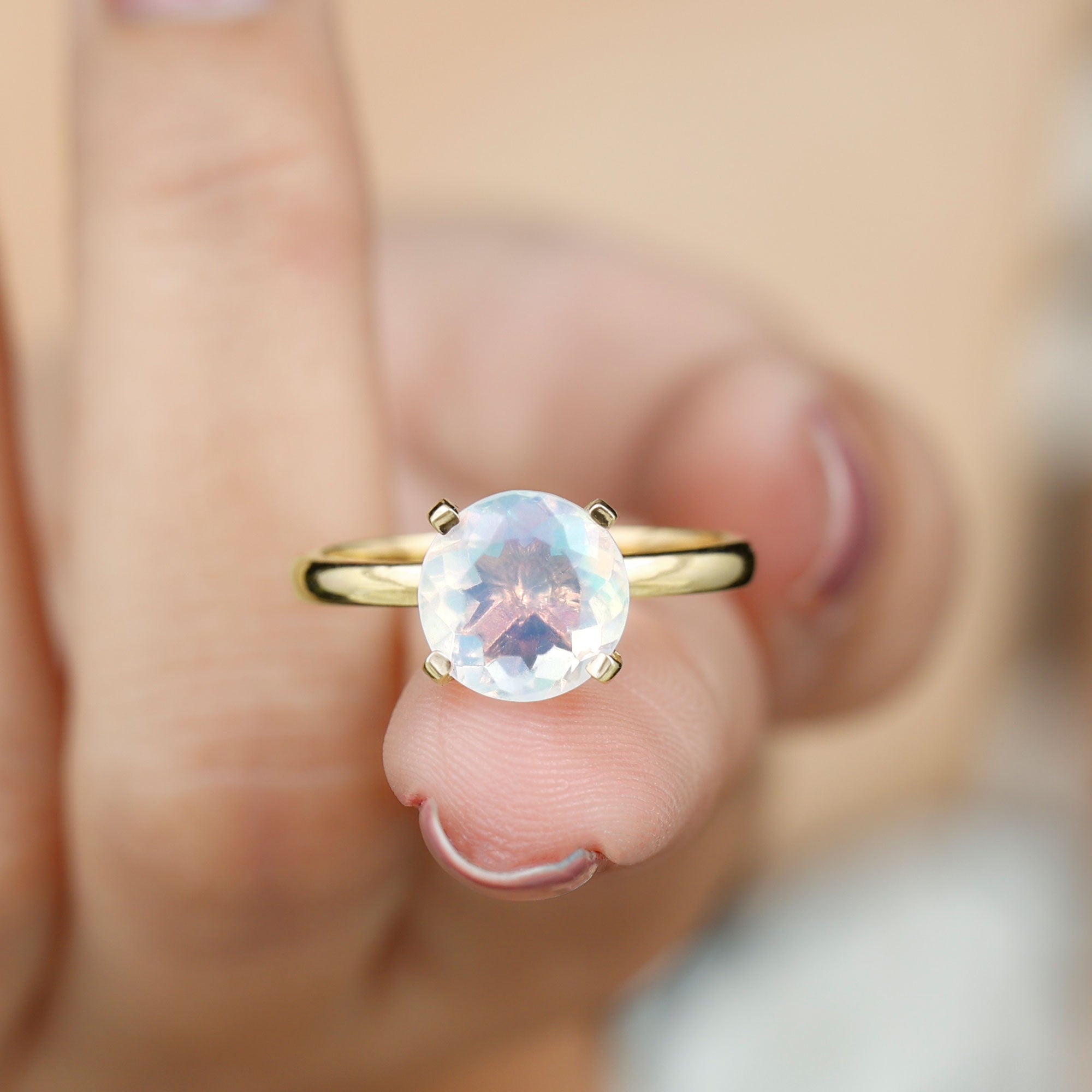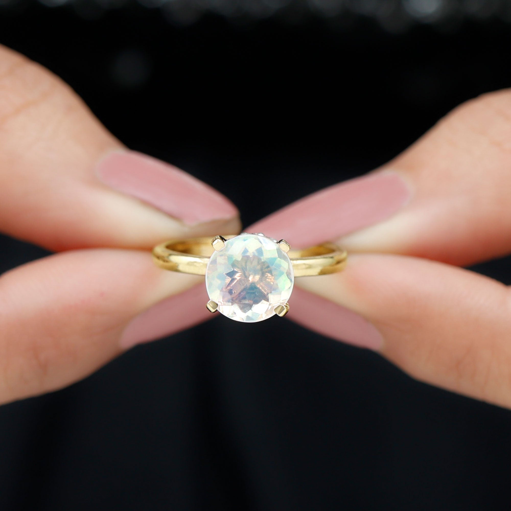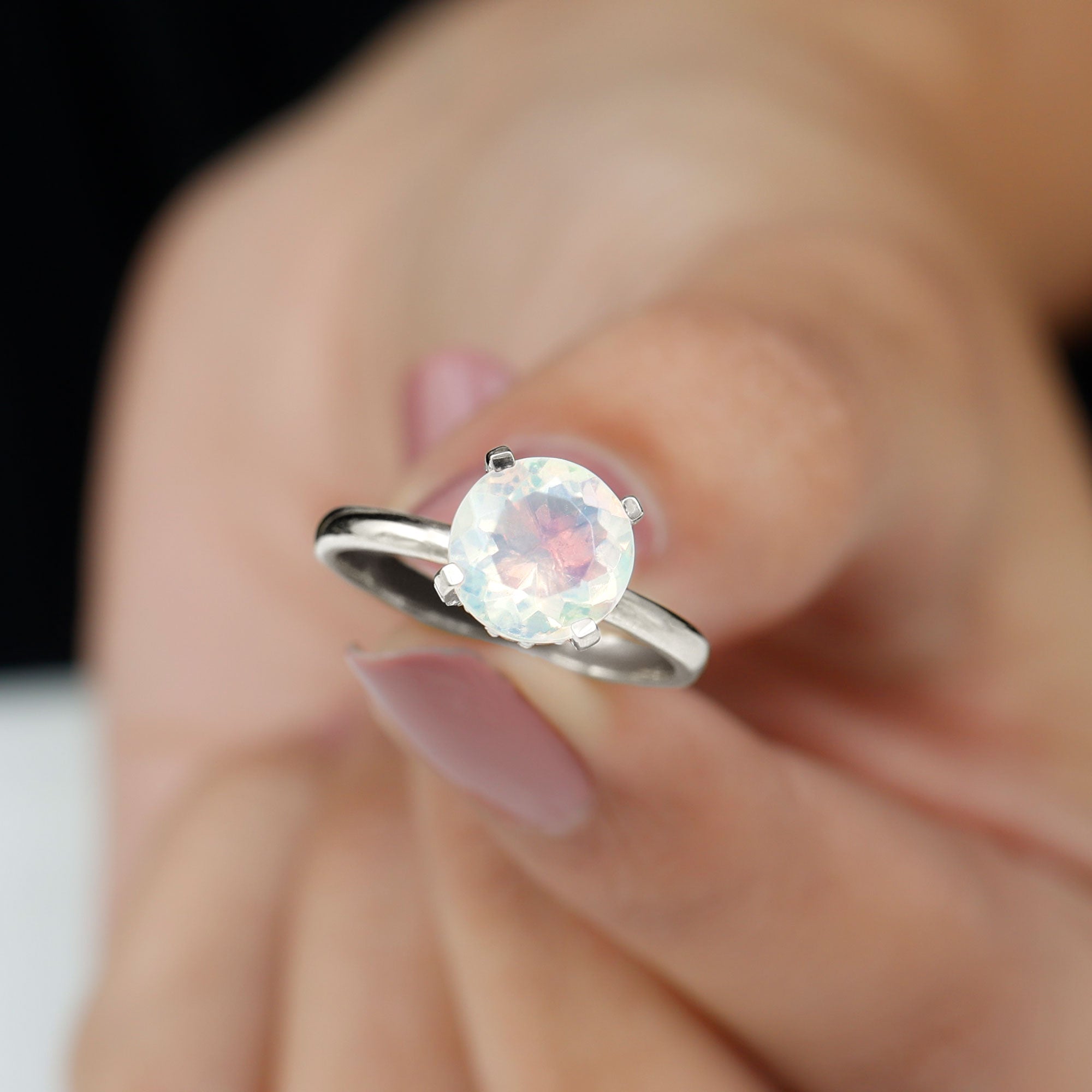 Step into a world of celestial shimmer with this Ethiopian Opal Engagement Ring, designed to capture hearts. At the center of this enchanting piece is an 8 mm Round Shape Ethiopian Opal set in Prong Setting adorned with dainty Diamond stones. Beneath the center stone, a Hidden Halo of sparkling Diamond stones adds a secret layer of brilliance, catching the light with every movement and making this Opal Diamond Engagement Ring a true showstopper from every angle. This Hidden Halo Engagement Ring is perfect for the one who moves to her own rhythm, dreamy, bold and effortlessly unforgettable. Whether it is an engagement, anniversary or a once-in-a-lifetime gift, this Rainbow Opal Engagement Ring says forever in the most magical way. Arriving in a beautiful jewelry box and available in various ring sizes, this Classic Engagement Ring is made for moments that matter. Dazzling, delicate and deeply meaningful, this Round Engagement Ring is just like your love story.
