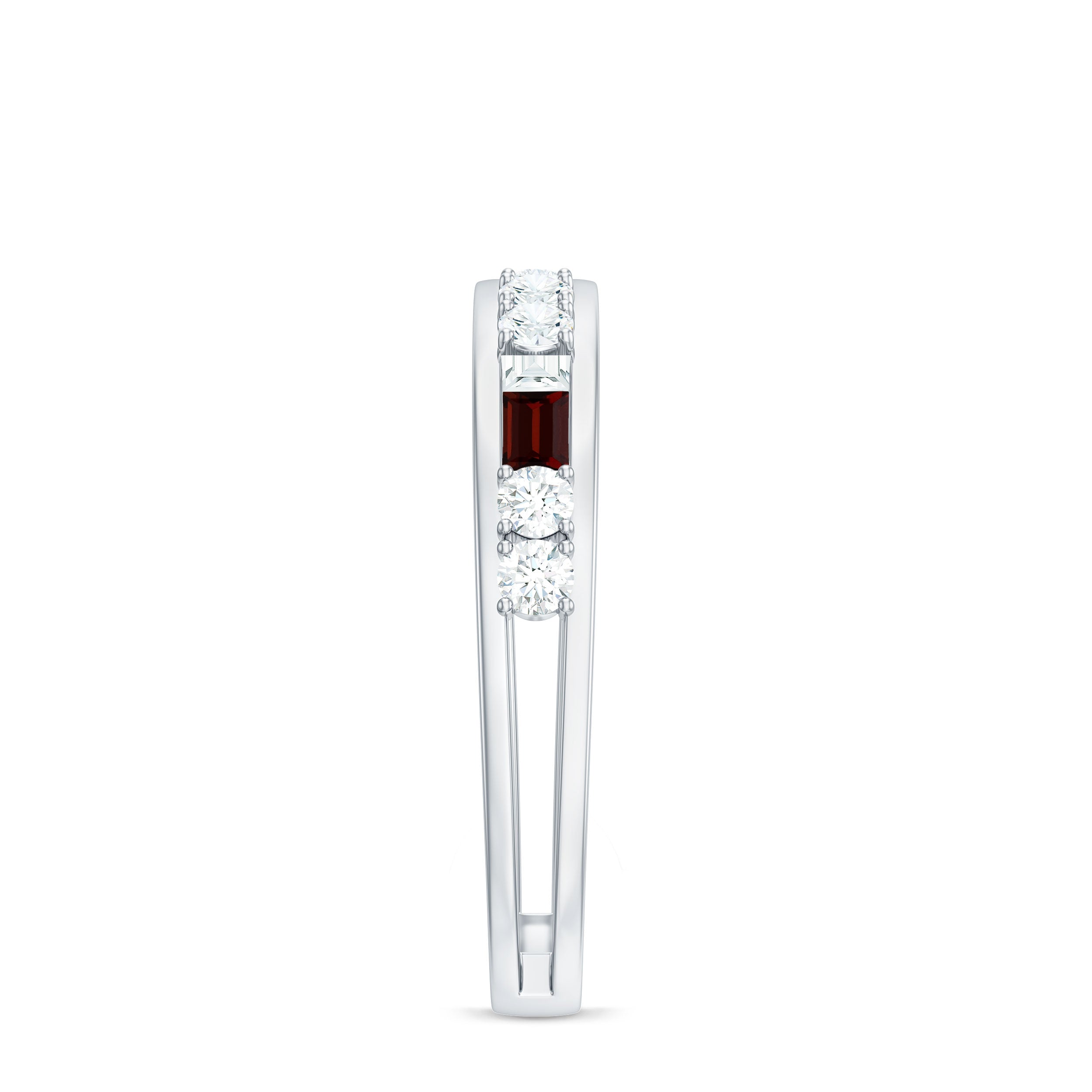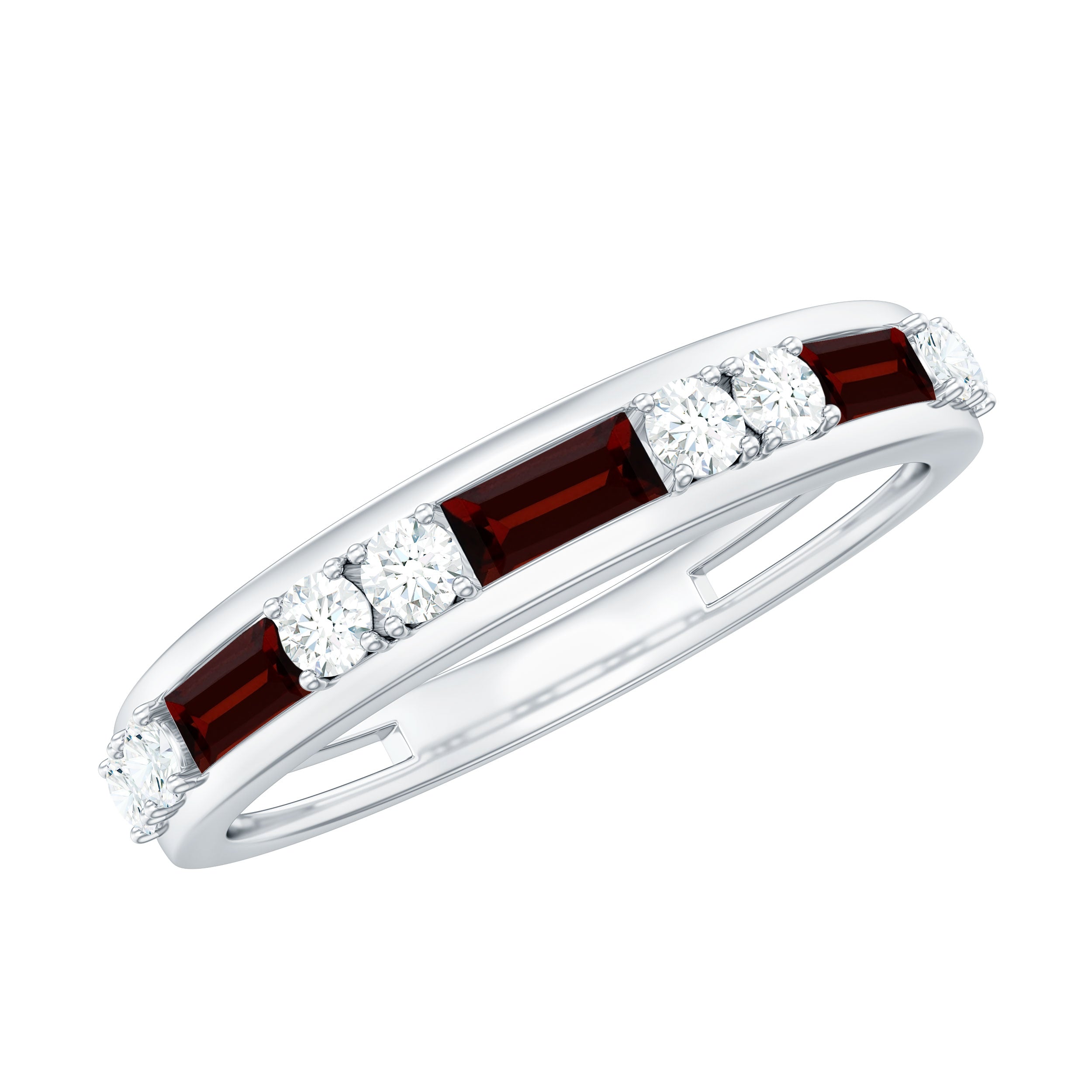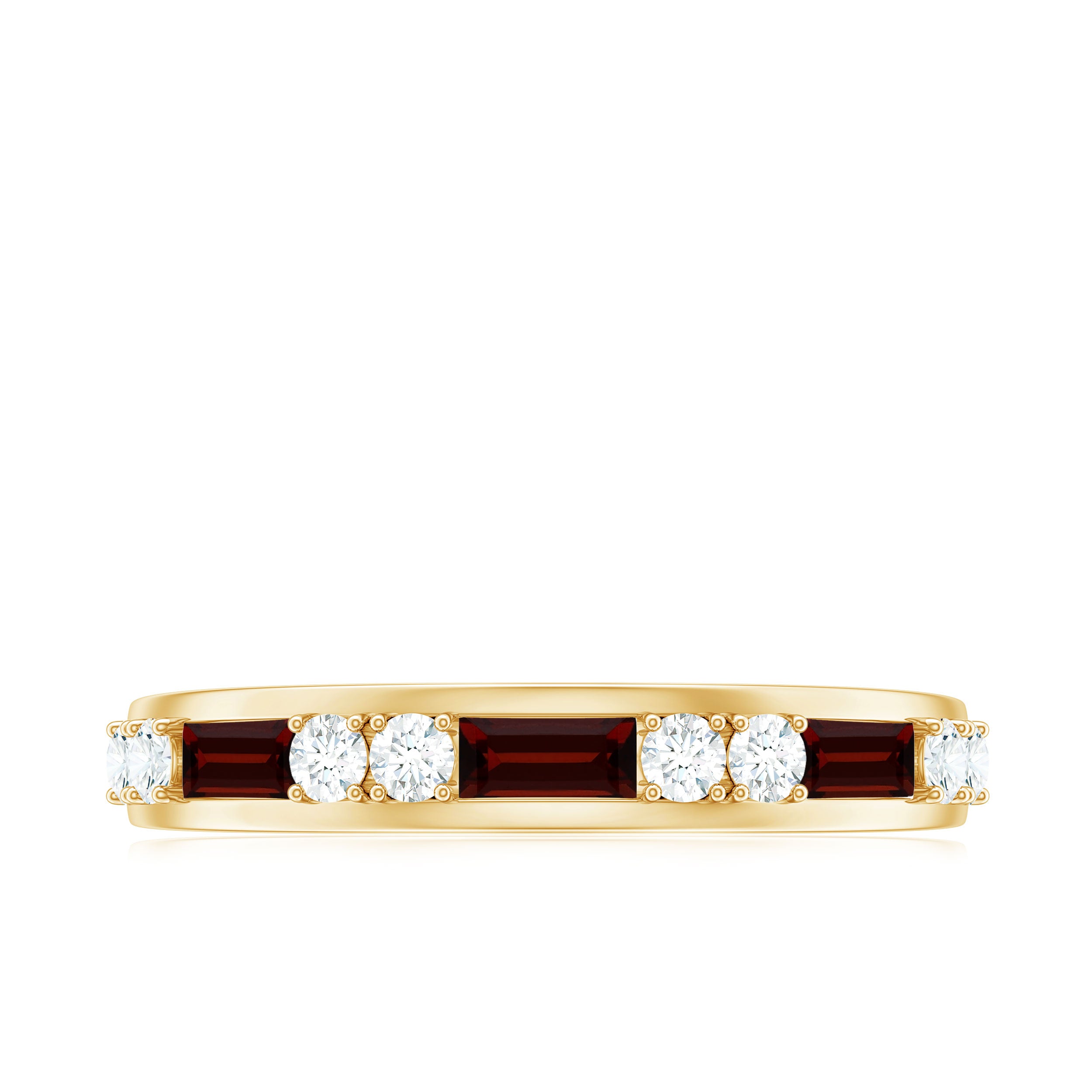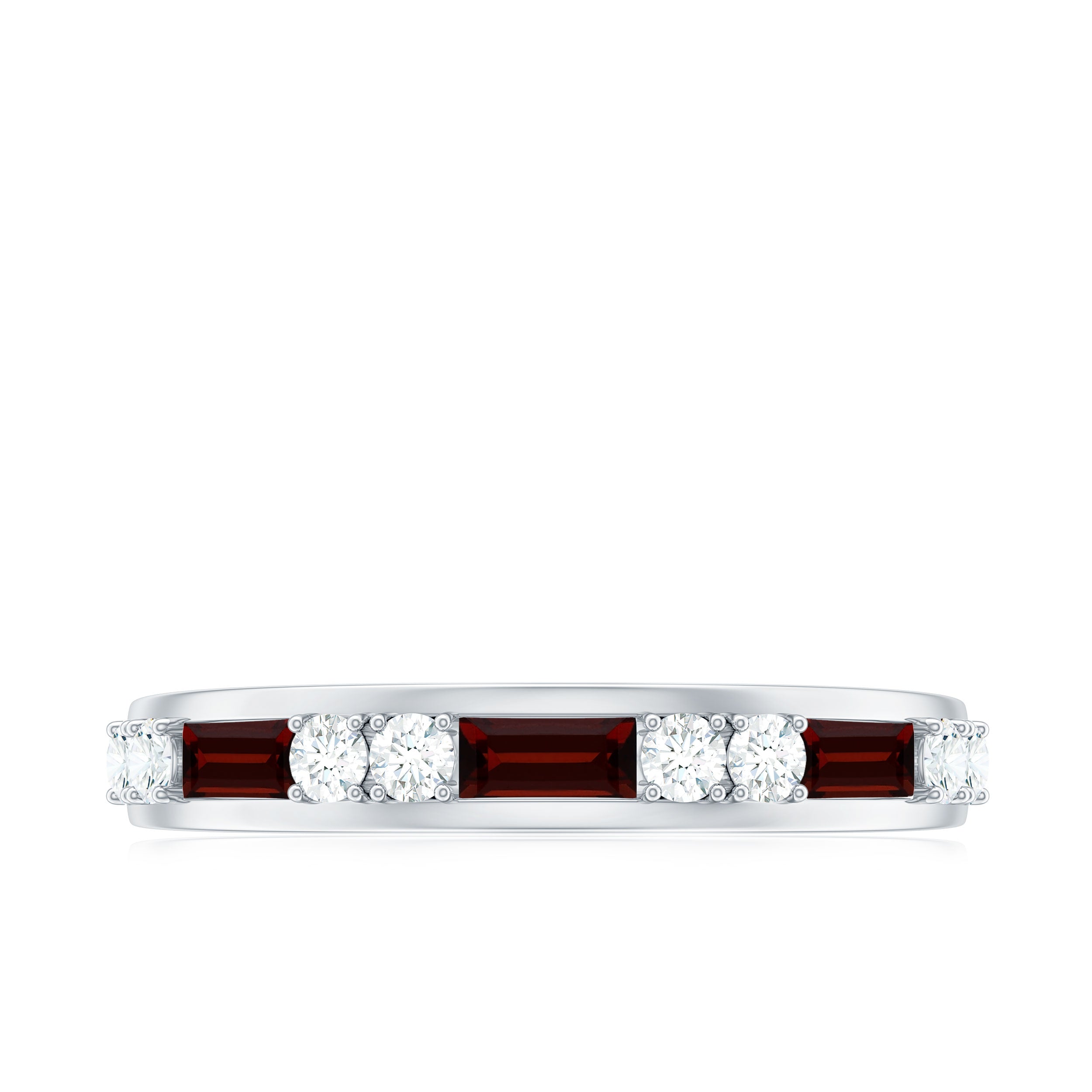 Genuine Baguette Garnet Half Eternity Band with Diamond