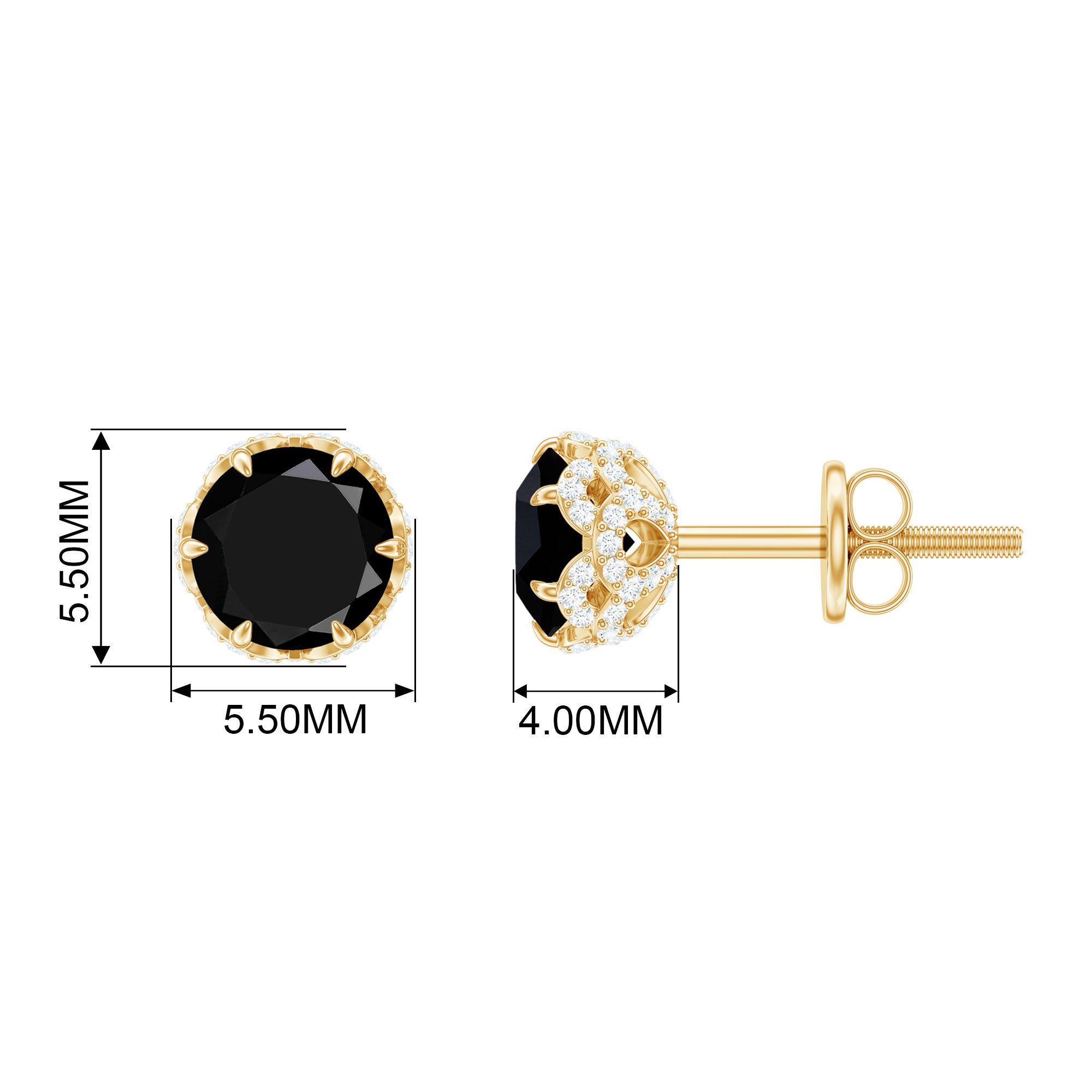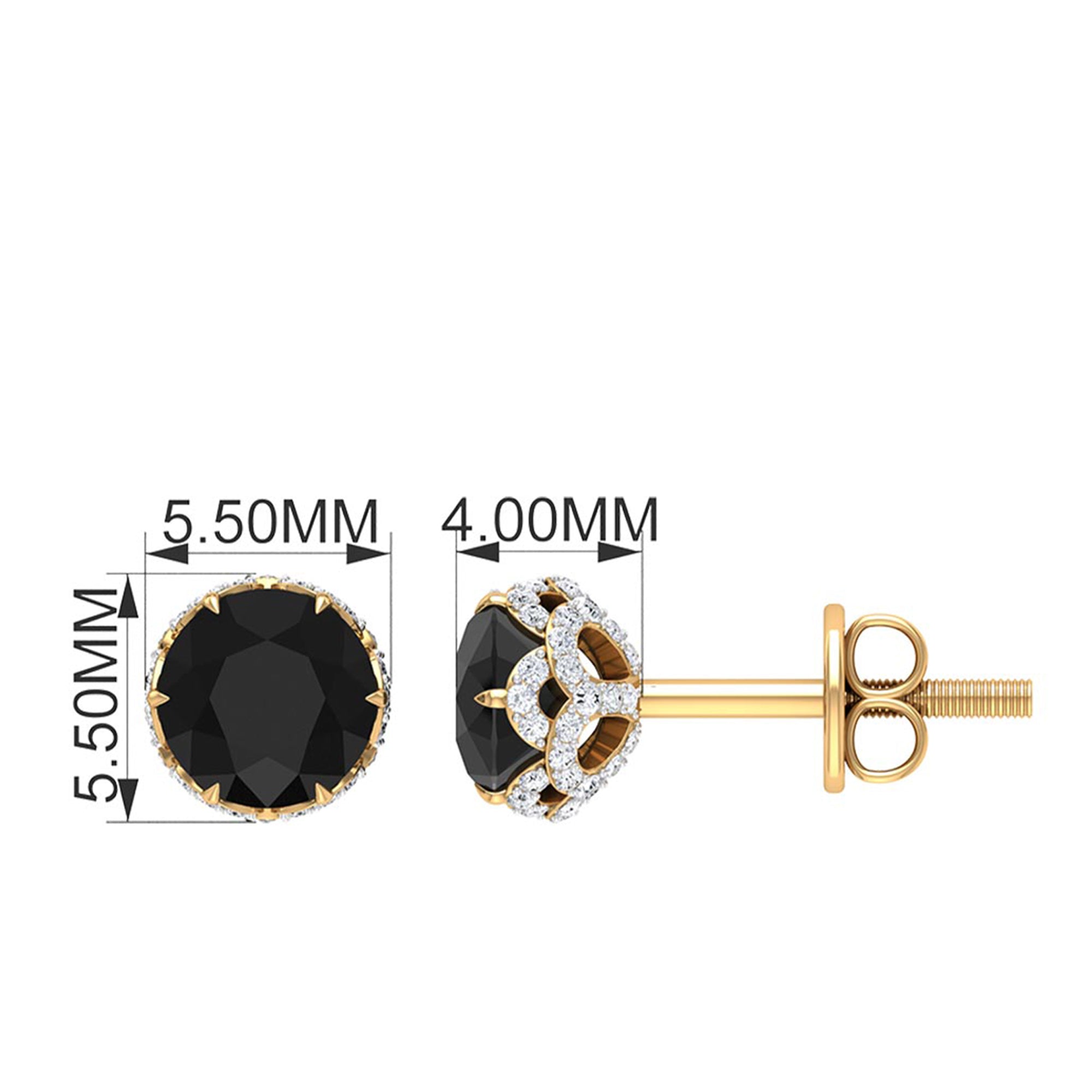A timeless addition to any jewelry collection, these Black Diamond Stud Earrings offer a stunning contrast that blends classic elegance with modern sophistication. At the center of each earring lies a bold 5 mm Round Shape Black Diamond set in 6 Claw Prong Setting, its deep, mysterious hue beautifully highlighted by sparkling White Diamond stones. This striking combination creates a look that is both chic and eye-catching, making these Black and White Earrings the perfect accessory for any occasion. Whether you are dressing up for a night out or adding a touch of luxury to your everyday ensemble, these Black Diamond Earrings elevate your style with effortless grace. The secure Screw Back Closure ensures a comfortable fit, allowing you to wear them with confidence all day or night. Presented in a jewelry box, these Designer Stud Earrings make a thoughtful gift for someone special or a perfect treat for yourself. Their versatile design means they pair beautifully with a variety of outfits, adding just the right amount of sparkle to your look.