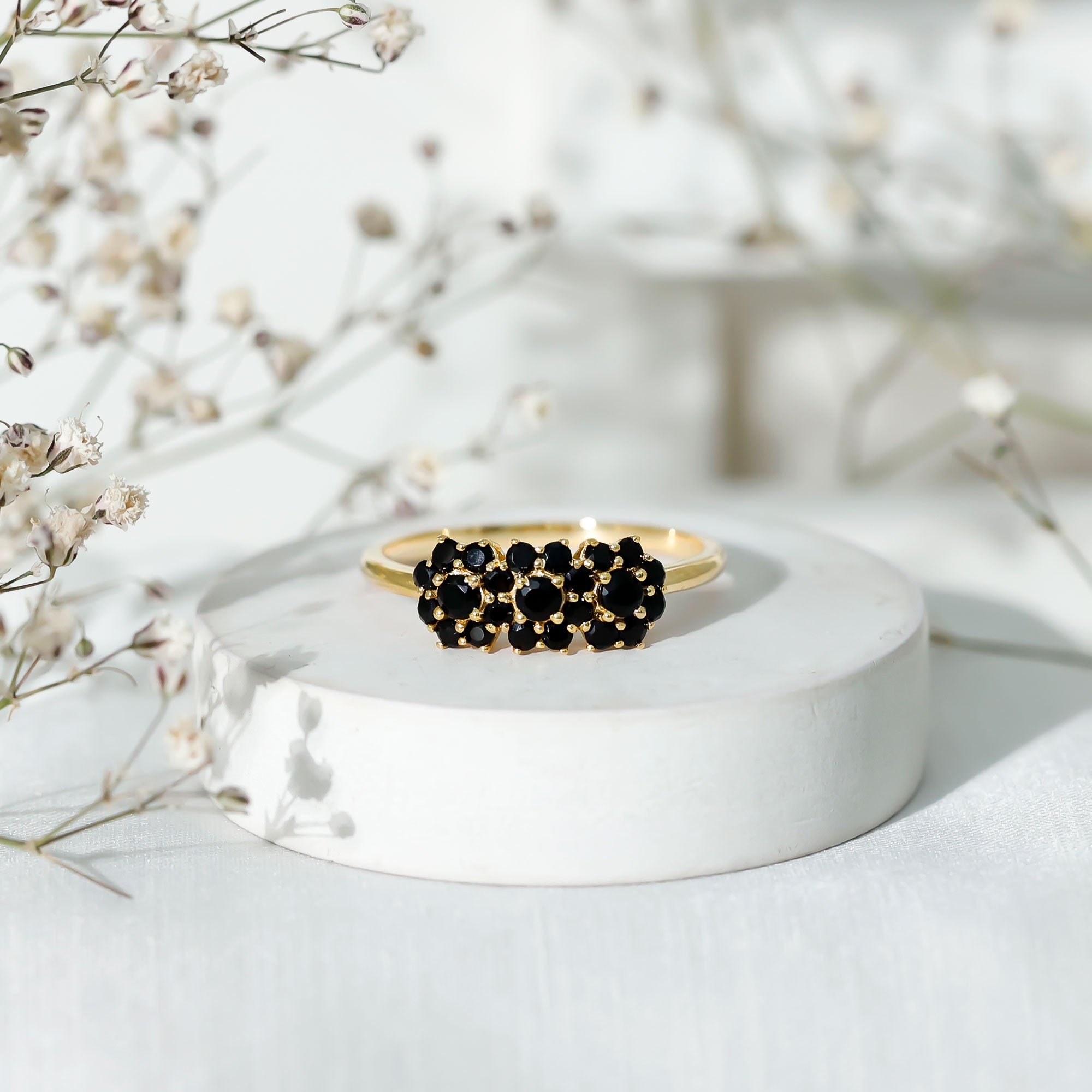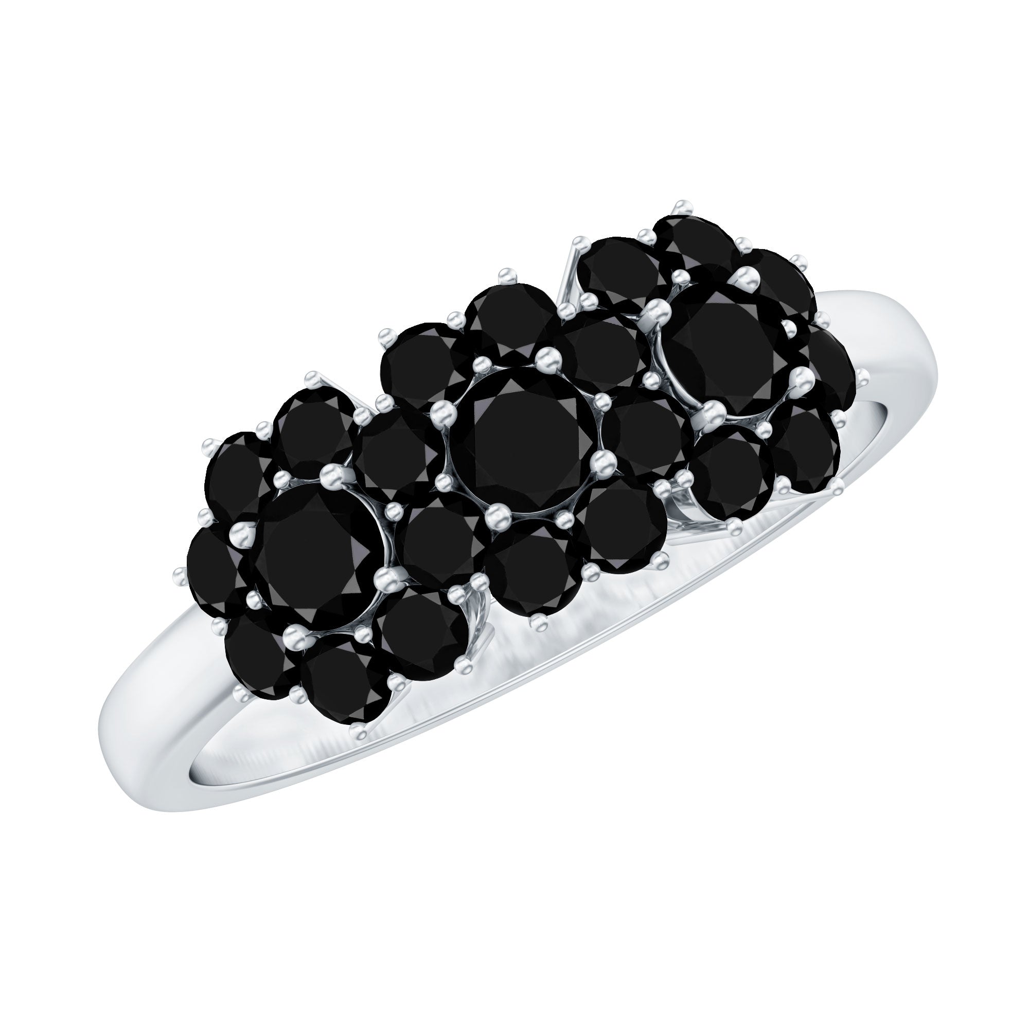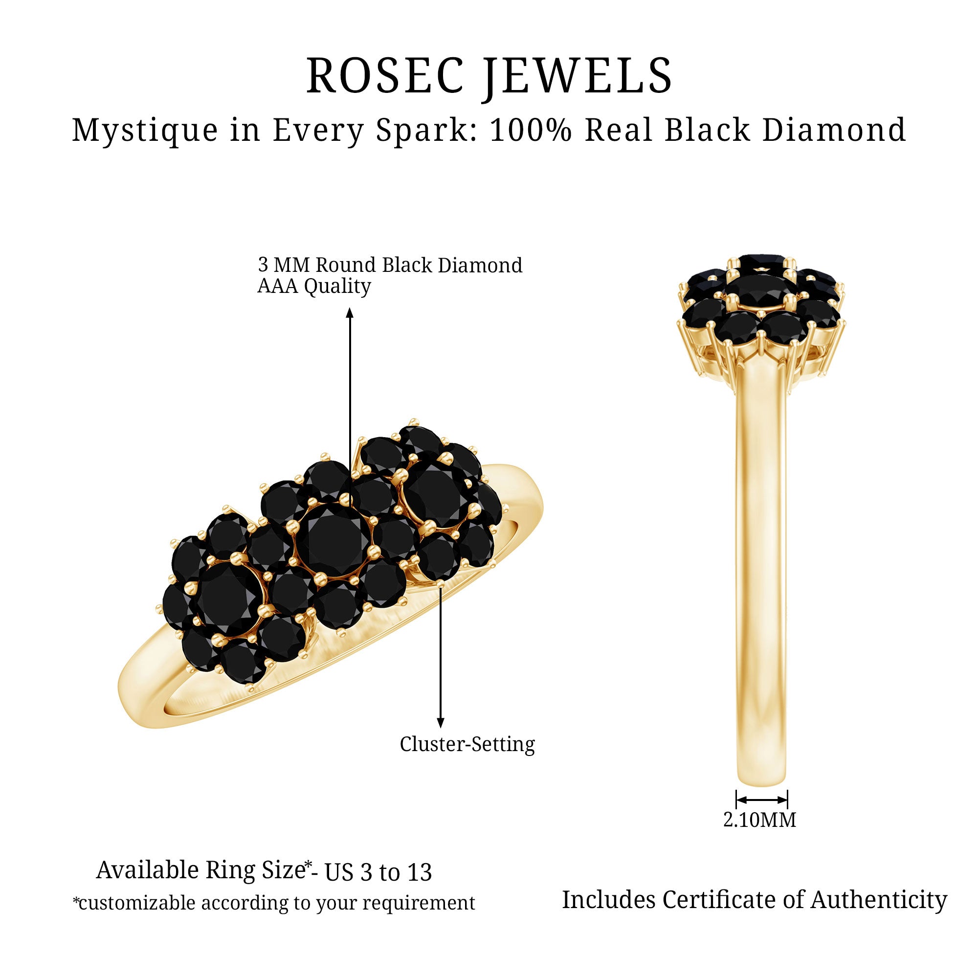 Genuine Black Diamond Flower Cluster Engagement Ring