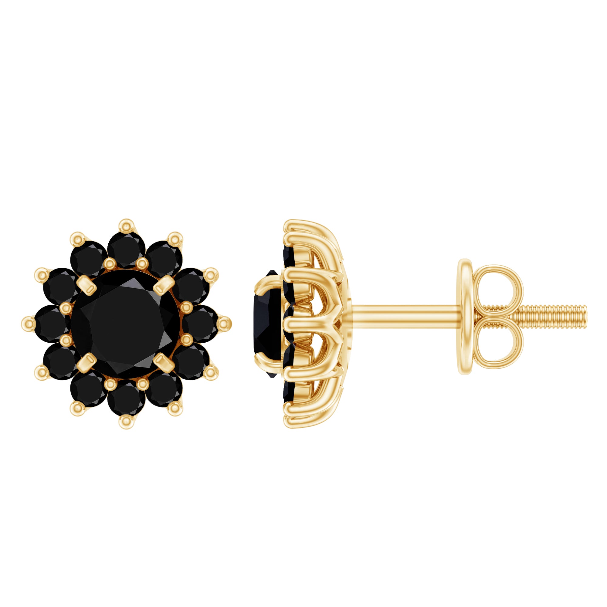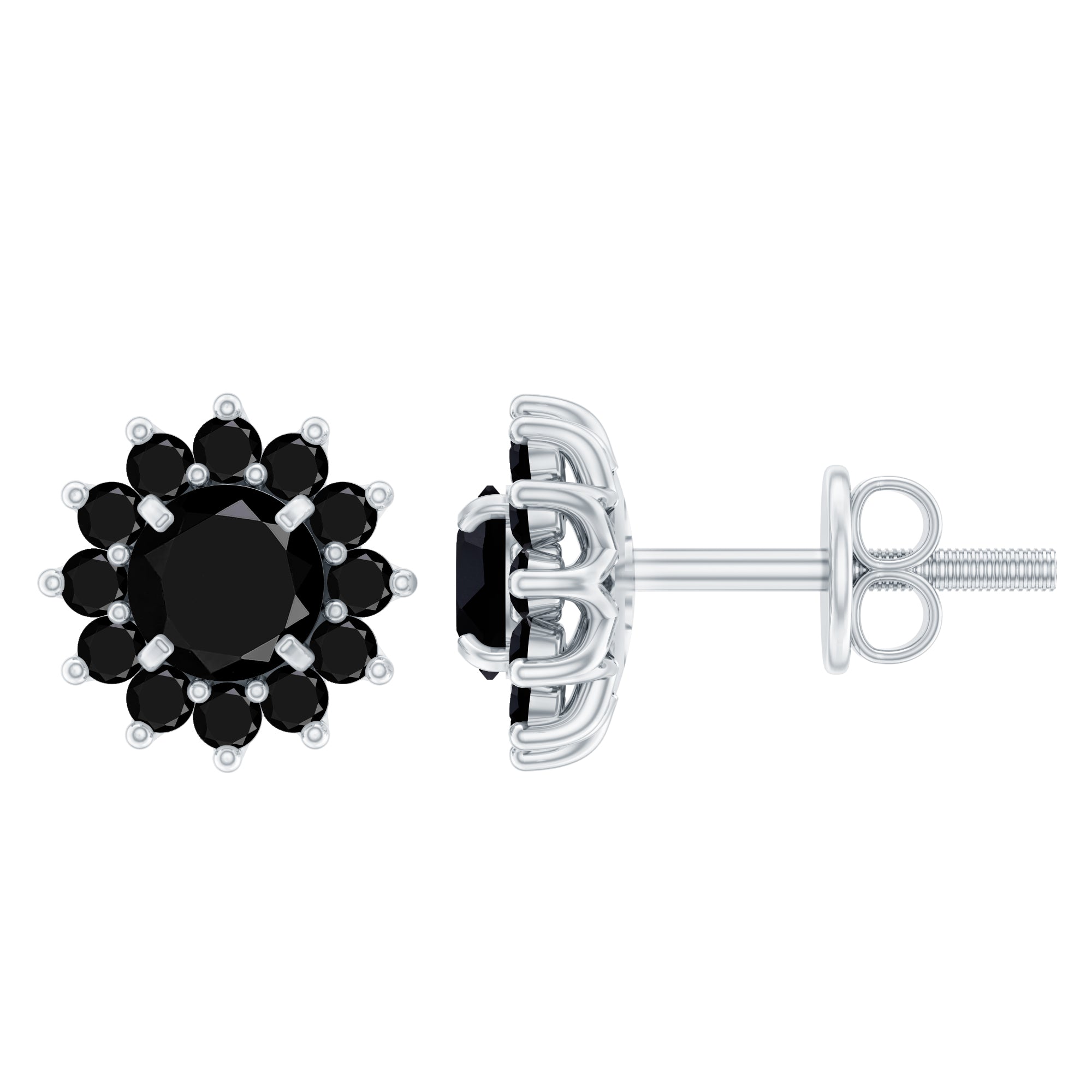 Bold elegance blooms with these Black Diamond Stud Earrings, a design that effortlessly captures attention while remaining timelessly sophisticated. The center stone is a 4 MM black diamond set securely in prongs. Surrounding the center stone are smaller black diamonds that enhance the floral motif, creating a dazzling contrast and adding depth to the design. The flower inspired arrangement gives these Black Diamond Earrings a delicate yet powerful presence, making them perfect for elevating both everyday outfits and special occasion ensembles. The screw back closures ensure a secure fit, providing comfort and peace of mind throughout the day. Crafted with precision, each earring highlights the unique sparkle and intensity of black diamonds, creating a piece that radiates understated luxury. Their versatile design allows them to suit various styles, from modern chic to classic elegance. Presented ready to gift, these Flower Stud Earrings are a must-have addition to any jewelry collection.