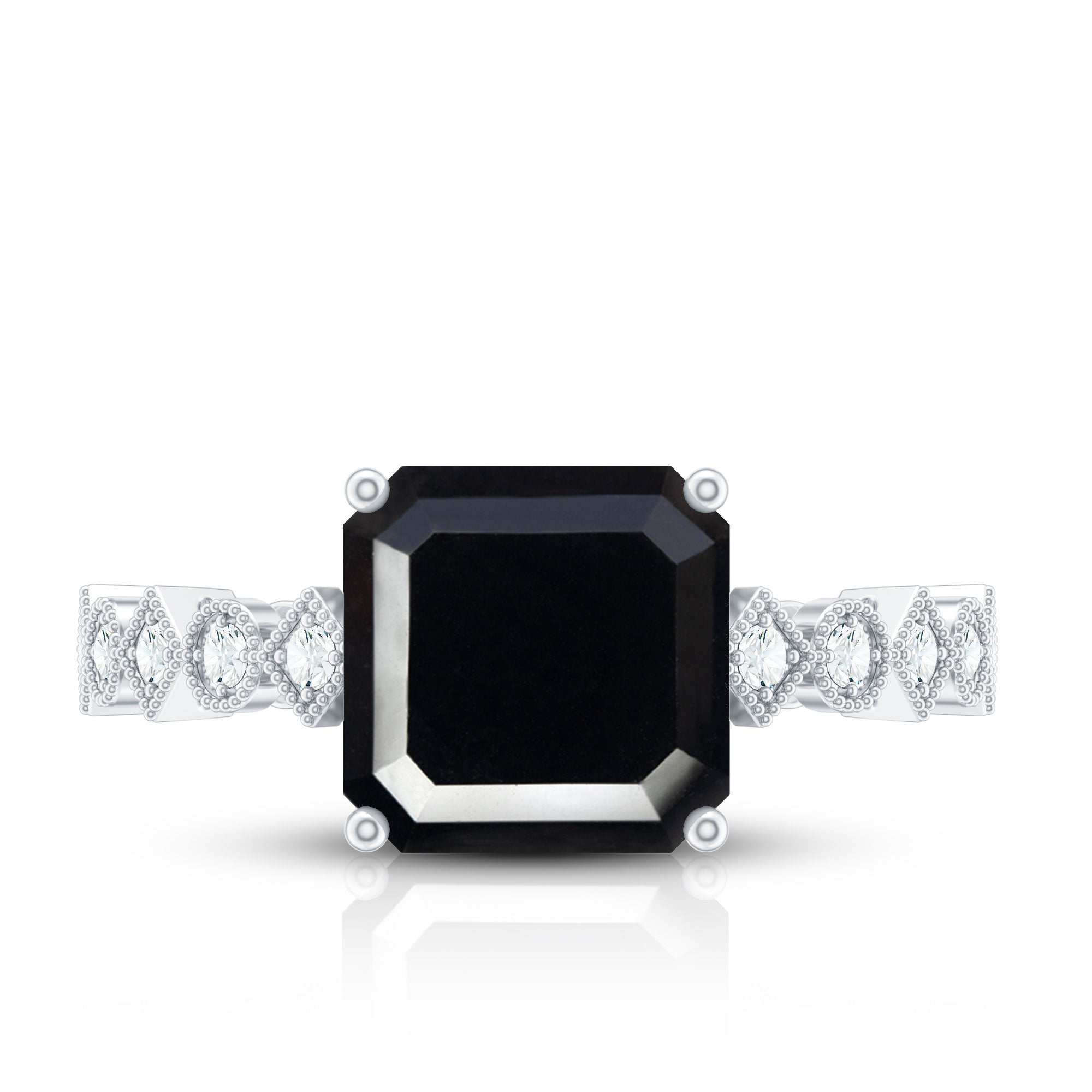 Genuine Black Onyx 8mm Asscher Cut Engagement Ring with Diamond