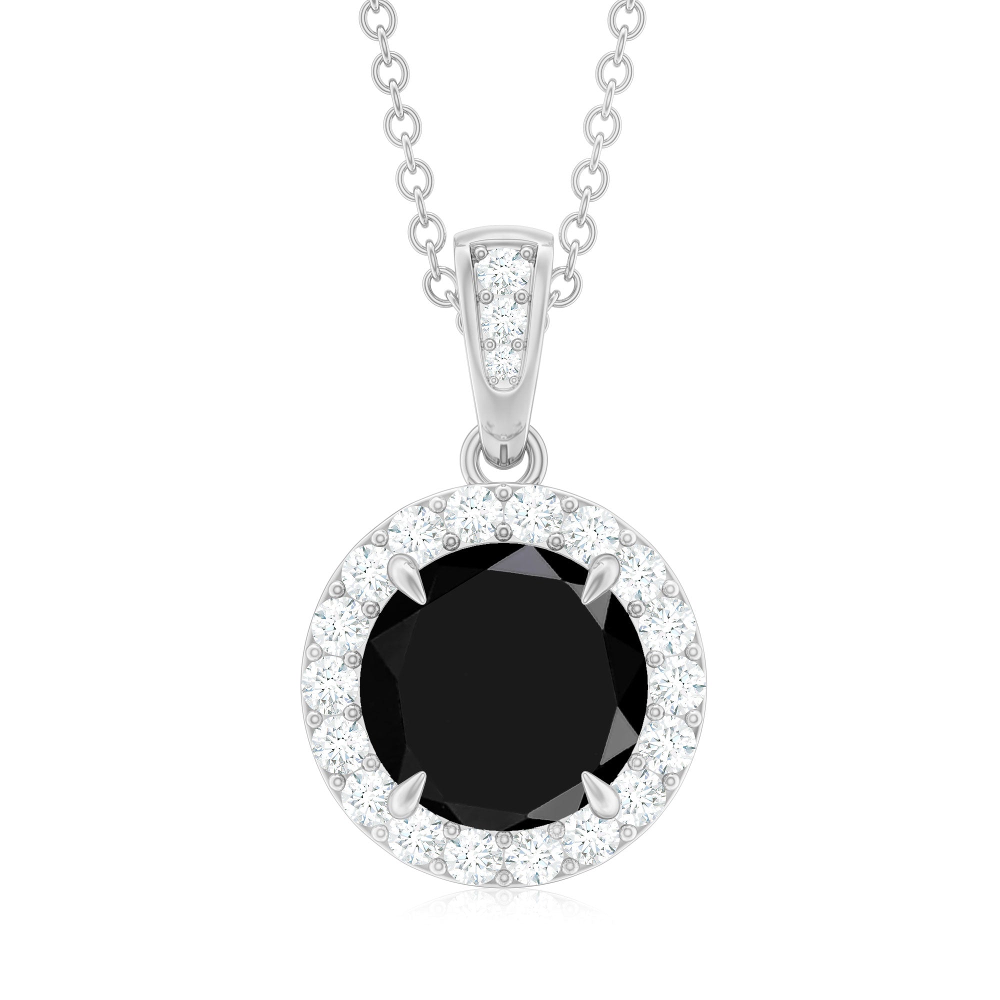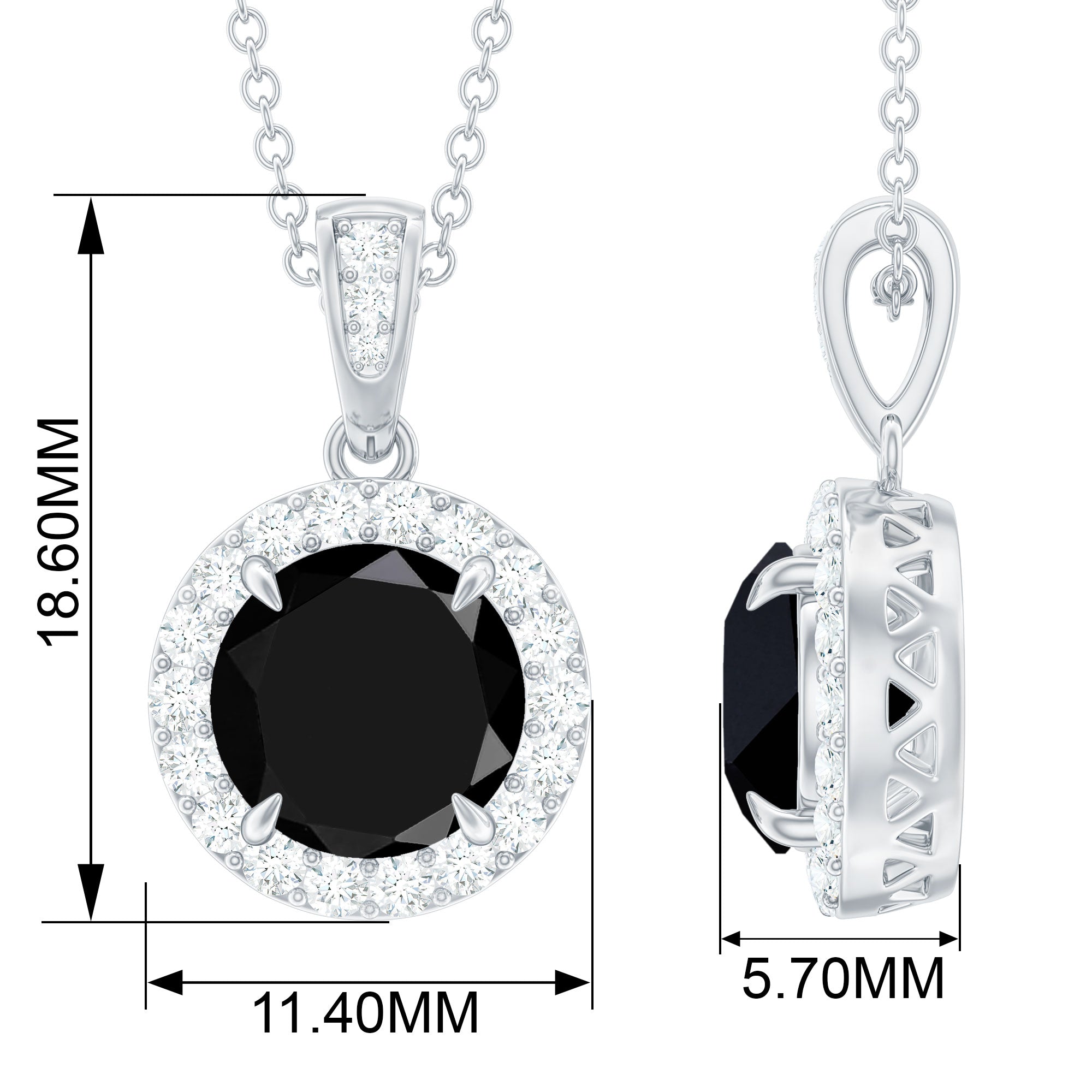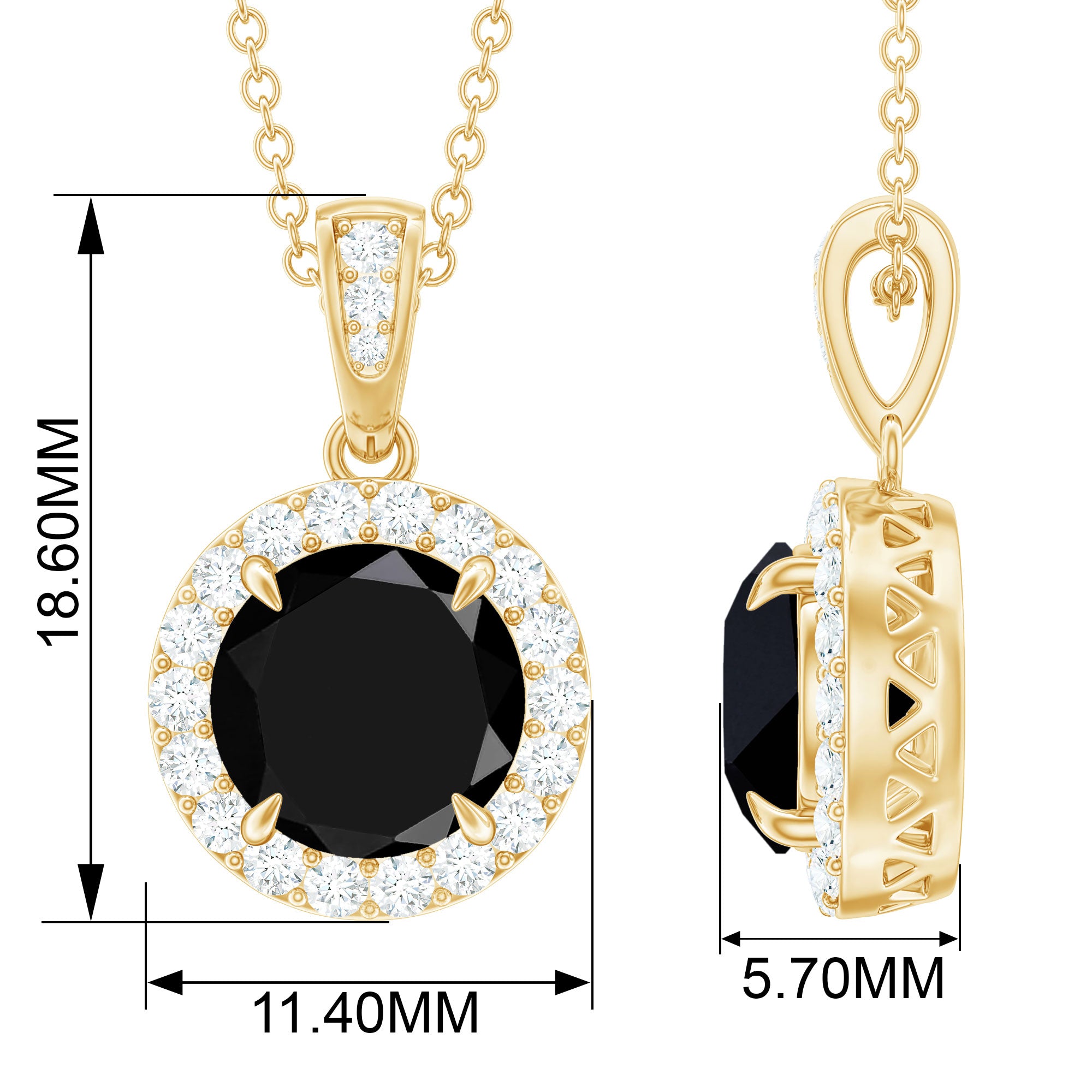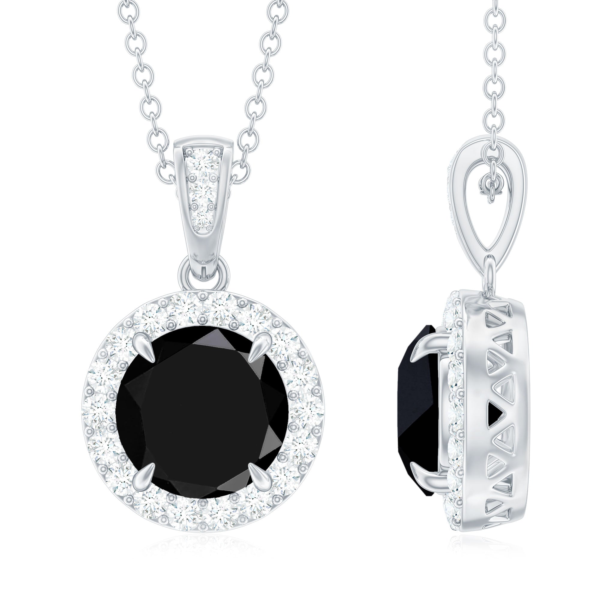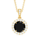 Genuine Black Onyx and Diamond Halo Pendant Necklace